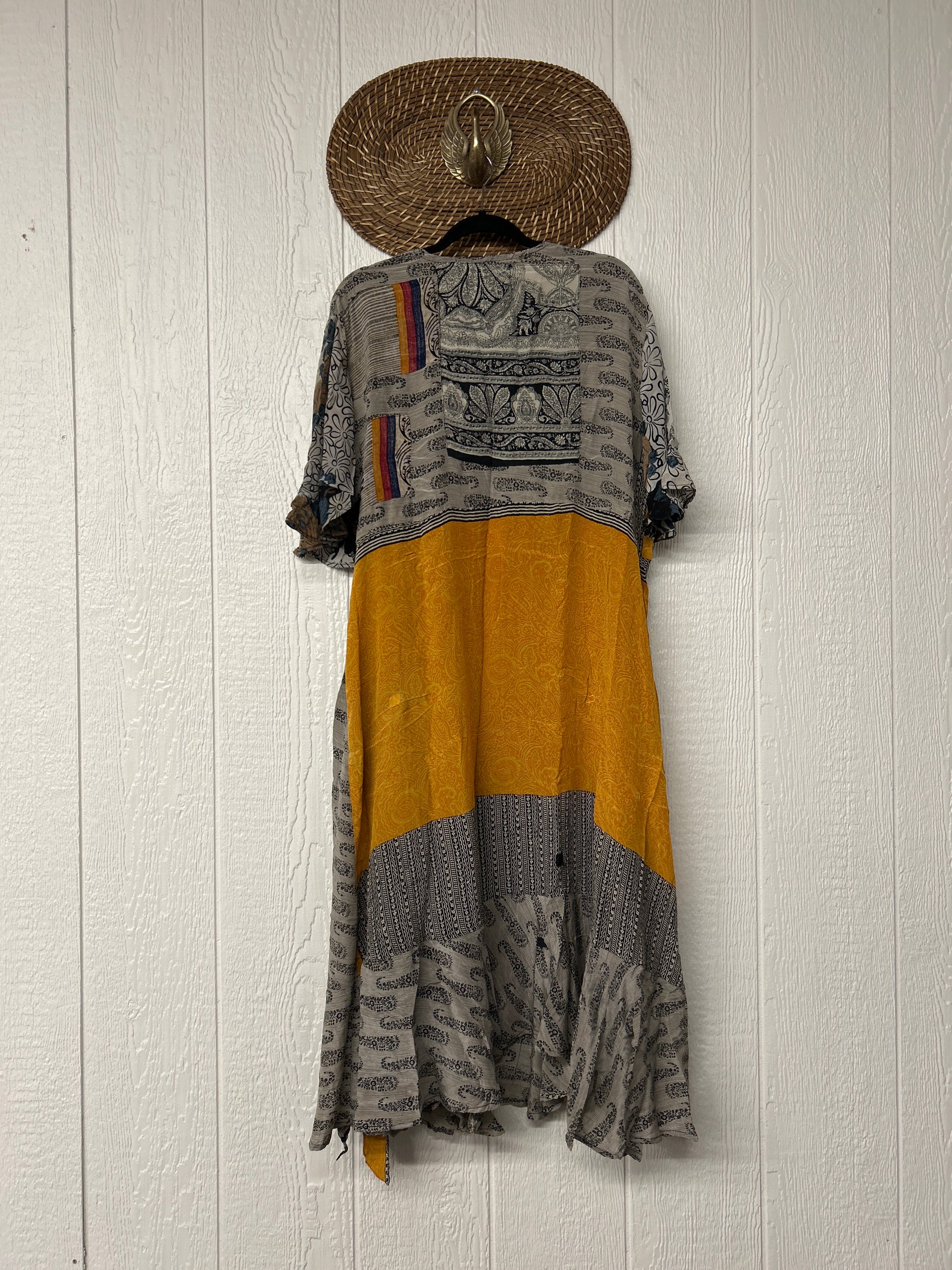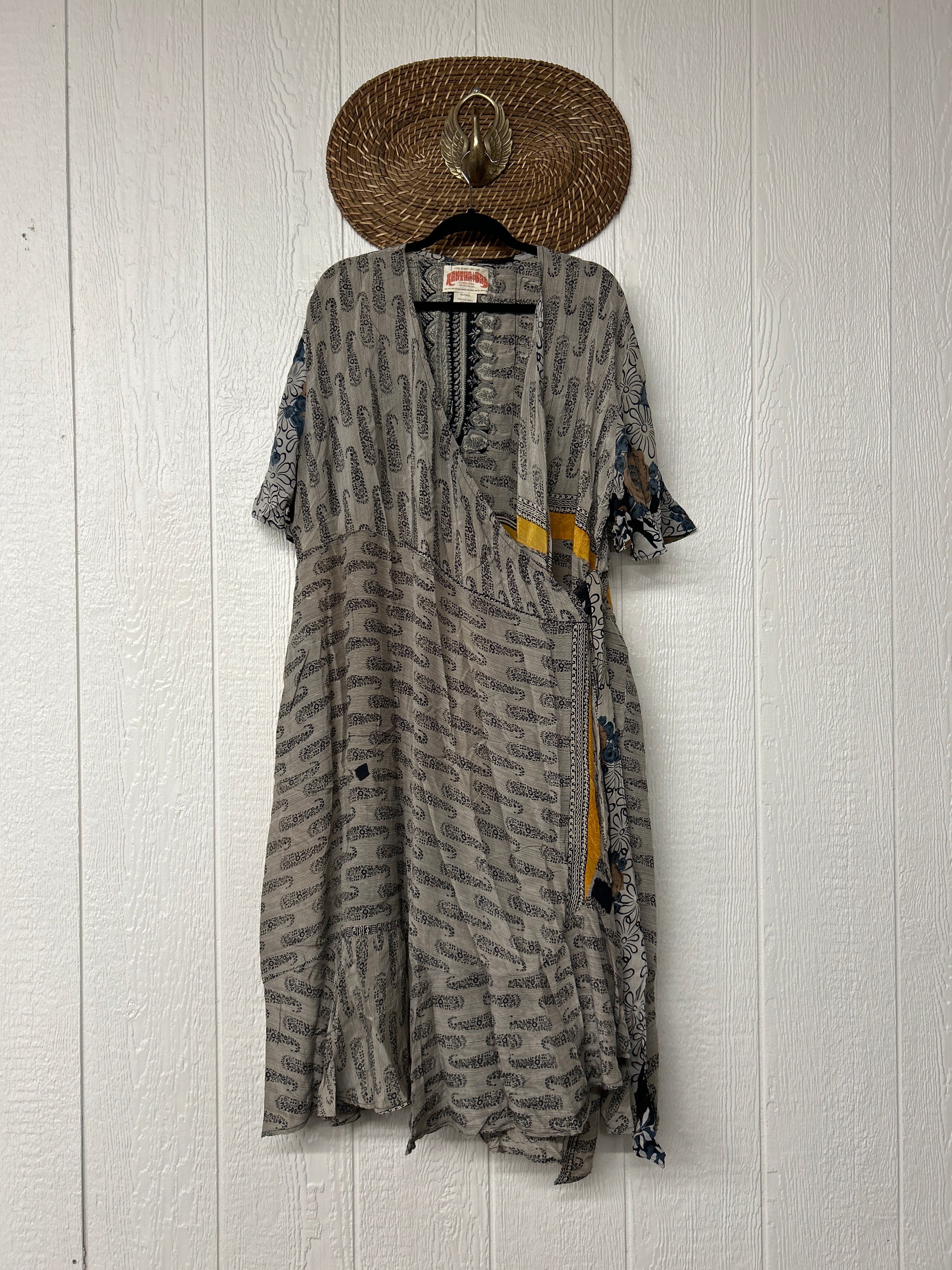 The Summer Flourish Wrap Dress is crafted from our ultra lux vintage crepe sari. Features short bell sleeves, ruffle details throughout and a built in sash belt which wraps around the body to make this beauty fully customizable for a wide range of sizes. You can also wear the Flourish open as a vibey kimono over your favorite outfit. We're obsessed!