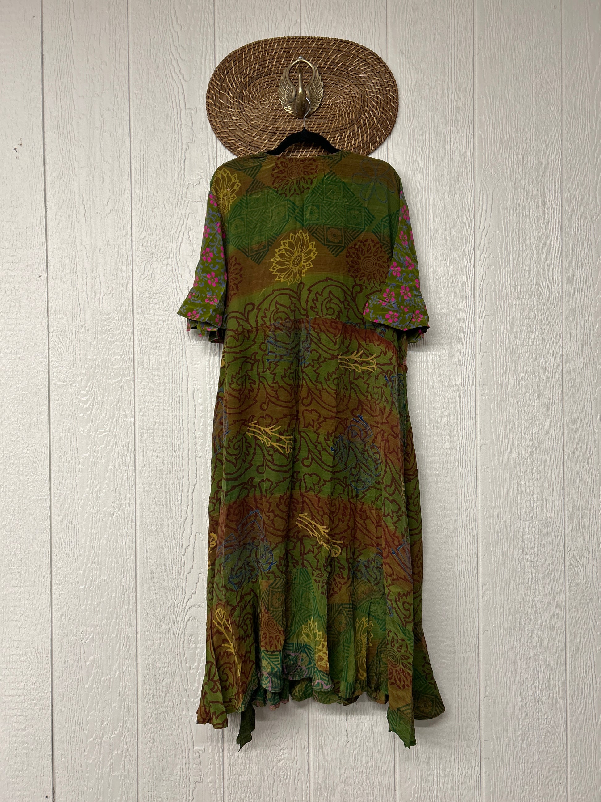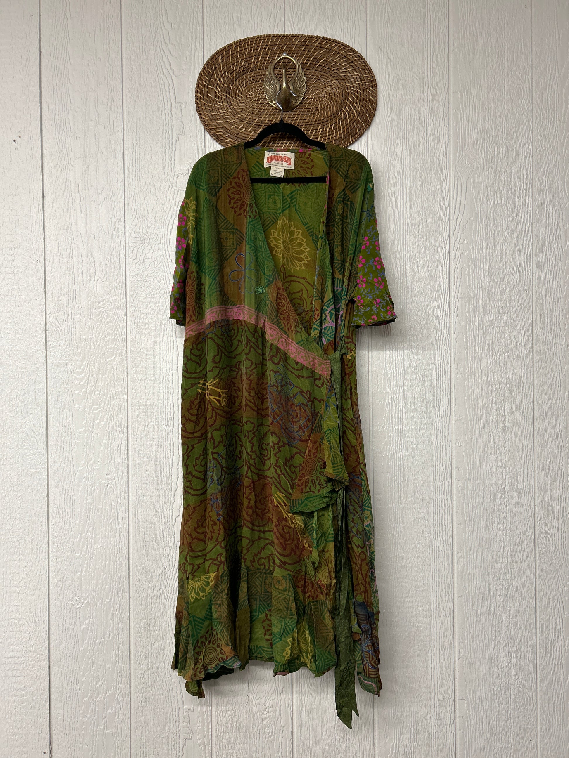 The Summer Flourish Wrap Dress is crafted from our ultra lux vintage crepe sari. Features short bell sleeves, ruffle details throughout and a built in sash belt which wraps around the body to make this beauty fully customizable for a wide range of sizes. You can also wear the Flourish open as a vibey kimono over your favorite outfit. We're obsessed!