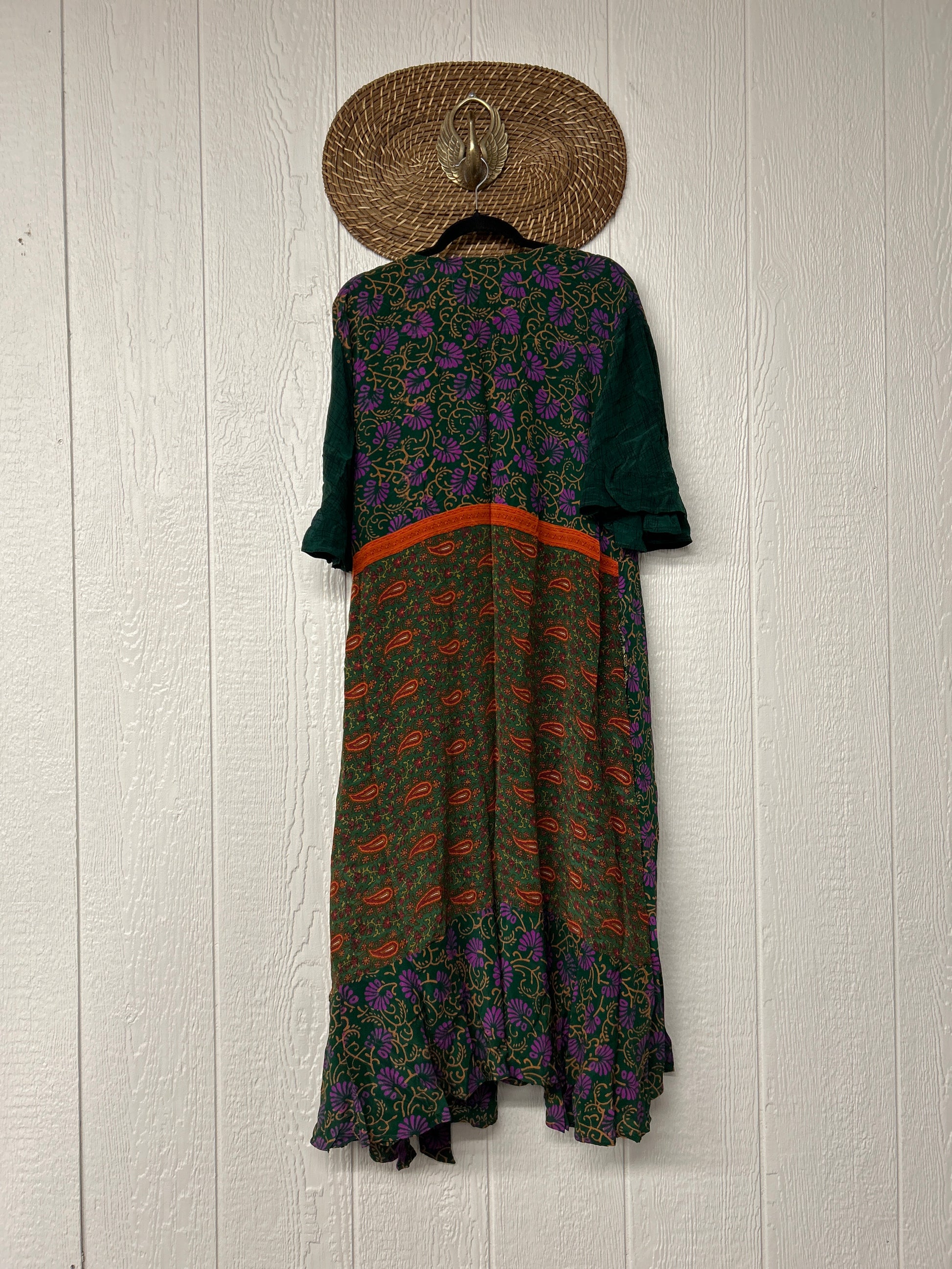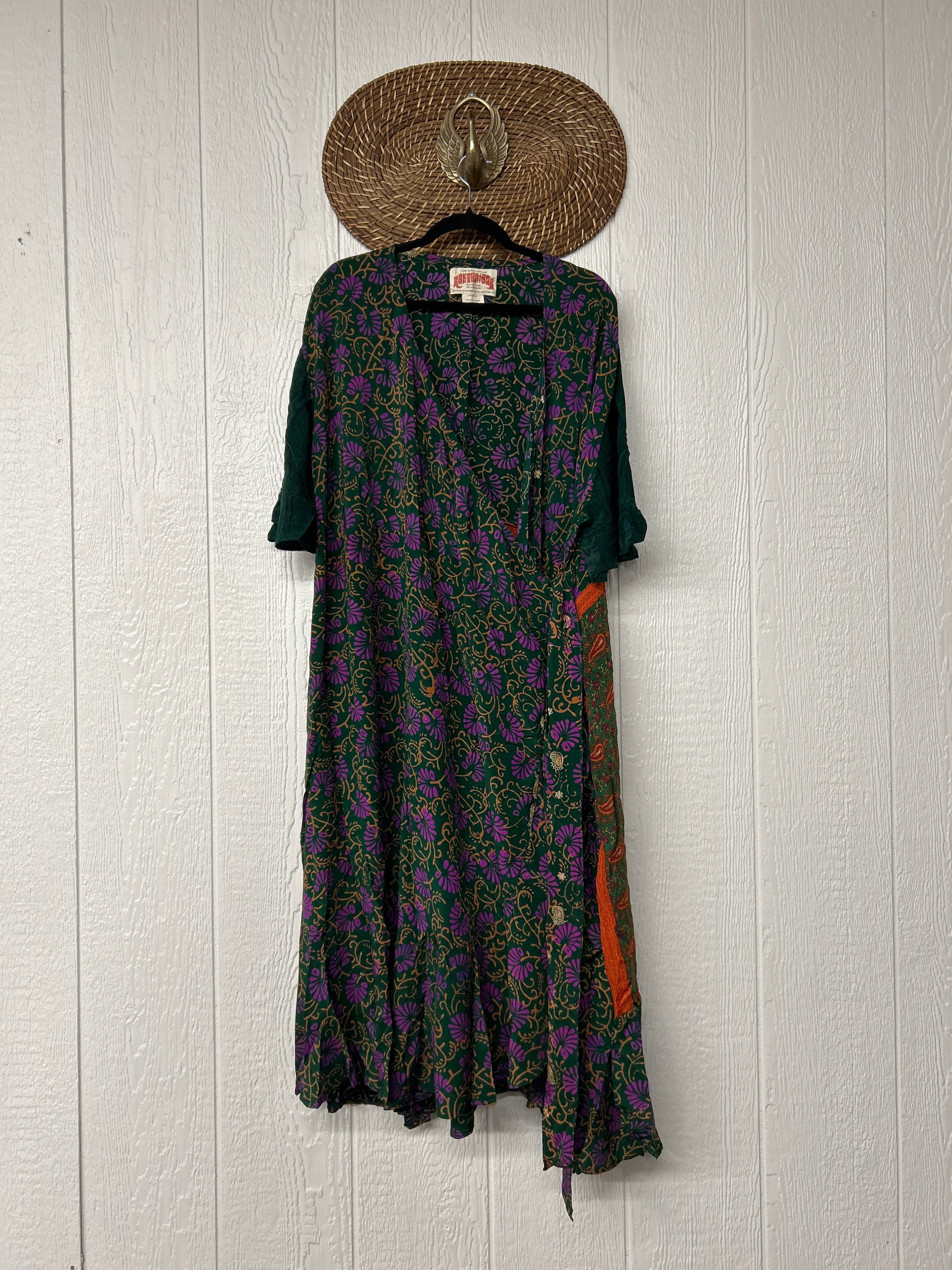 The Summer Flourish Wrap Dress is crafted from our ultra lux vintage crepe sari. Features short bell sleeves, ruffle details throughout and a built in sash belt which wraps around the body to make this beauty fully customizable for a wide range of sizes. You can also wear the Flourish open as a vibey kimono over your favorite outfit. We're obsessed!