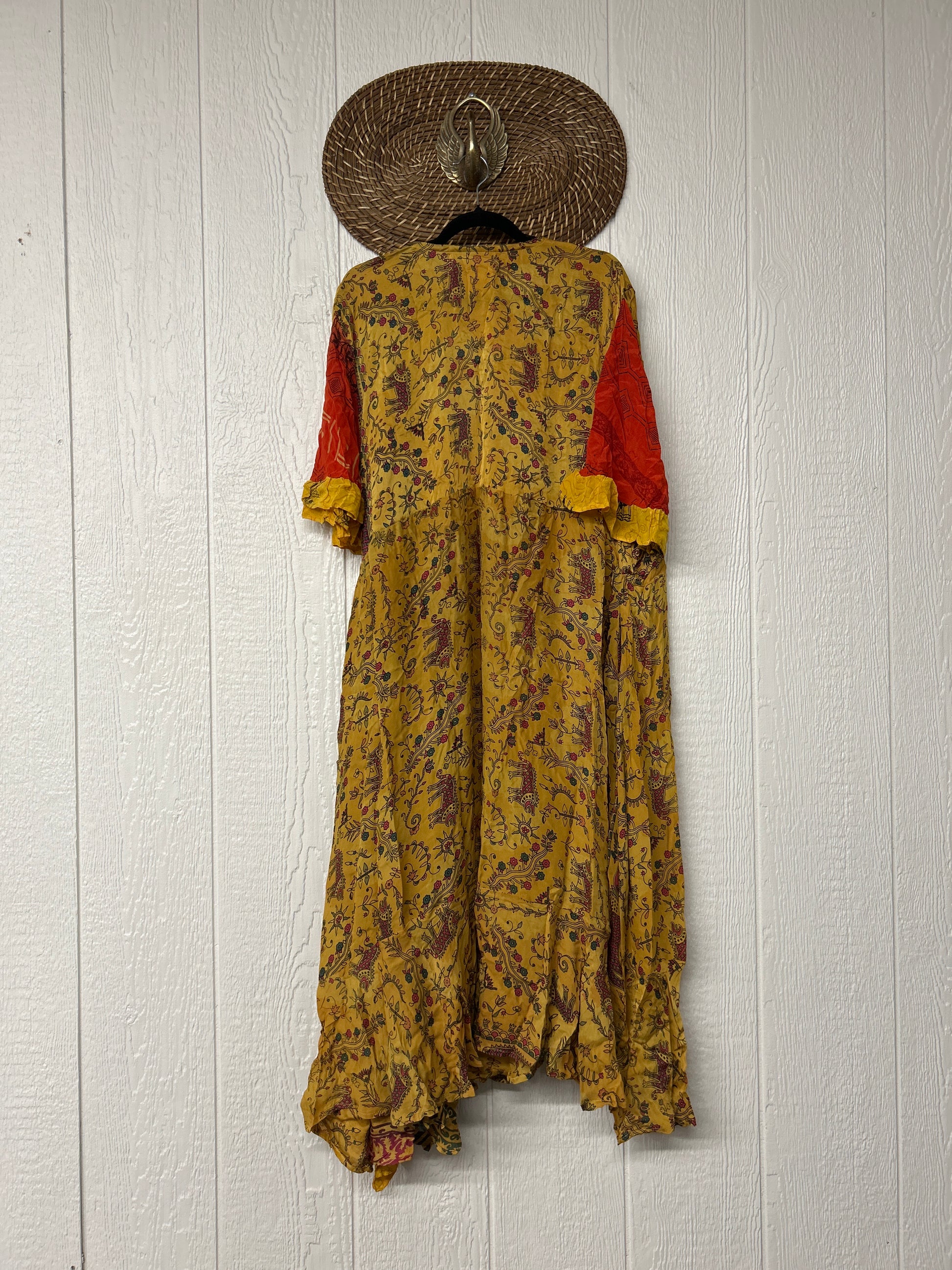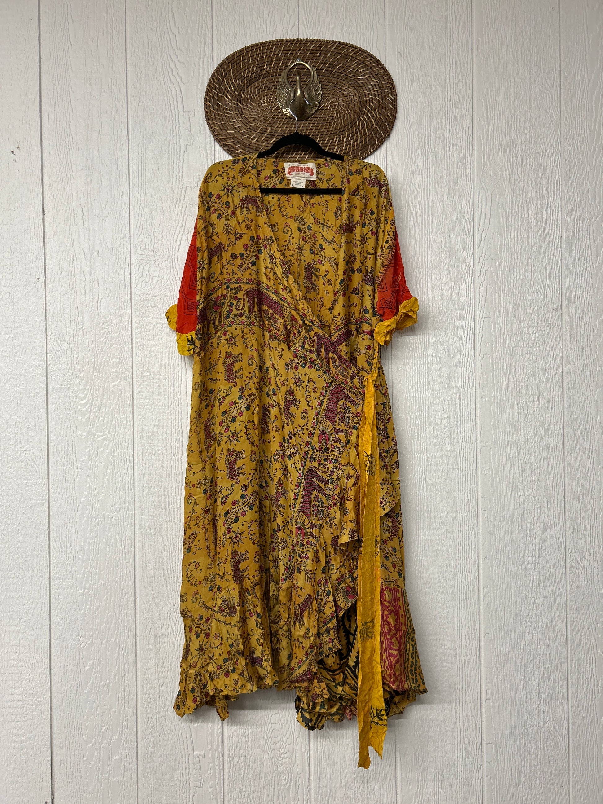 The Summer Flourish Wrap Dress is crafted from our ultra lux vintage crepe sari. Features short bell sleeves, ruffle details throughout and a built in sash belt which wraps around the body to make this beauty fully customizable for a wide range of sizes. You can also wear the Flourish open as a vibey kimono over your favorite outfit. We're obsessed!
