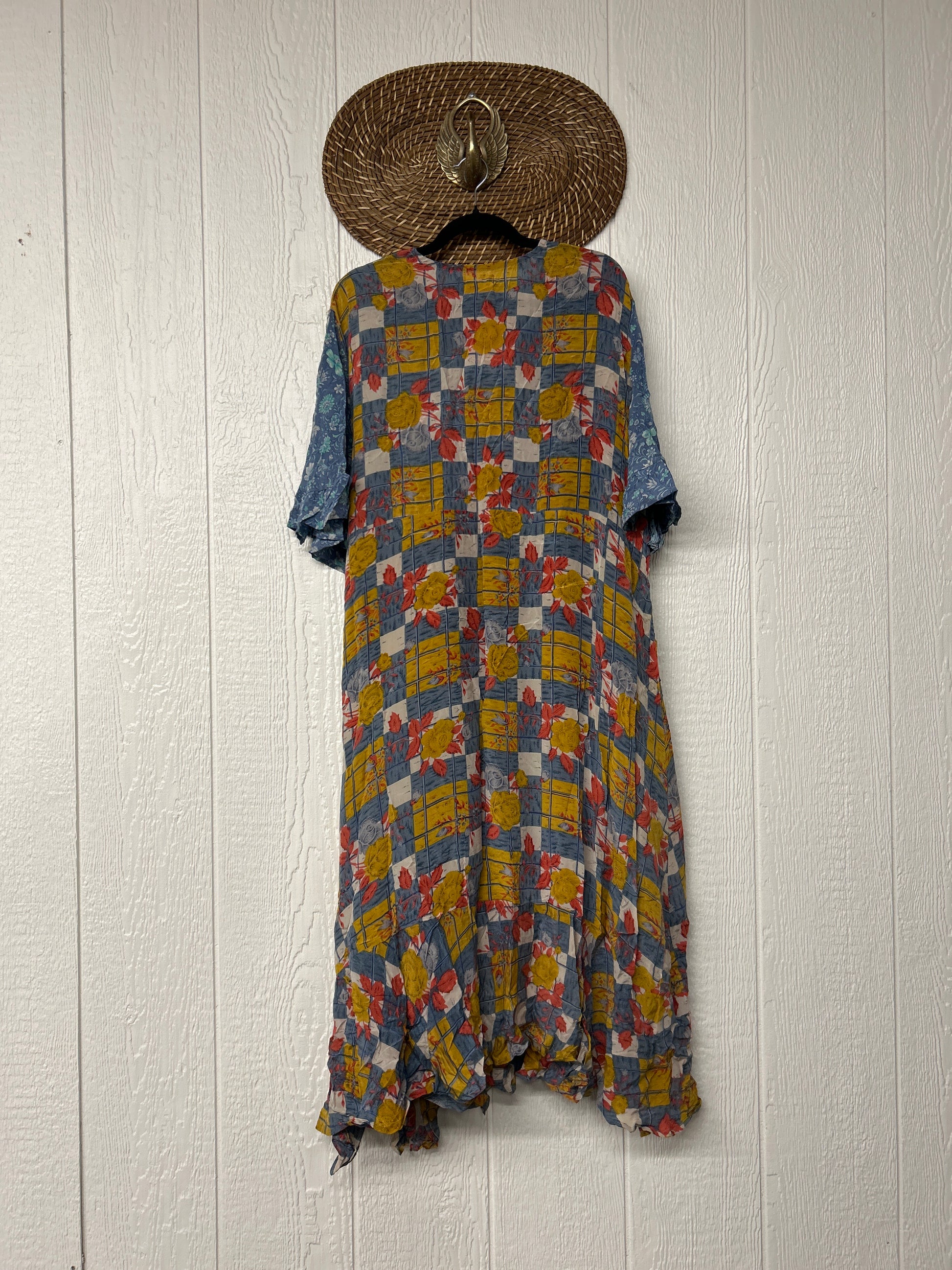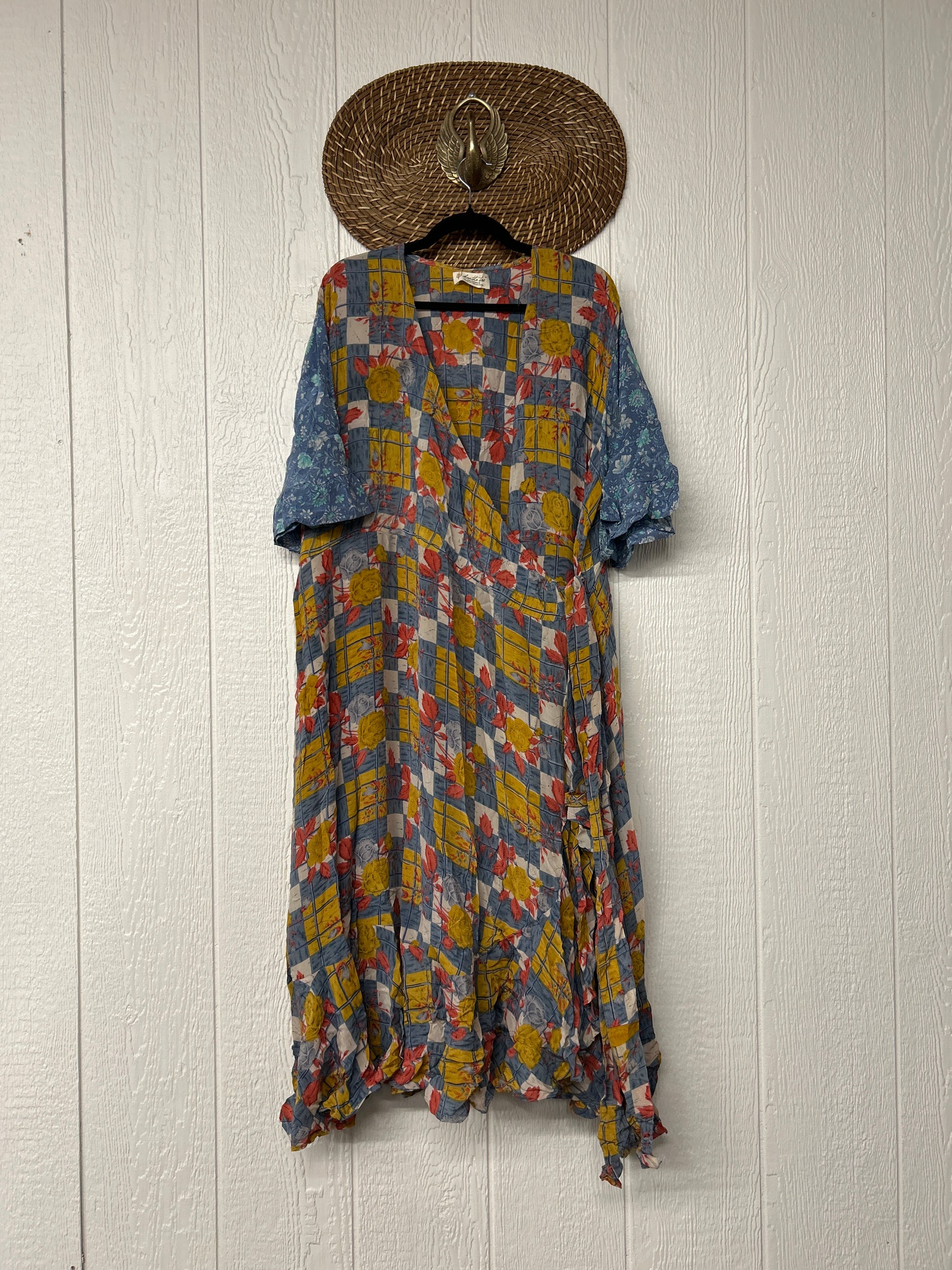 The Summer Flourish Wrap Dress is crafted from our ultra lux vintage crepe sari. Features short bell sleeves, ruffle details throughout and a built in sash belt which wraps around the body to make this beauty fully customizable for a wide range of sizes. You can also wear the Flourish open as a vibey kimono over your favorite outfit. We're obsessed!
