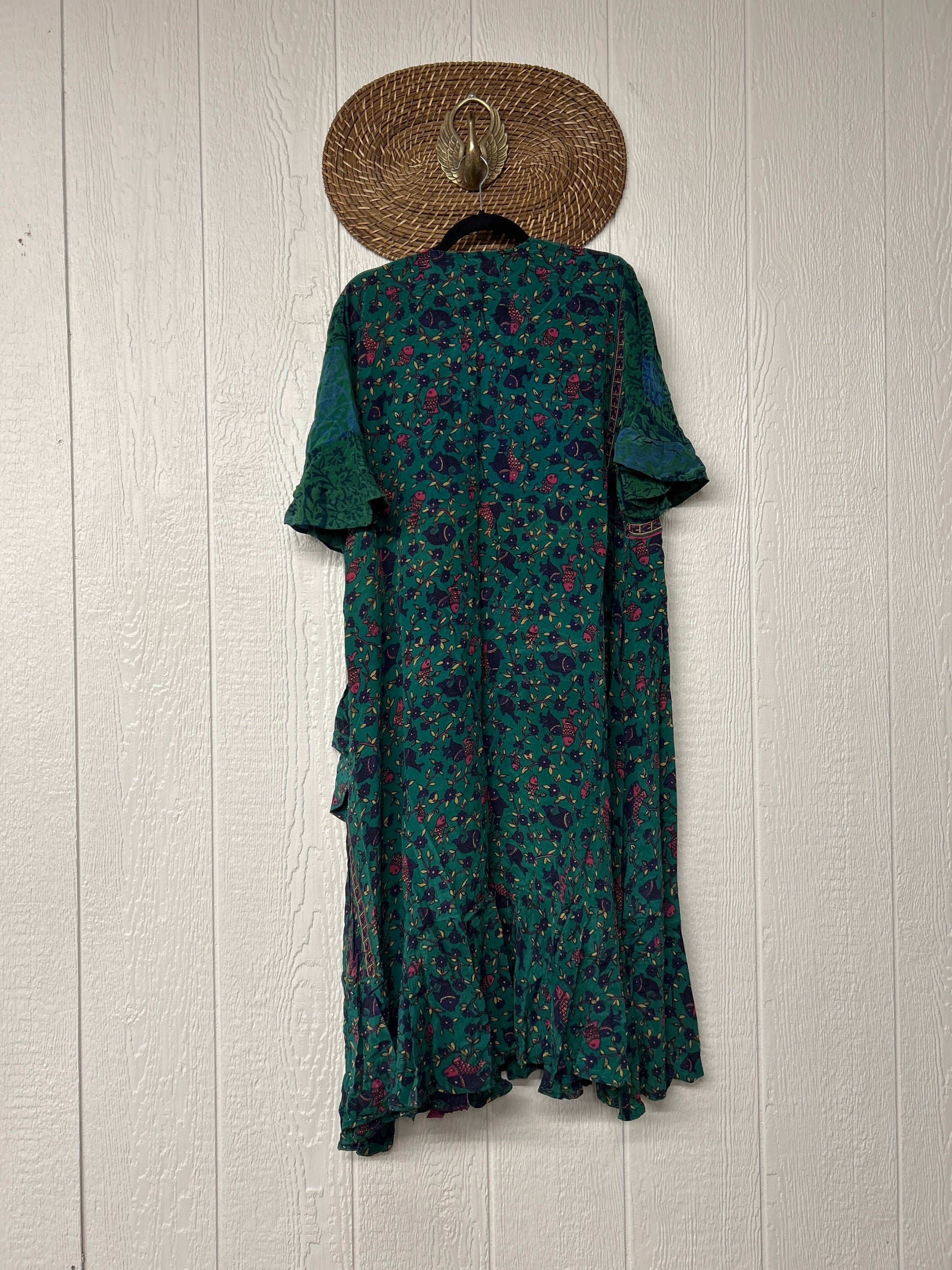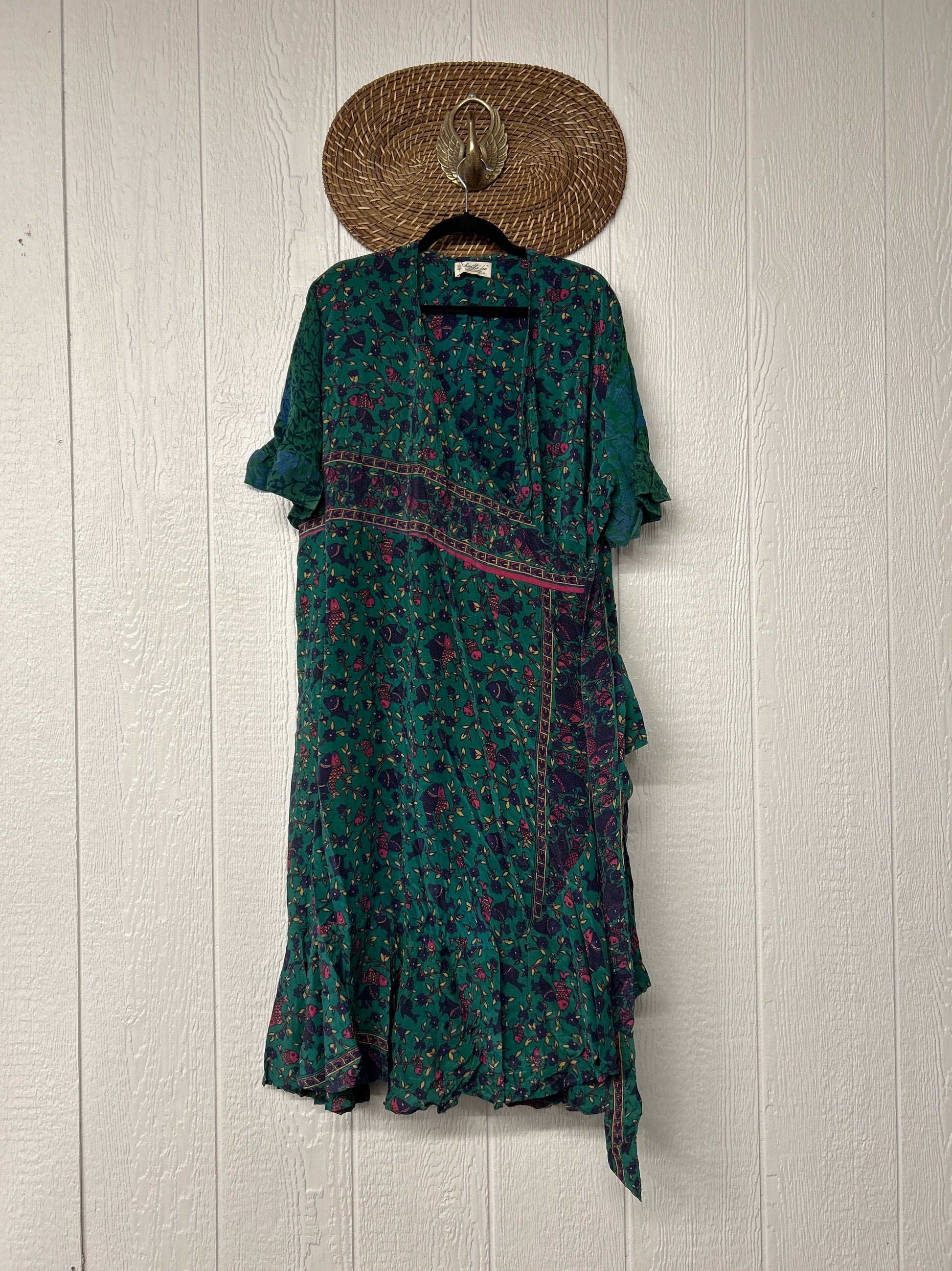 The Summer Flourish Wrap Dress is crafted from our ultra lux vintage crepe sari. Features short bell sleeves, ruffle details throughout and a built in sash belt which wraps around the body to make this beauty fully customizable for a wide range of sizes. You can also wear the Flourish open as a vibey kimono over your favorite outfit. We're obsessed!