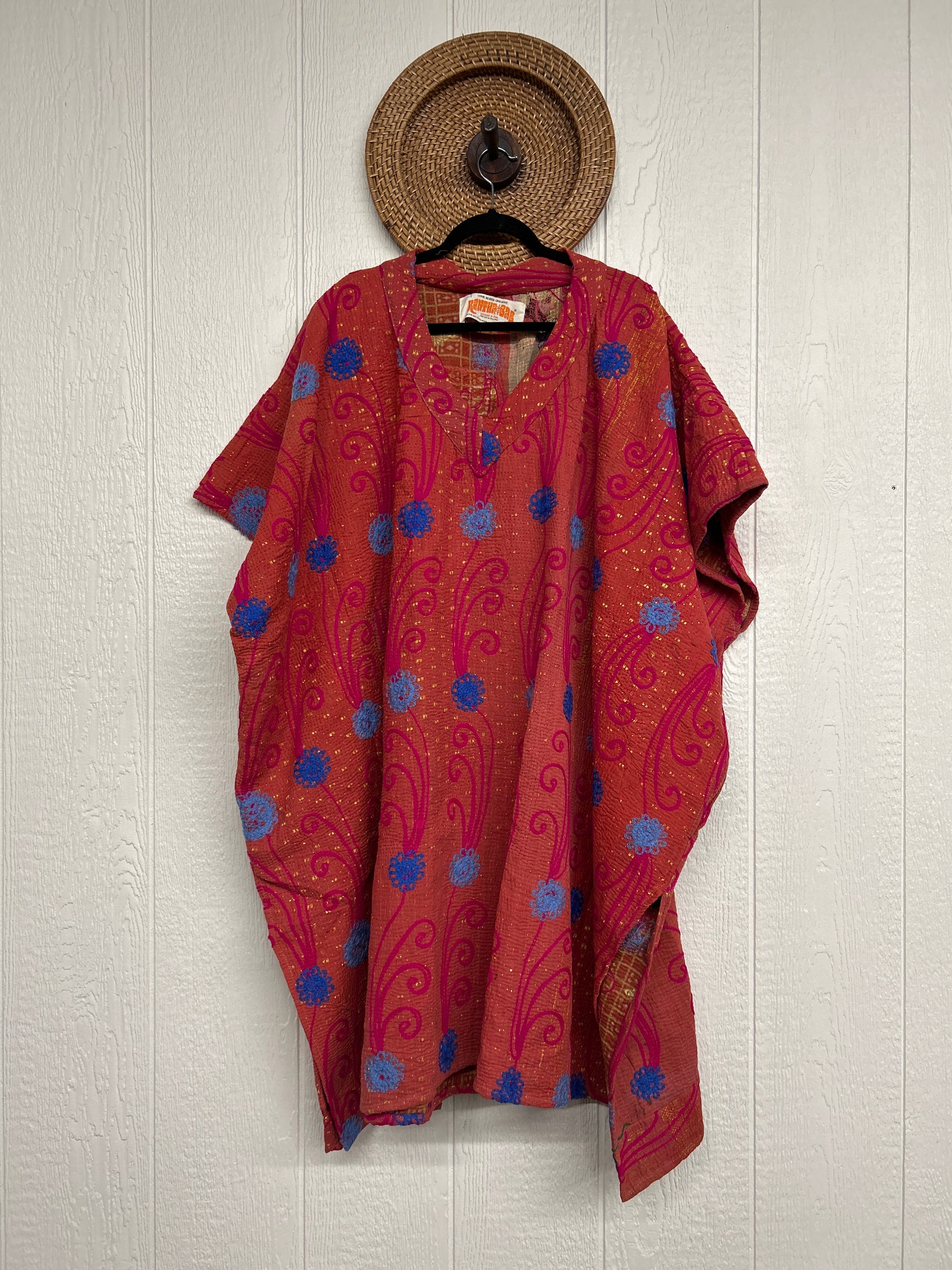 Crafted from hand embroidered fine kantha features a v neckline and interior pockets and side slits for extra dimension.