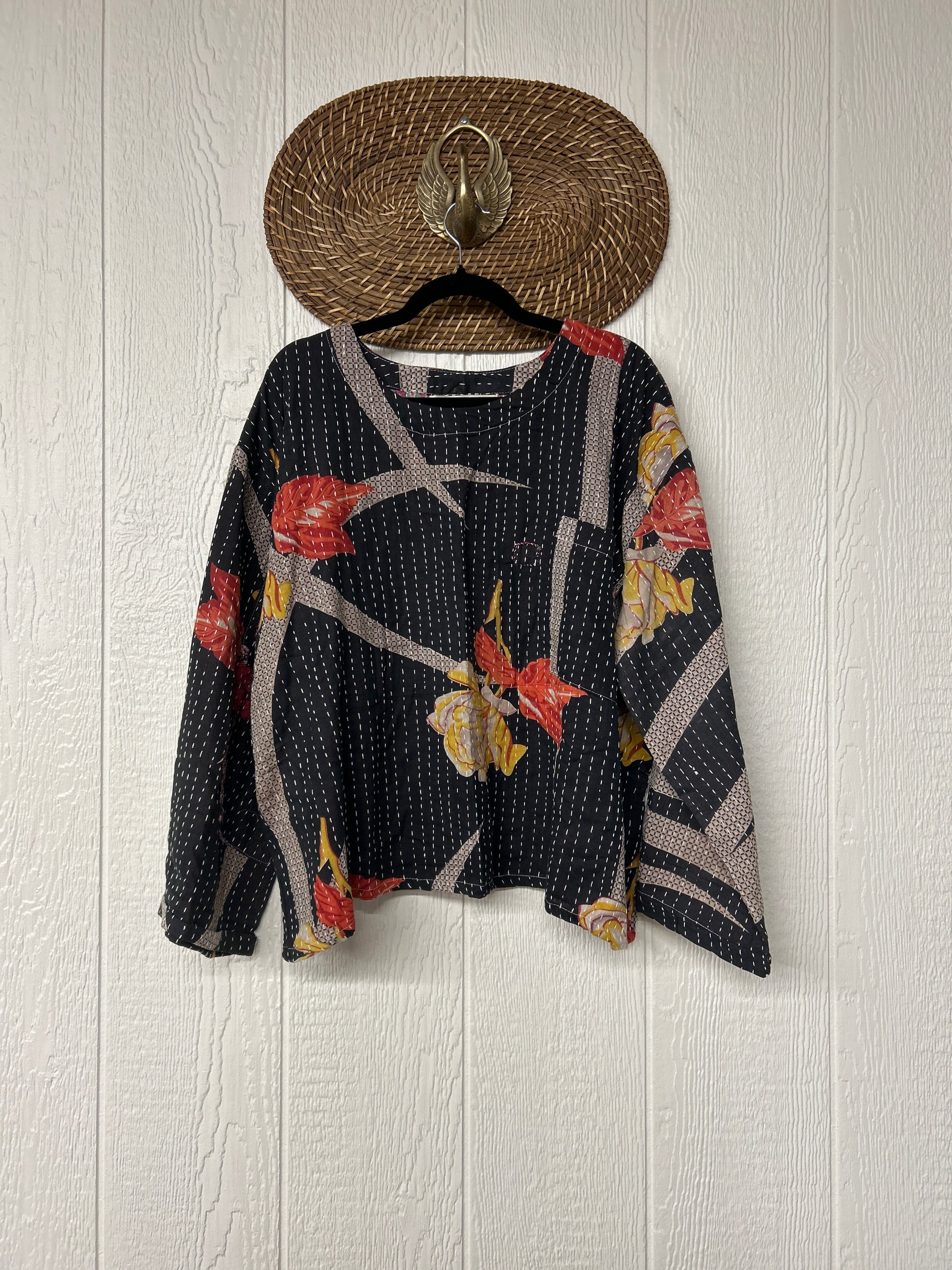 sari. Features long wide sleeves and a pocket on the chest to hold your essentials while you're on lifes adventures.