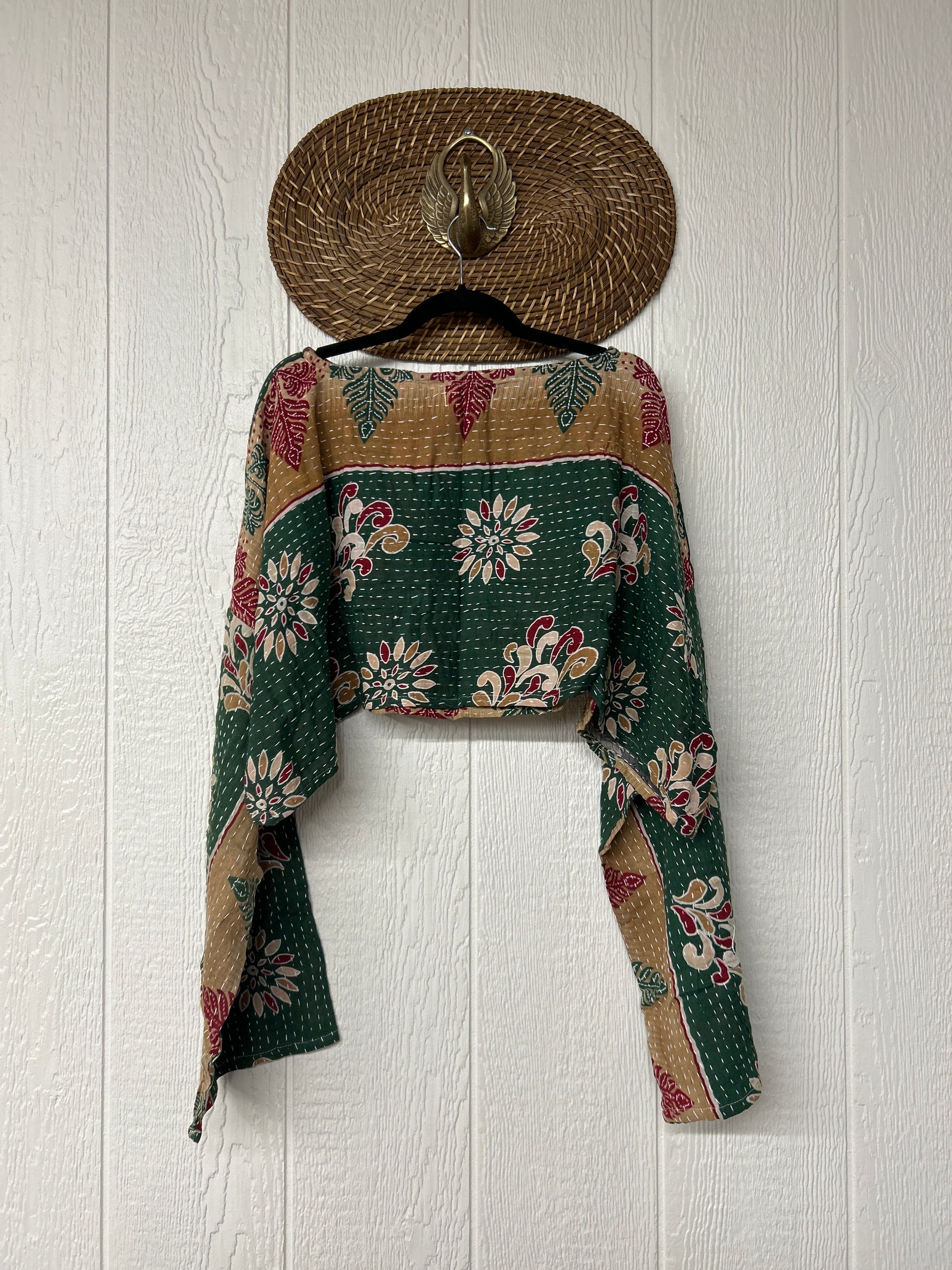 sari. Features long wide sleeves and a funky crop silhouette to wear with all your favorite KB bottoms.