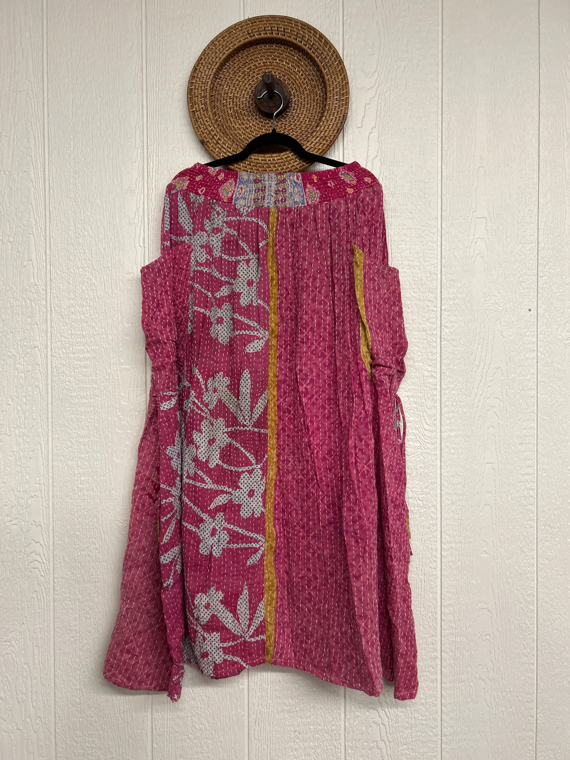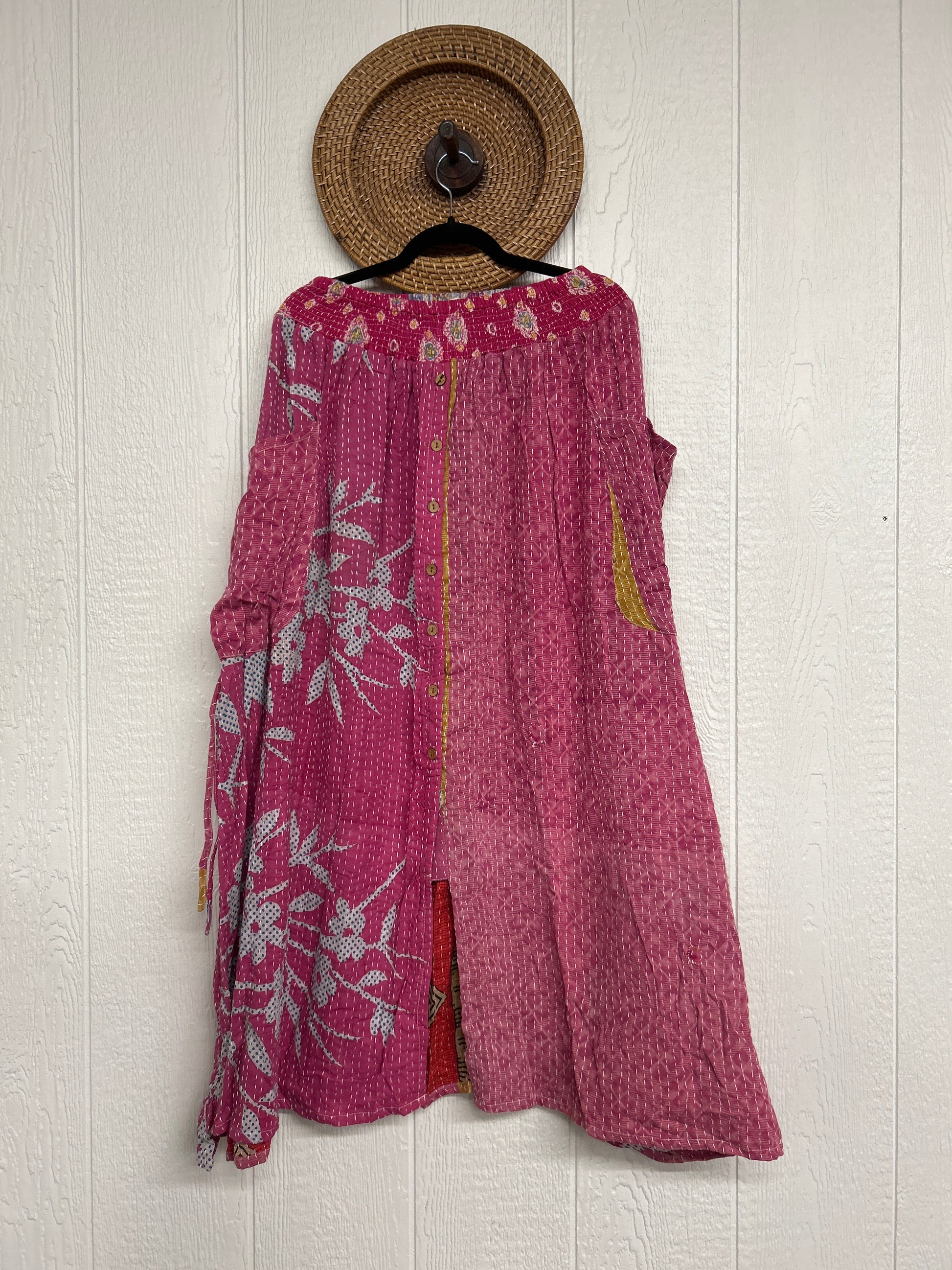 Crafted from kantha stitched vintage cotton sari this absolute dream features slouchy side pockets with a butterfly drawstring to cinch the sides, a button front skirt and a stretchy free size waist.