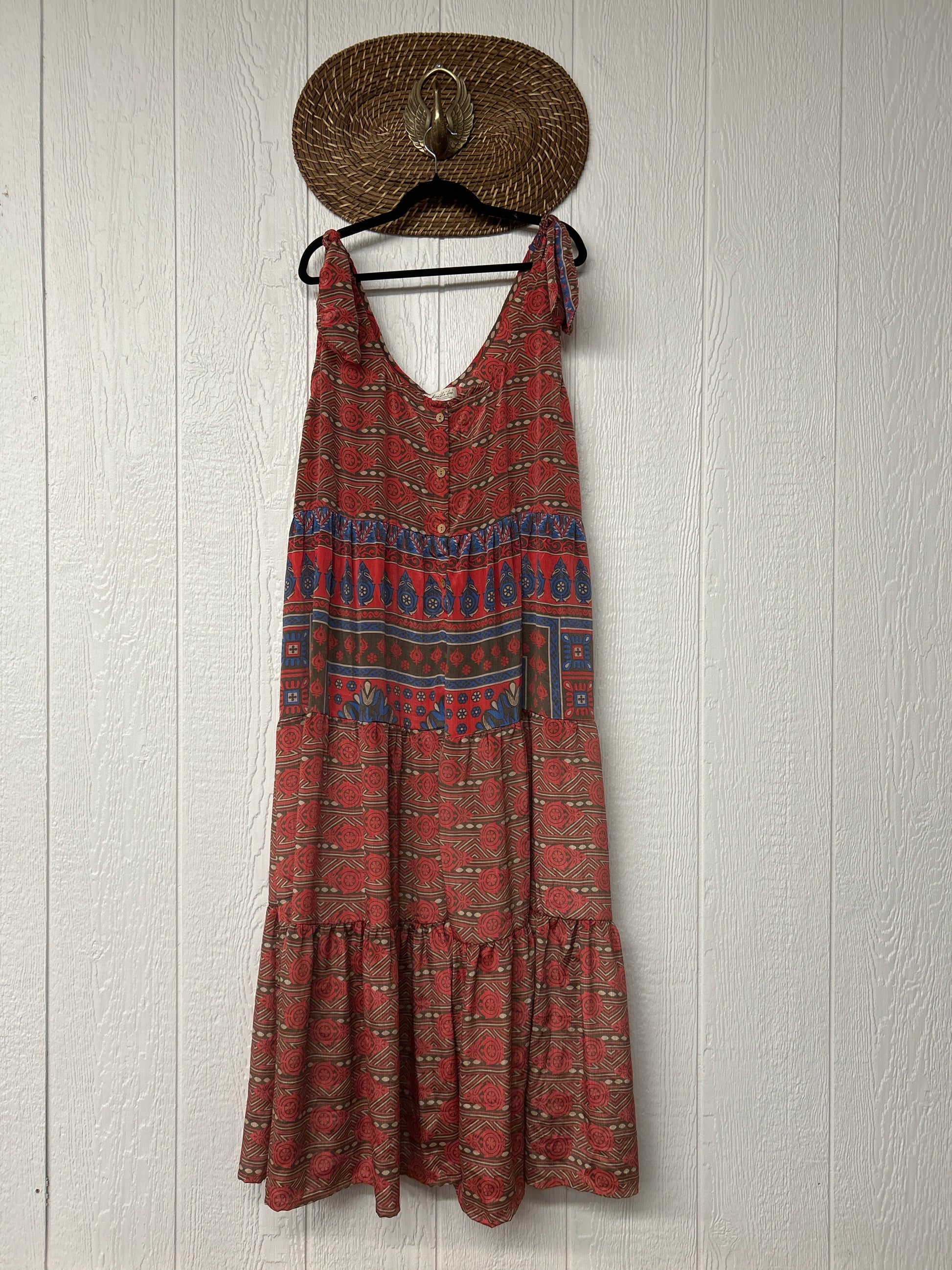 Our Celeste jumpsuit is made from our ultra luxe vintage rasgulla sari.