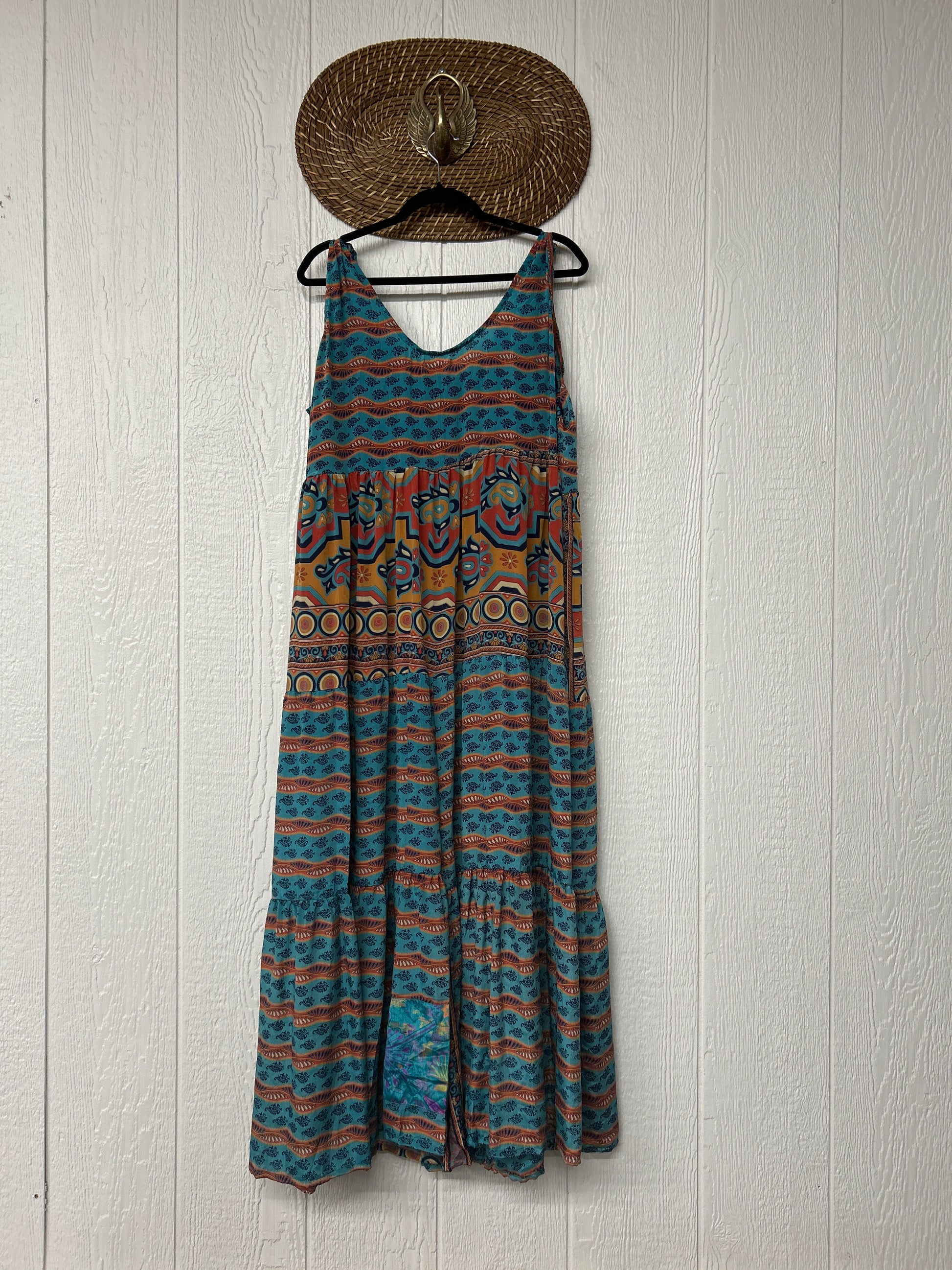 Our Celeste jumpsuit is made from our ultra luxe vintage rasgulla sari.
