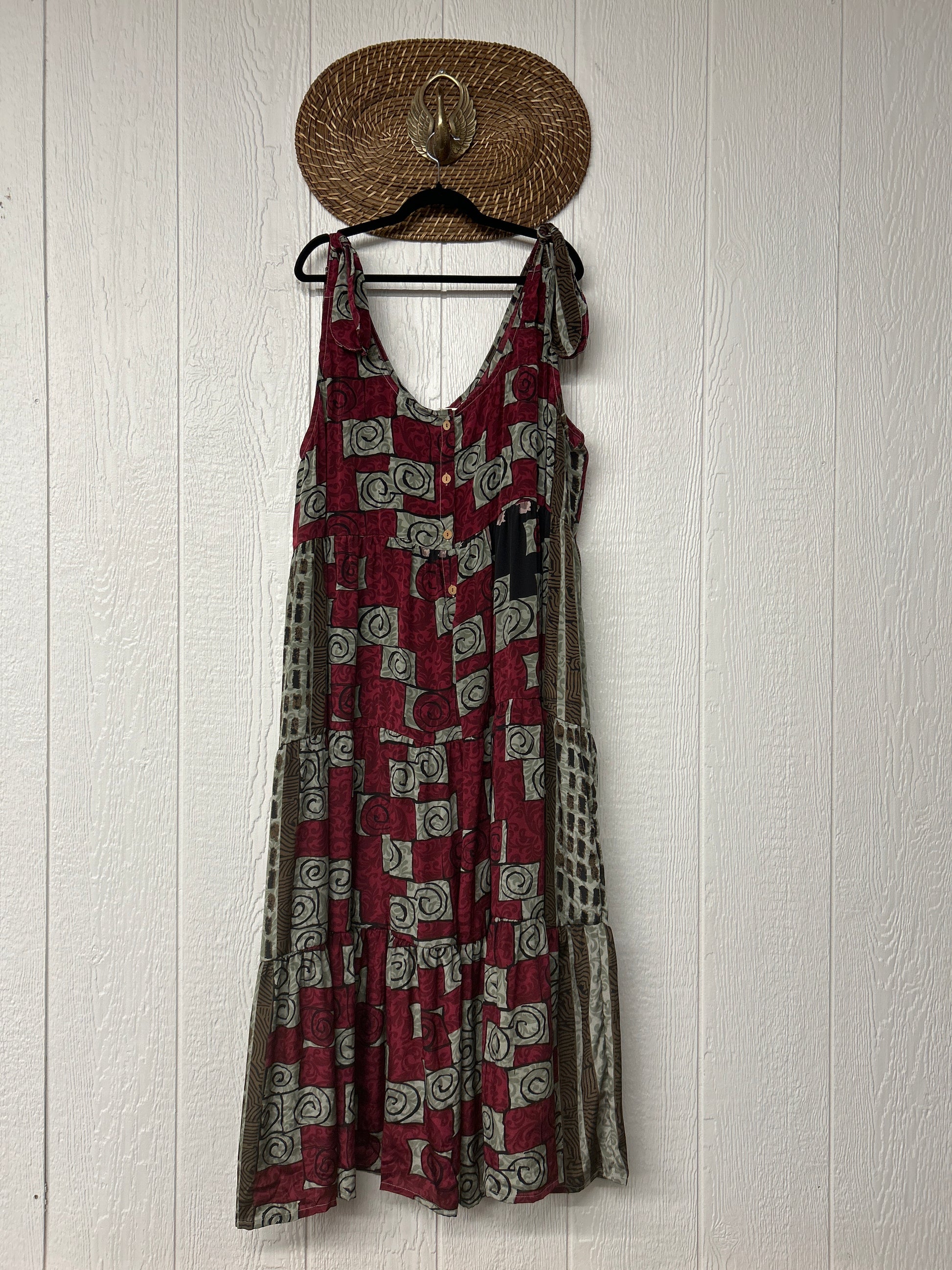 Our Celeste jumpsuit is made from our ultra luxe vintage rasgulla sari.