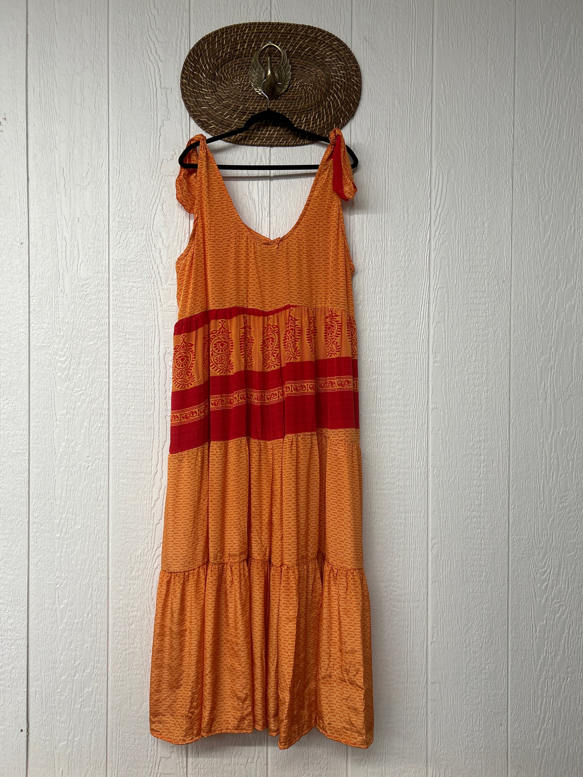 This femine and floaty tiered jumpsuit features tie straps for full customization and pockets.