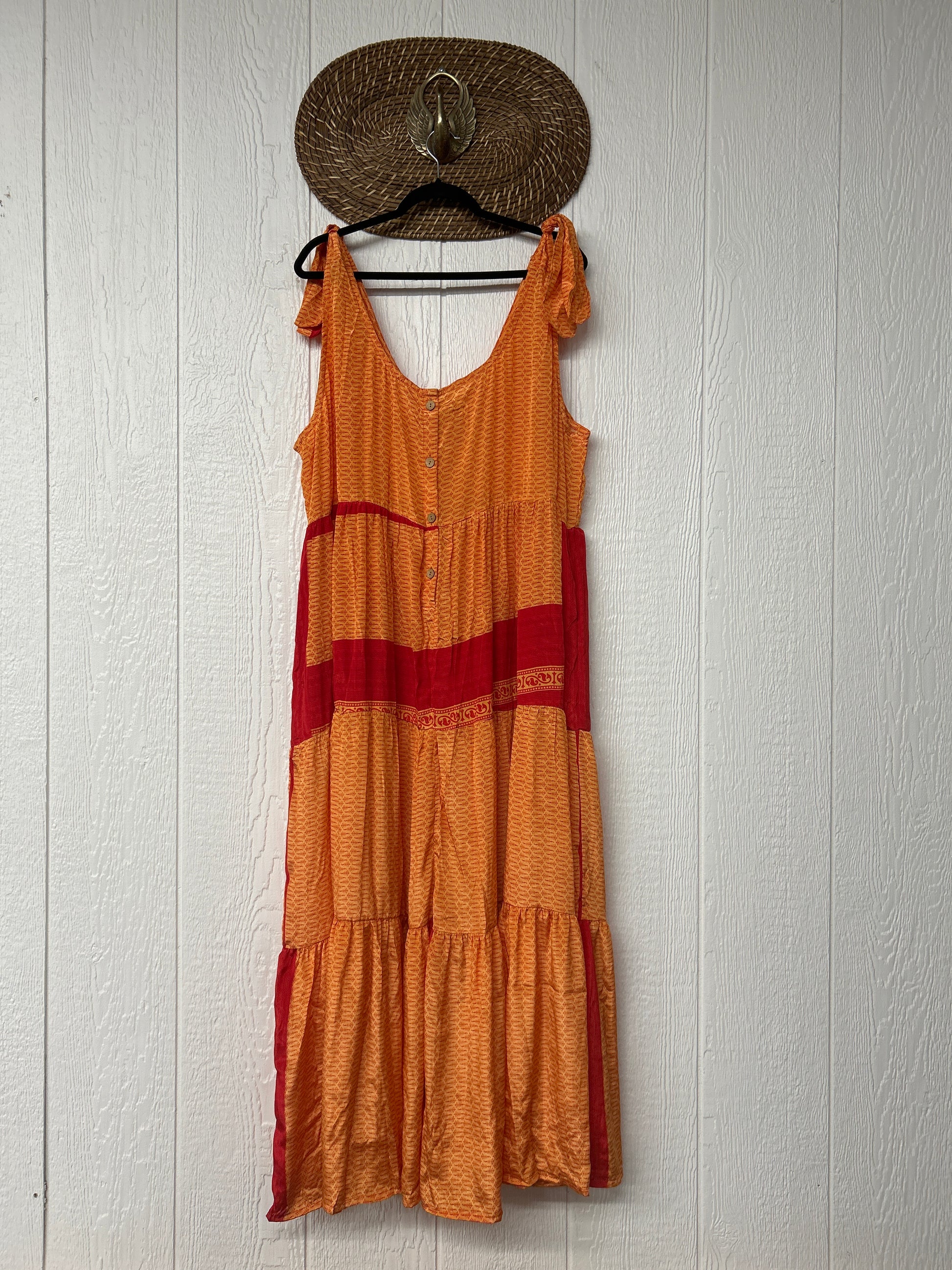 Our Celeste jumpsuit is made from our ultra luxe vintage rasgulla sari.