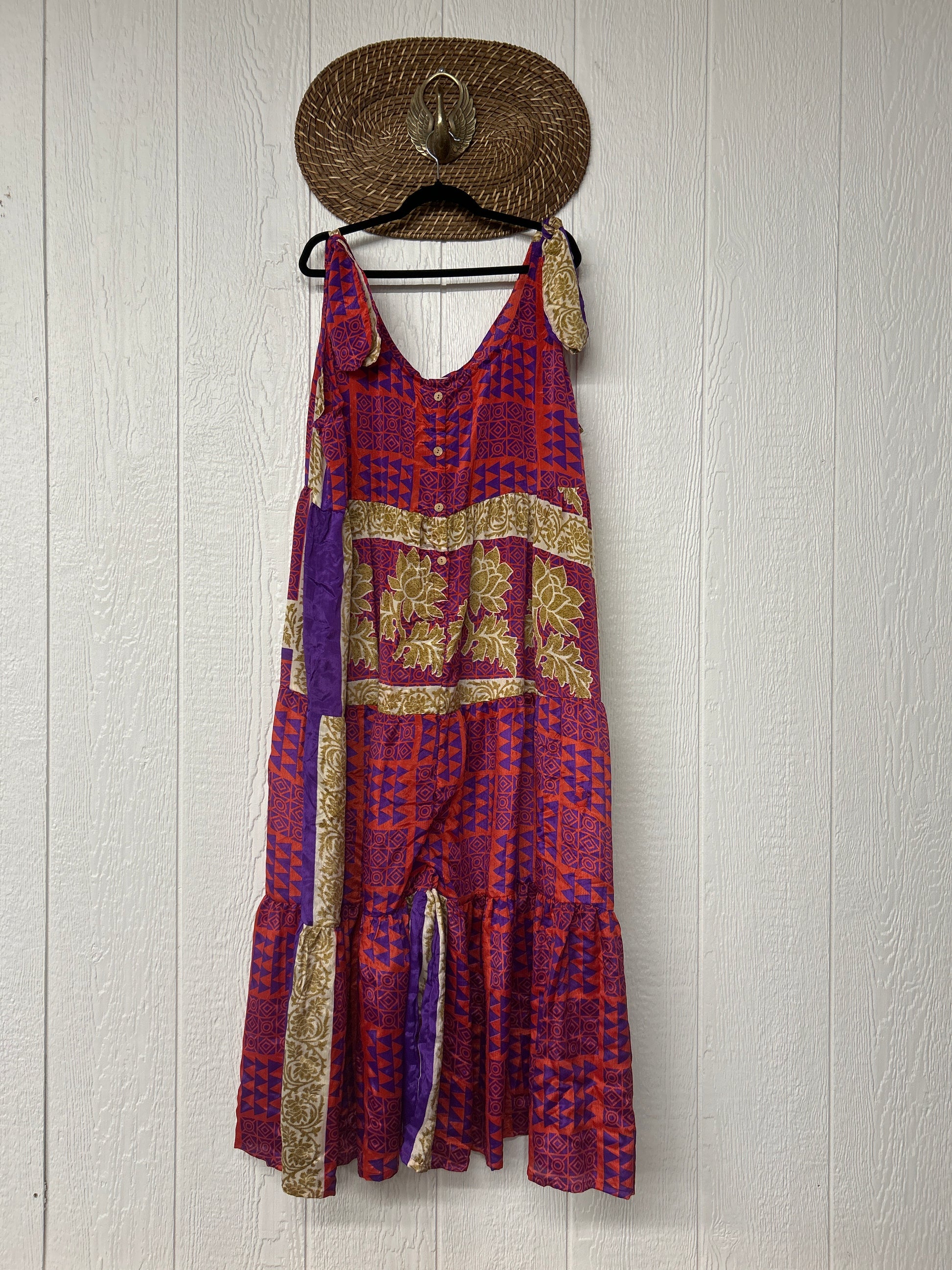 Our Celeste jumpsuit is made from our ultra luxe vintage rasgulla sari.