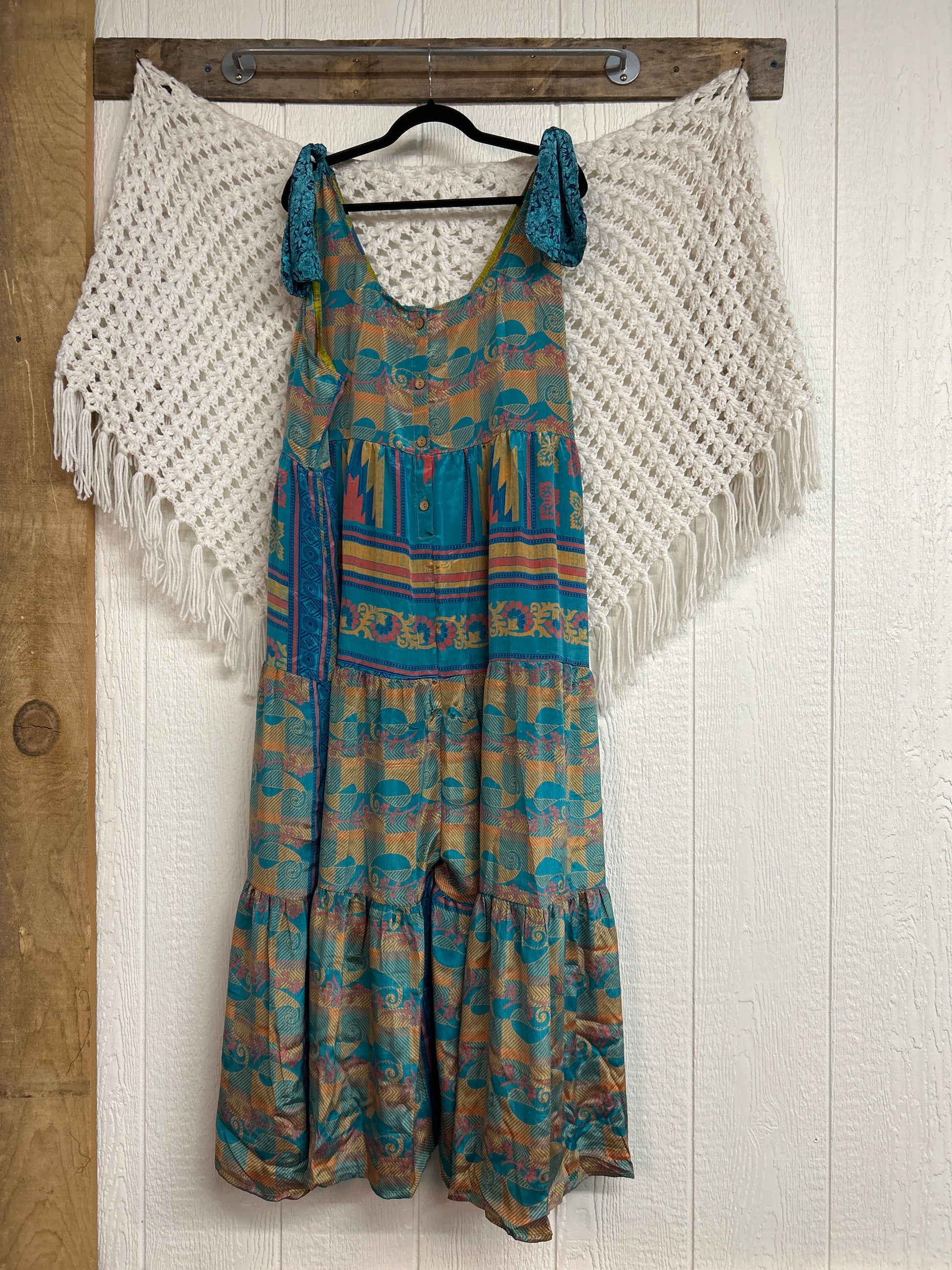 Our Celeste jumpsuit is made from our ultra luxe vintage rasgulla sari.