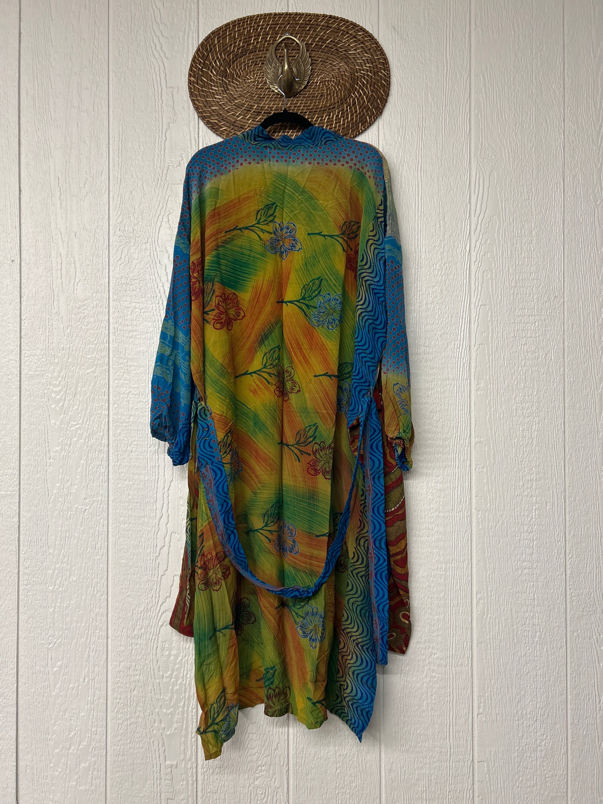 Crepe Dusters are beautiful, flowy, midi-length kimonos made from our ultra lux vintage crepe sari. They feature balloon sleeves with elastic at the wrist, 2 slouchy pockets, and a sash. They are one of our favorite layering pieces EVER.