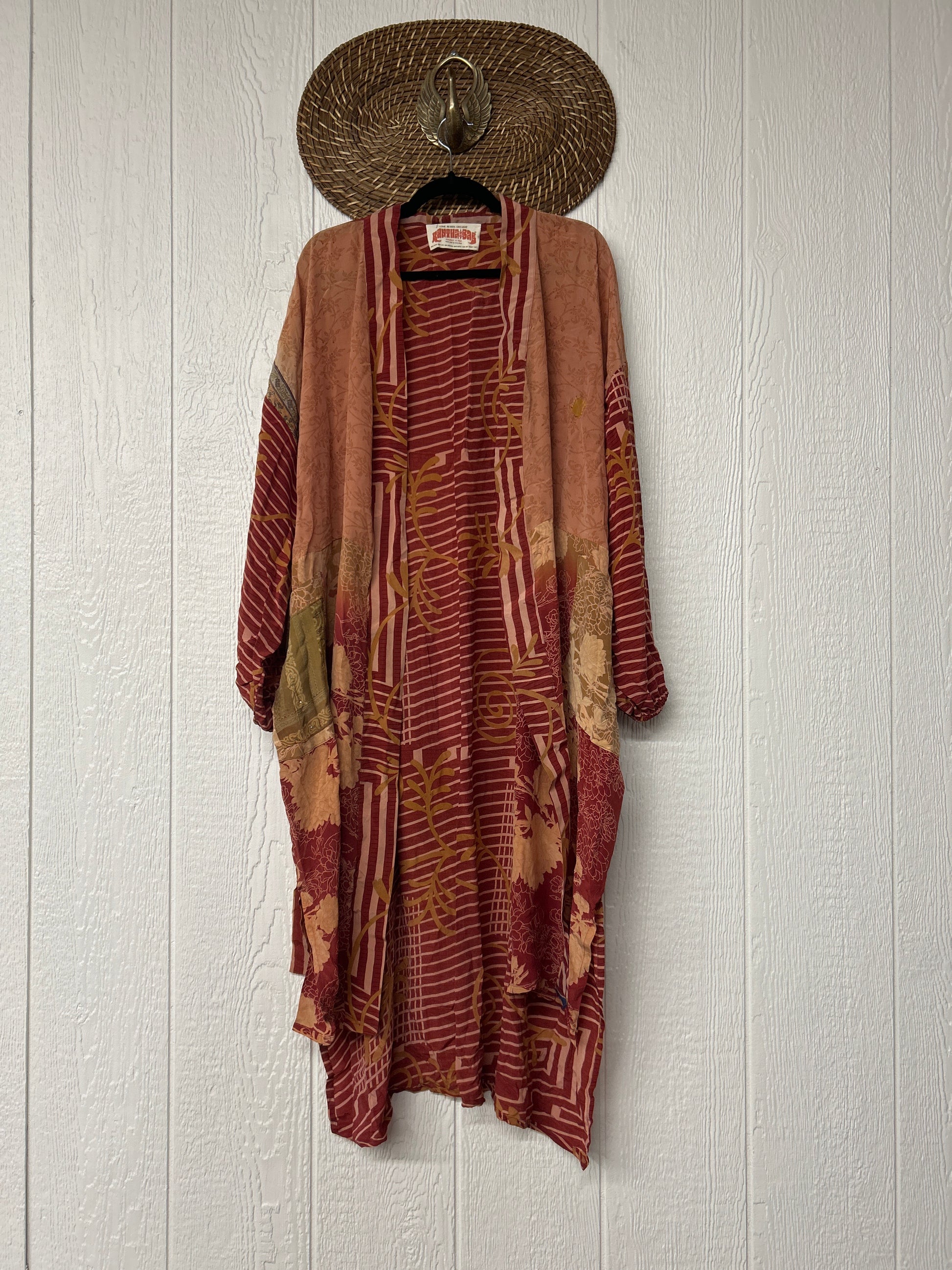 Crepe Dusters are beautiful, flowy, midi-length kimonos made from our ultra lux vintage crepe sari. They feature balloon sleeves with elastic at the wrist, 2 slouchy pockets, and a sash. They are one of our favorite layering pieces EVER.