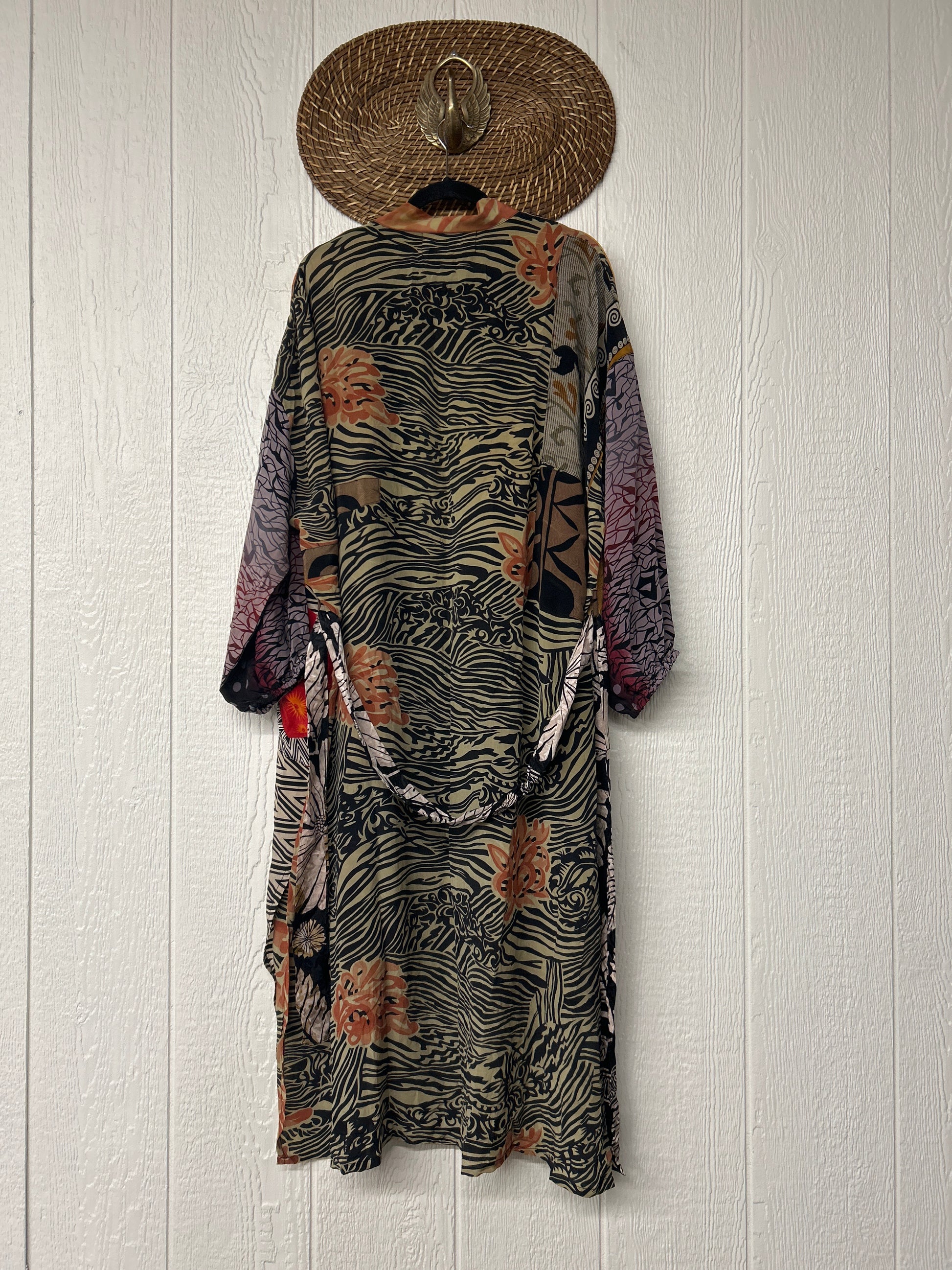 Crepe Dusters are beautiful, flowy, midi-length kimonos made from our ultra lux vintage crepe sari. They feature balloon sleeves with elastic at the wrist, 2 slouchy pockets, and a sash. They are one of our favorite layering pieces EVER.
