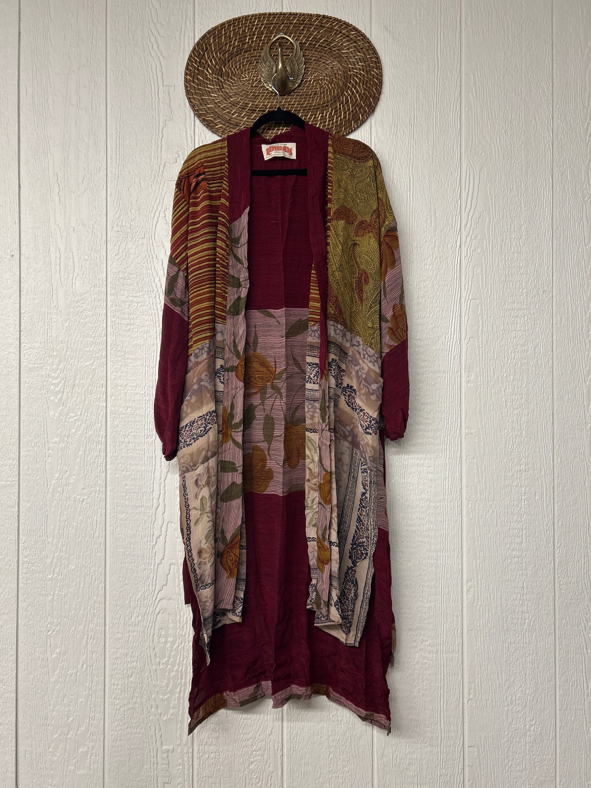 Crepe Dusters are beautiful, flowy, midi-length kimonos made from our ultra lux vintage crepe sari. They feature balloon sleeves with elastic at the wrist, 2 slouchy pockets, and a sash. They are one of our favorite layering pieces EVER.