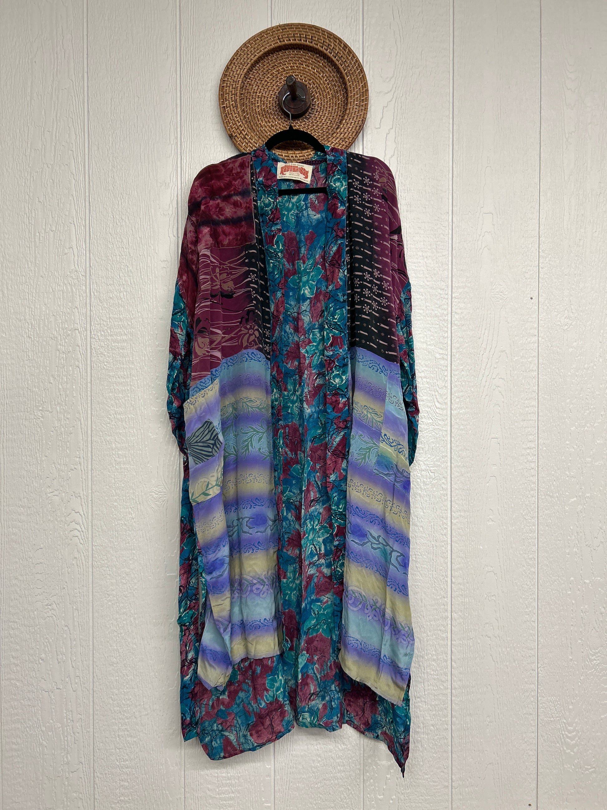 Crepe Dusters are beautiful, flowy, midi-length kimonos made from our ultra lux vintage crepe sari. They feature balloon sleeves with elastic at the wrist, 2 slouchy pockets, and a sash. They are one of our favorite layering pieces EVER.