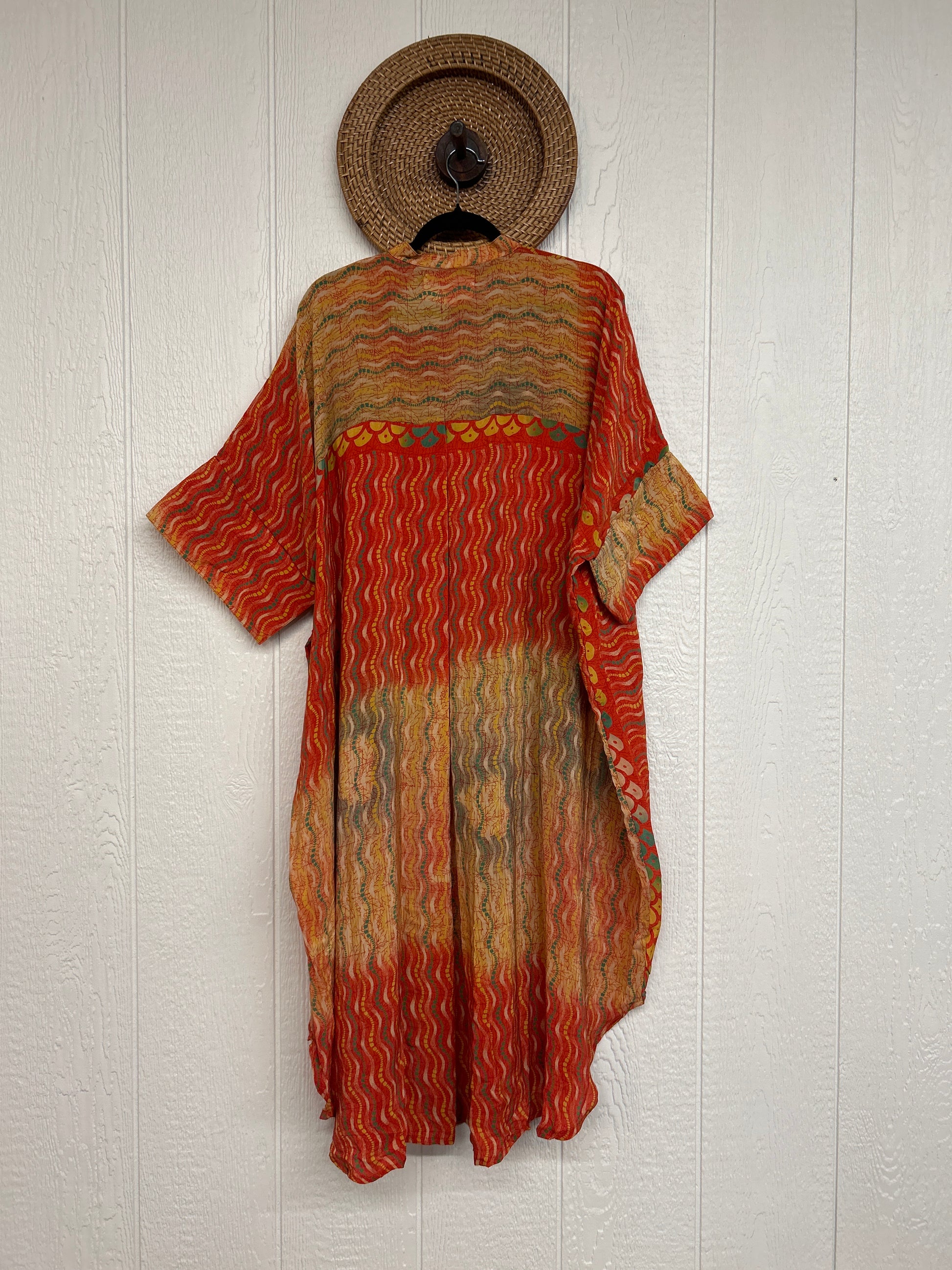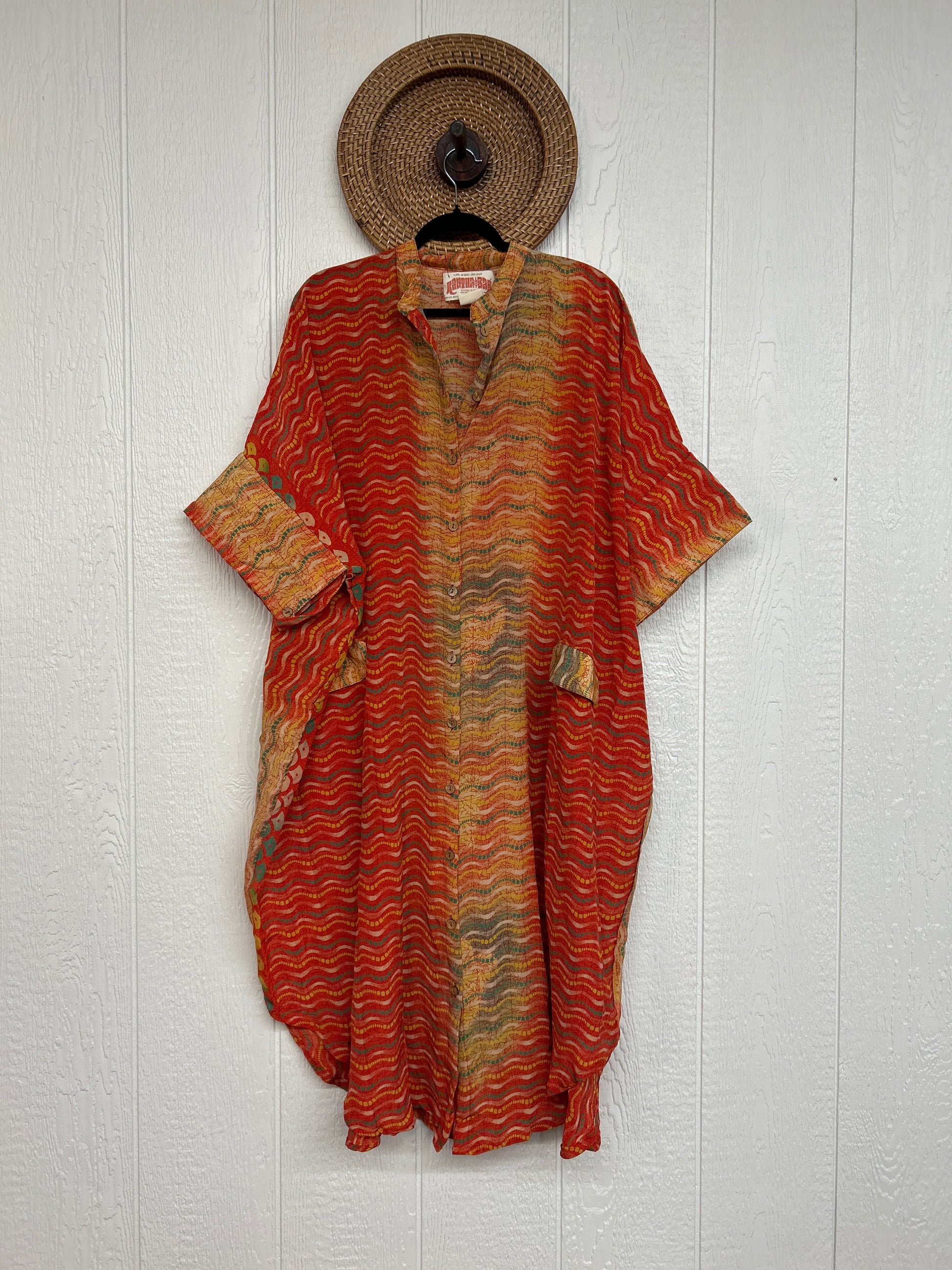 Made from our vintage crepe sari, this billowy dream functional buttons, two deep pockets in the front and a curved bottom.