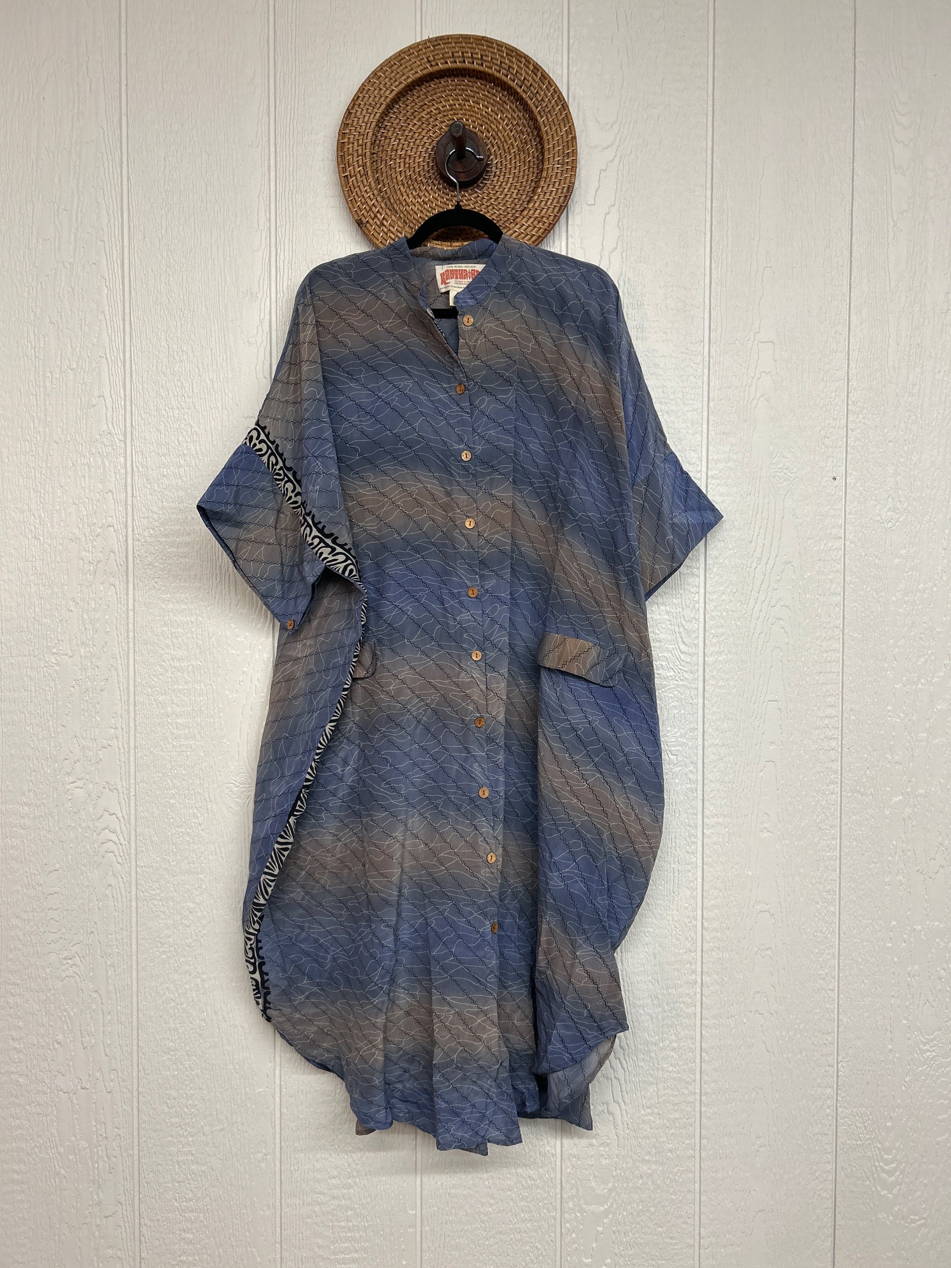 Made from our vintage crepe sari, this billowy dream functional buttons, two deep pockets in the front and a curved bottom.