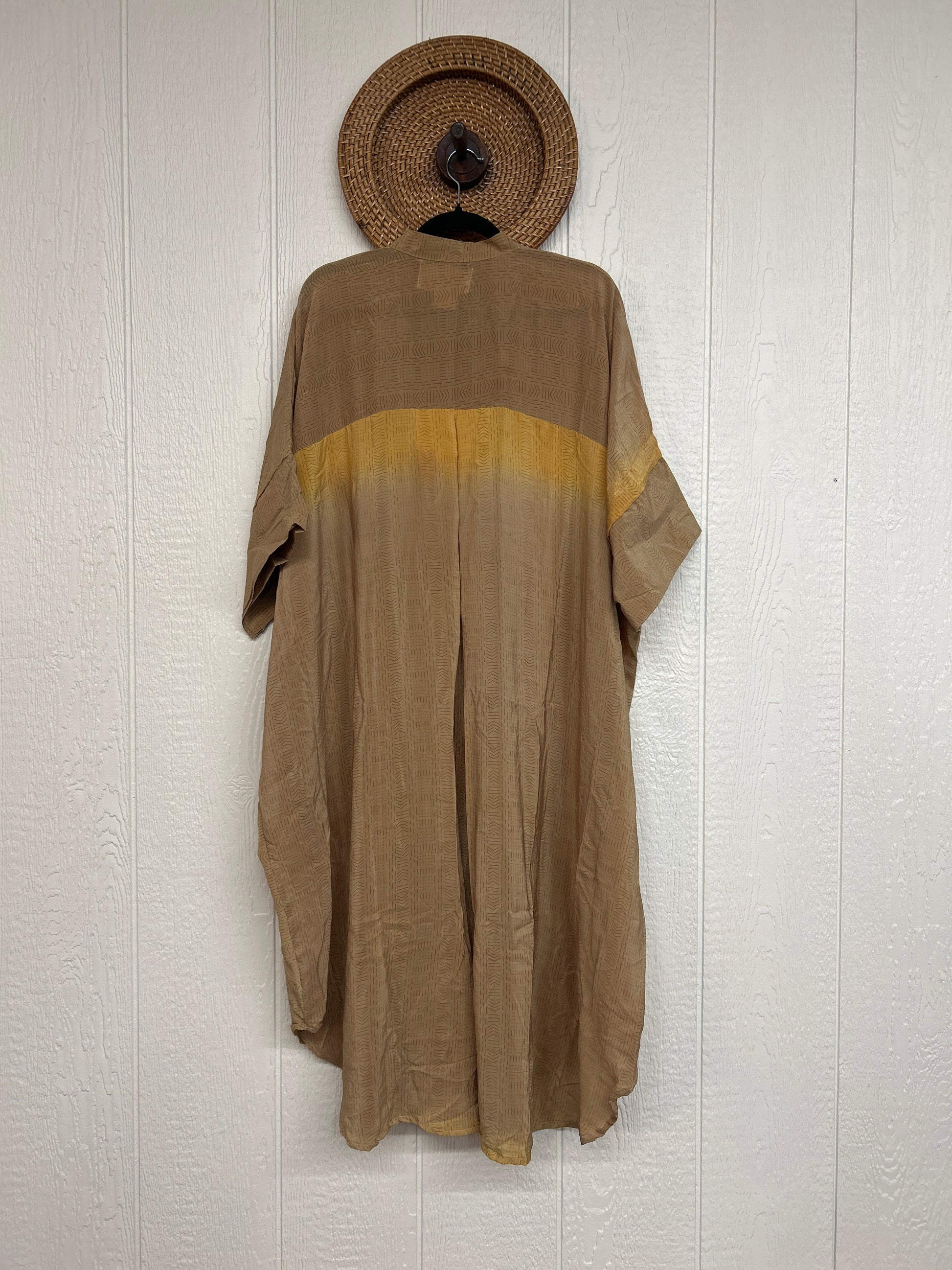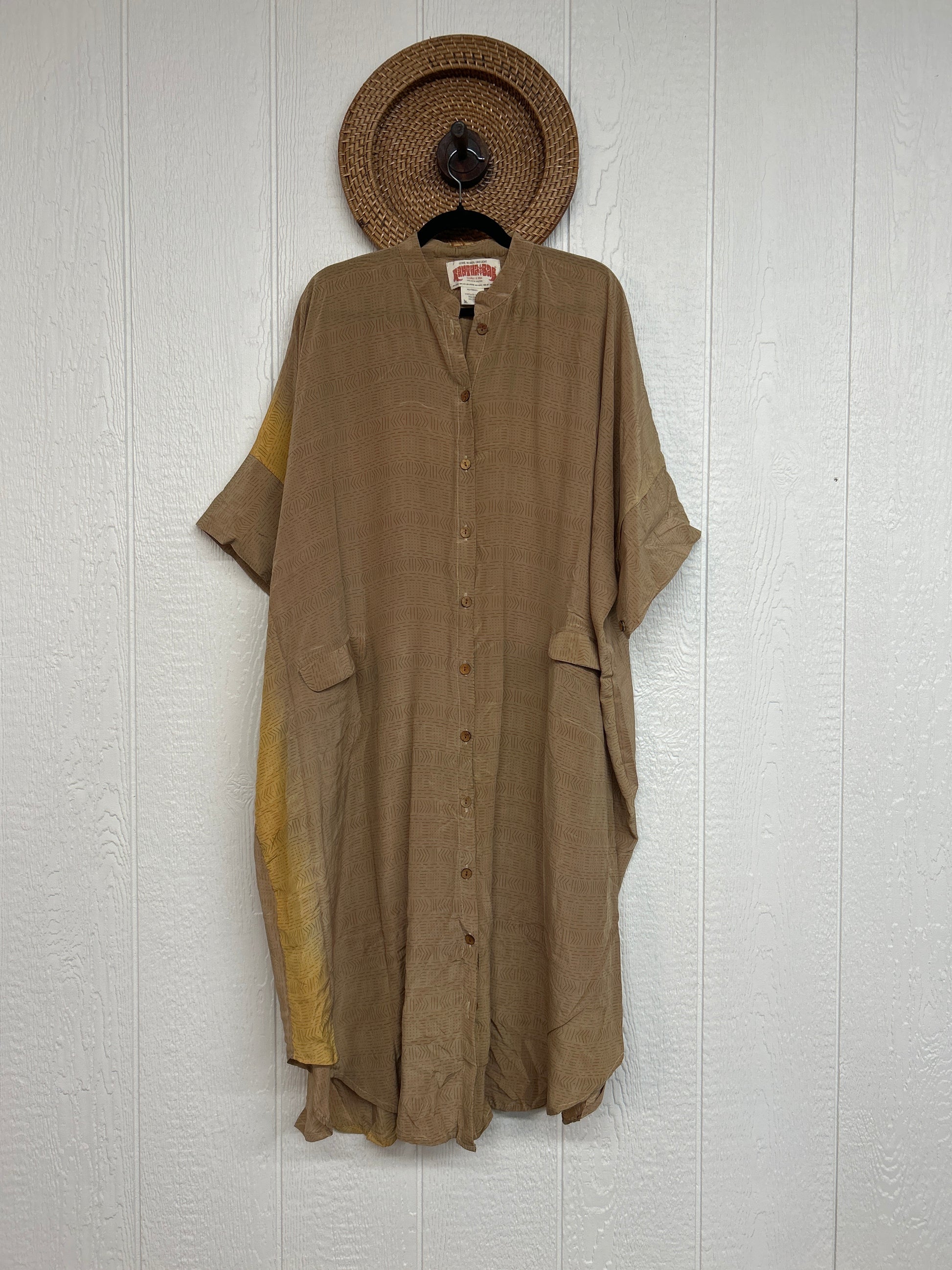 Made from our vintage crepe sari, this billowy dream functional buttons, two deep pockets in the front and a curved bottom.