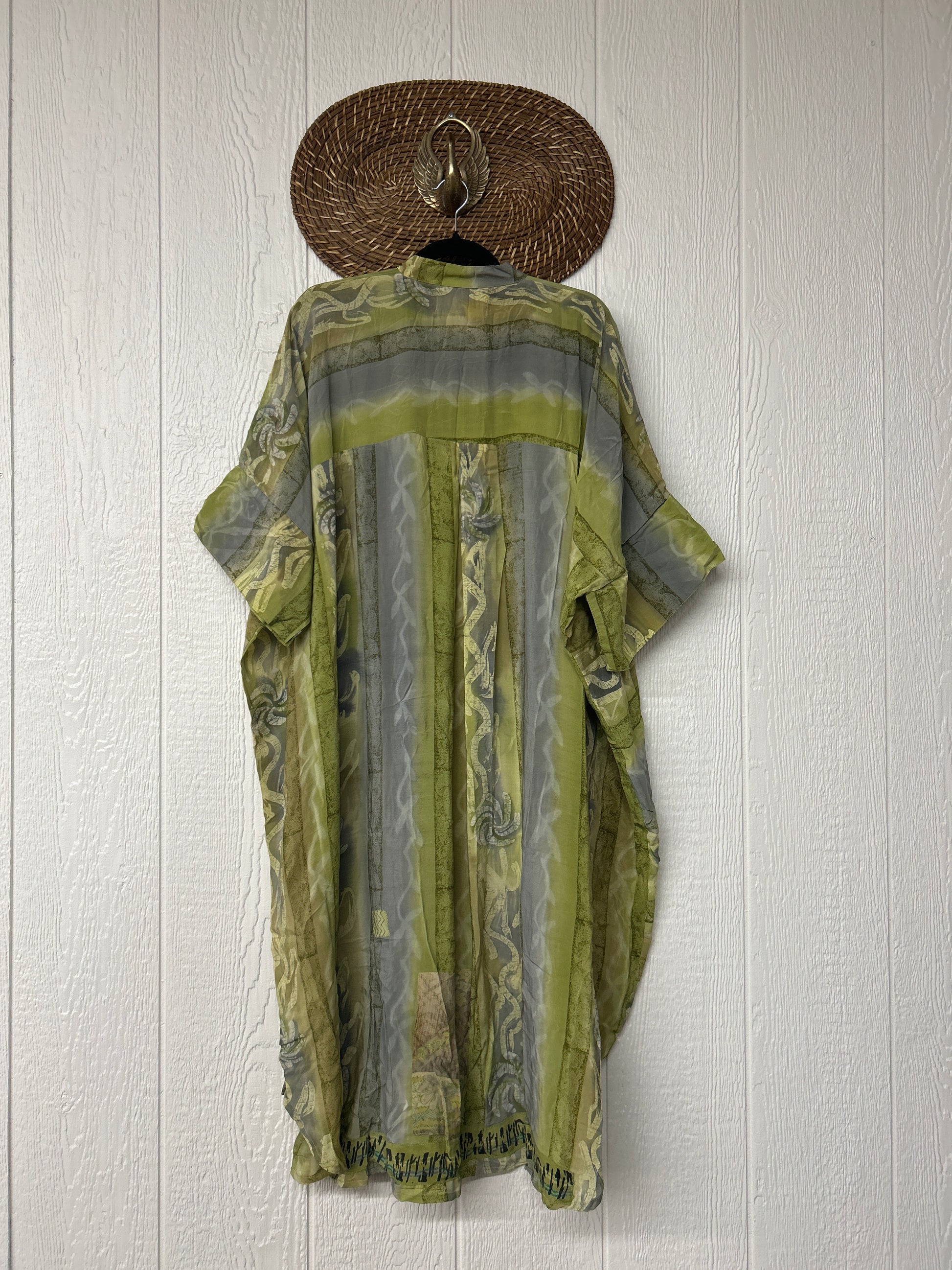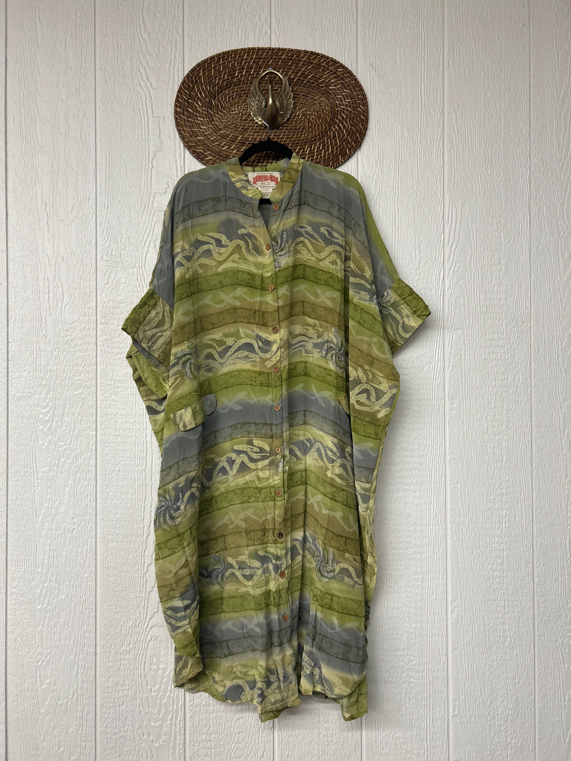 Made from our vintage crepe sari, this billowy dream functional buttons, two deep pockets in the front and a curved bottom.