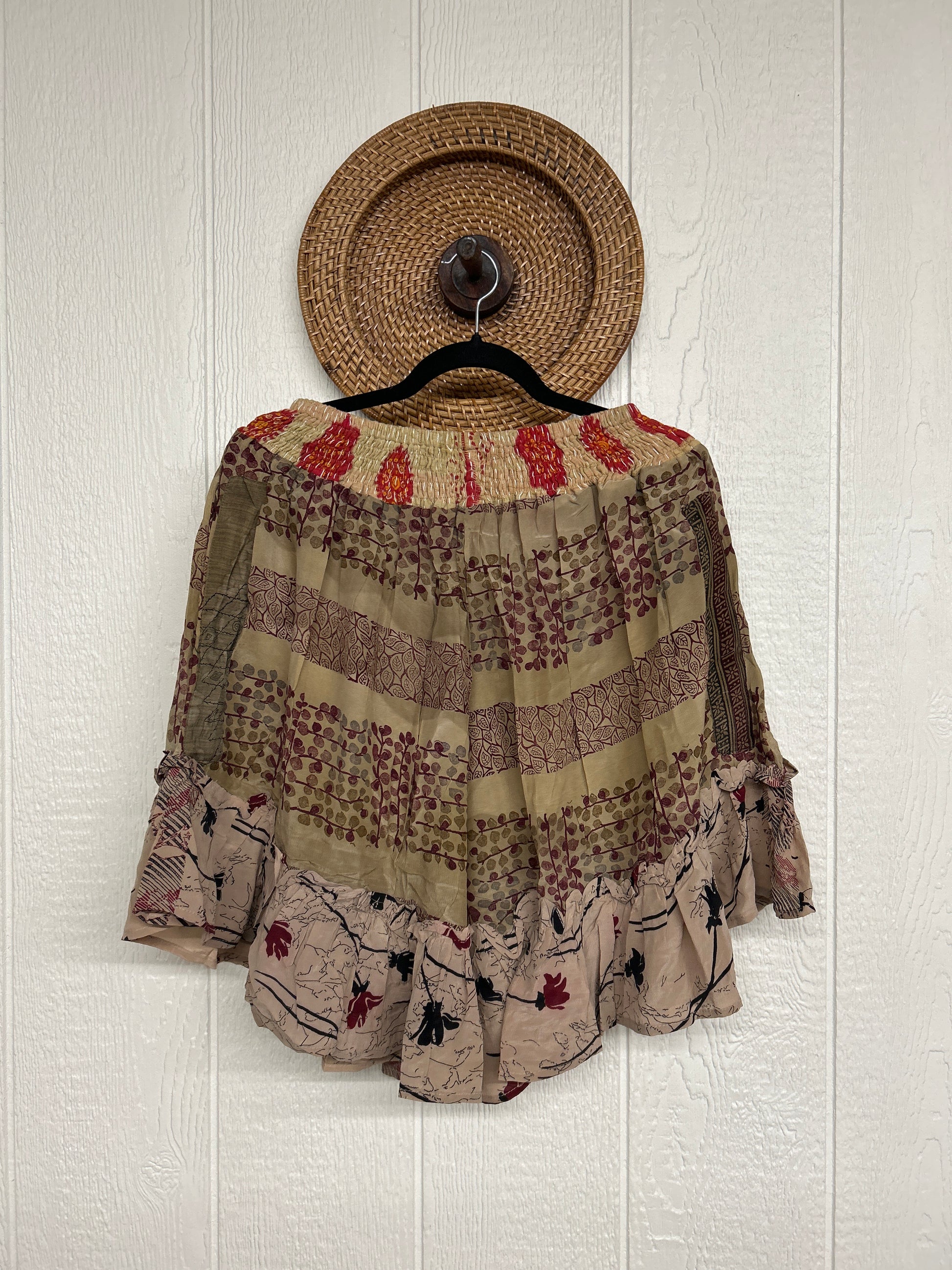 Disclosure: Our vintage styles have lived a full life before becoming the designs in our shop. Fabrics may have small threads or holes in the layers. Color inconsistency or small stains may be present. The saris are sewn together and extend the life of each design. Imperfections should be celebrated.