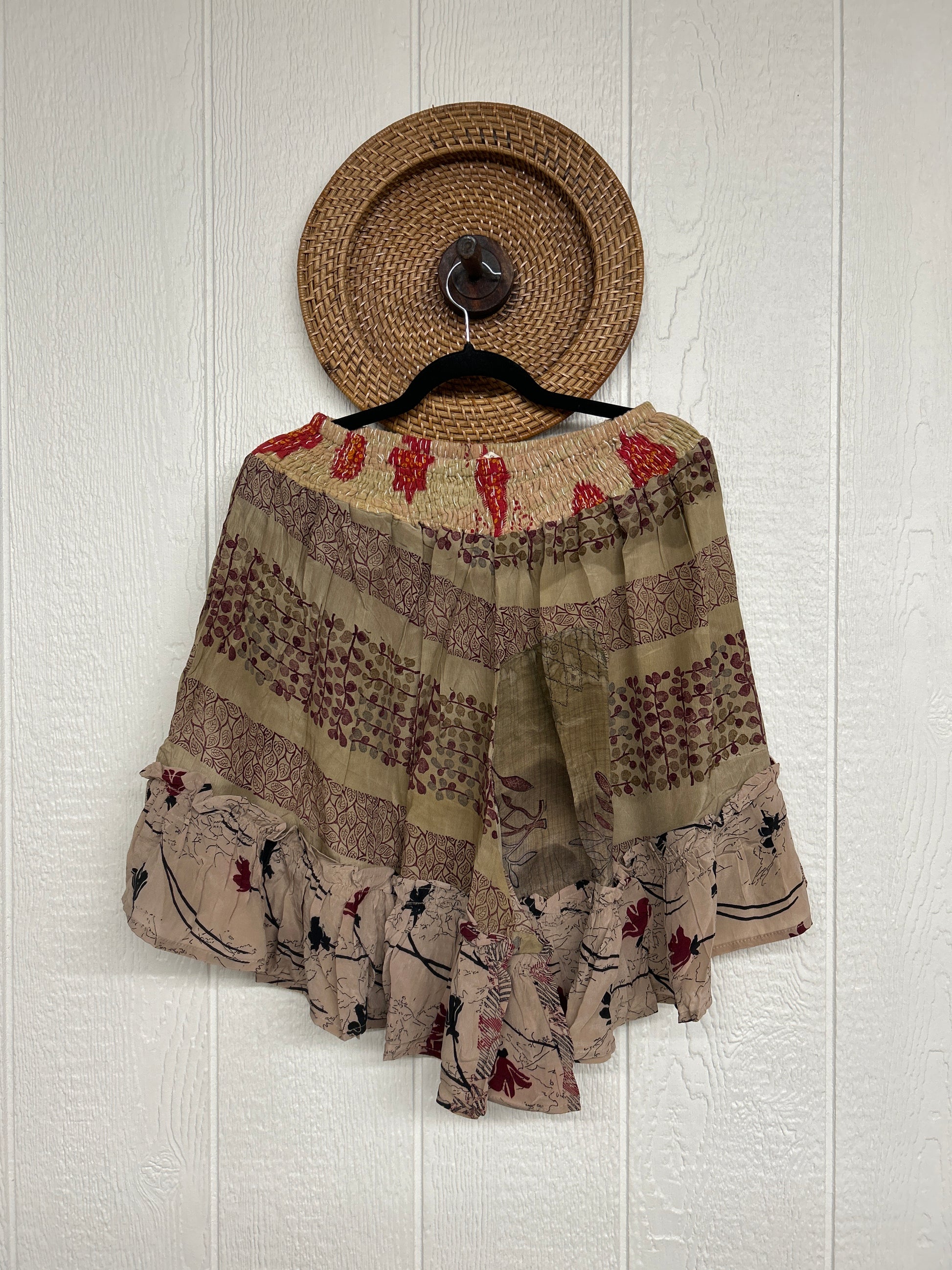 Crafted from vintage crepe sari, our Lover Cropped Culotte features interior pockets, a ruffle hem, stretchy kantha waist and hits at the knee.