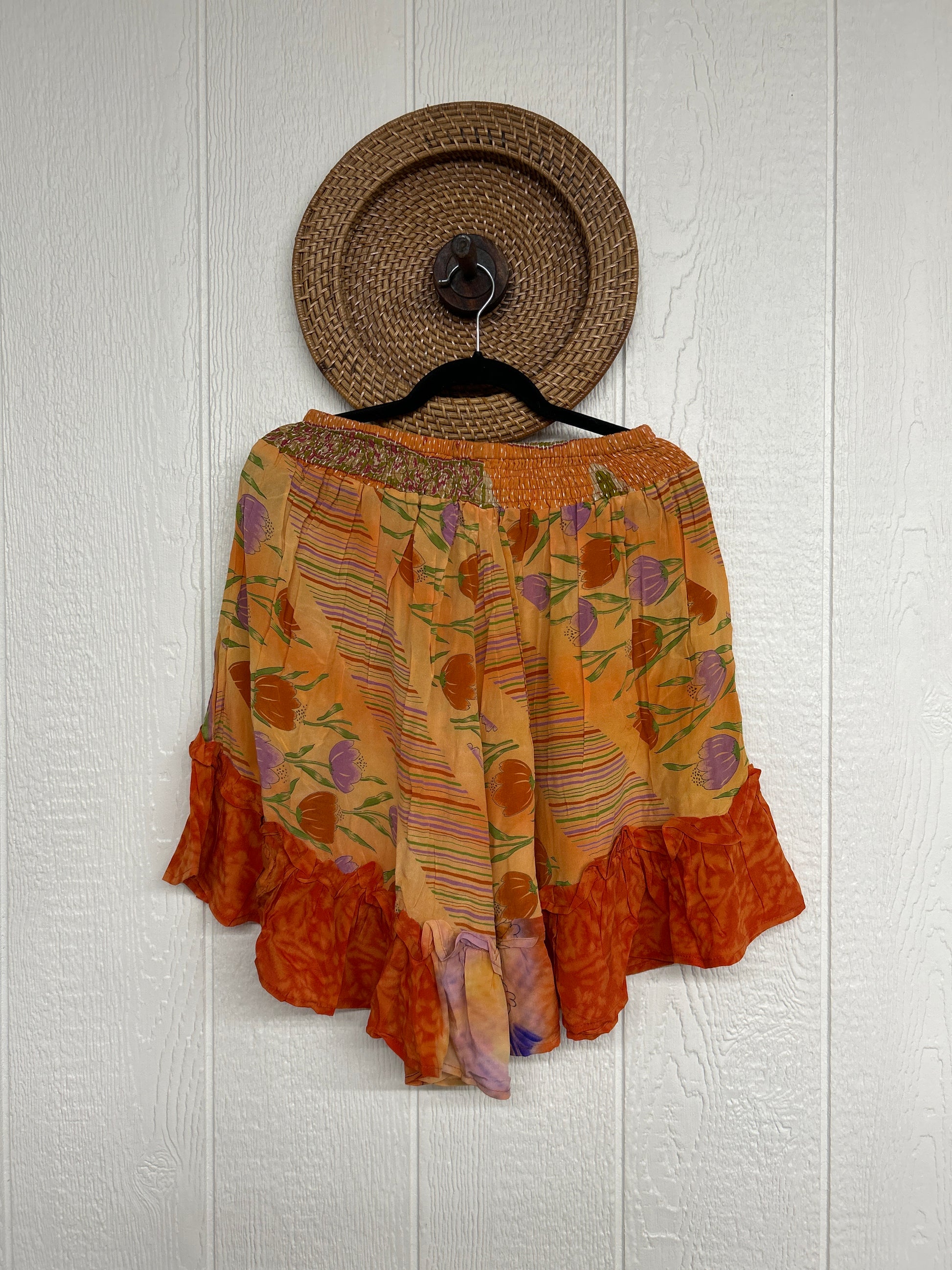 Crafted from vintage crepe sari, our Lover Cropped Culotte features interior pockets, a ruffle hem, stretchy kantha waist and hits at the knee.