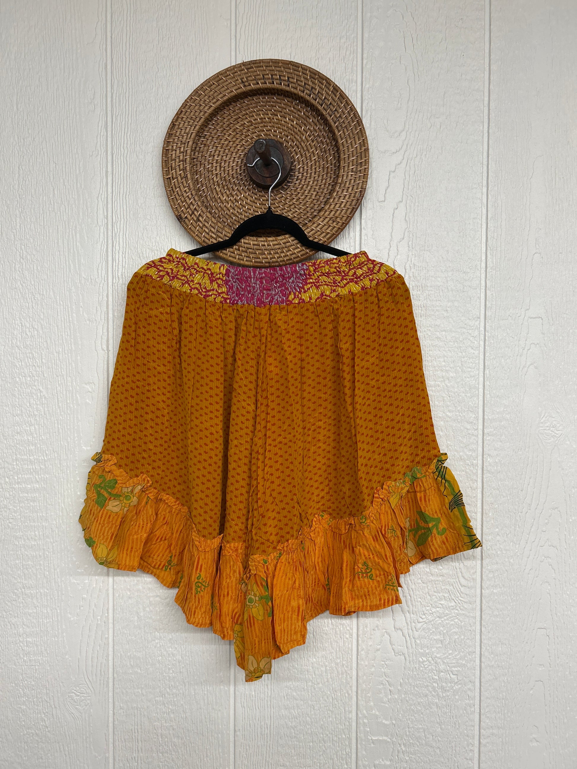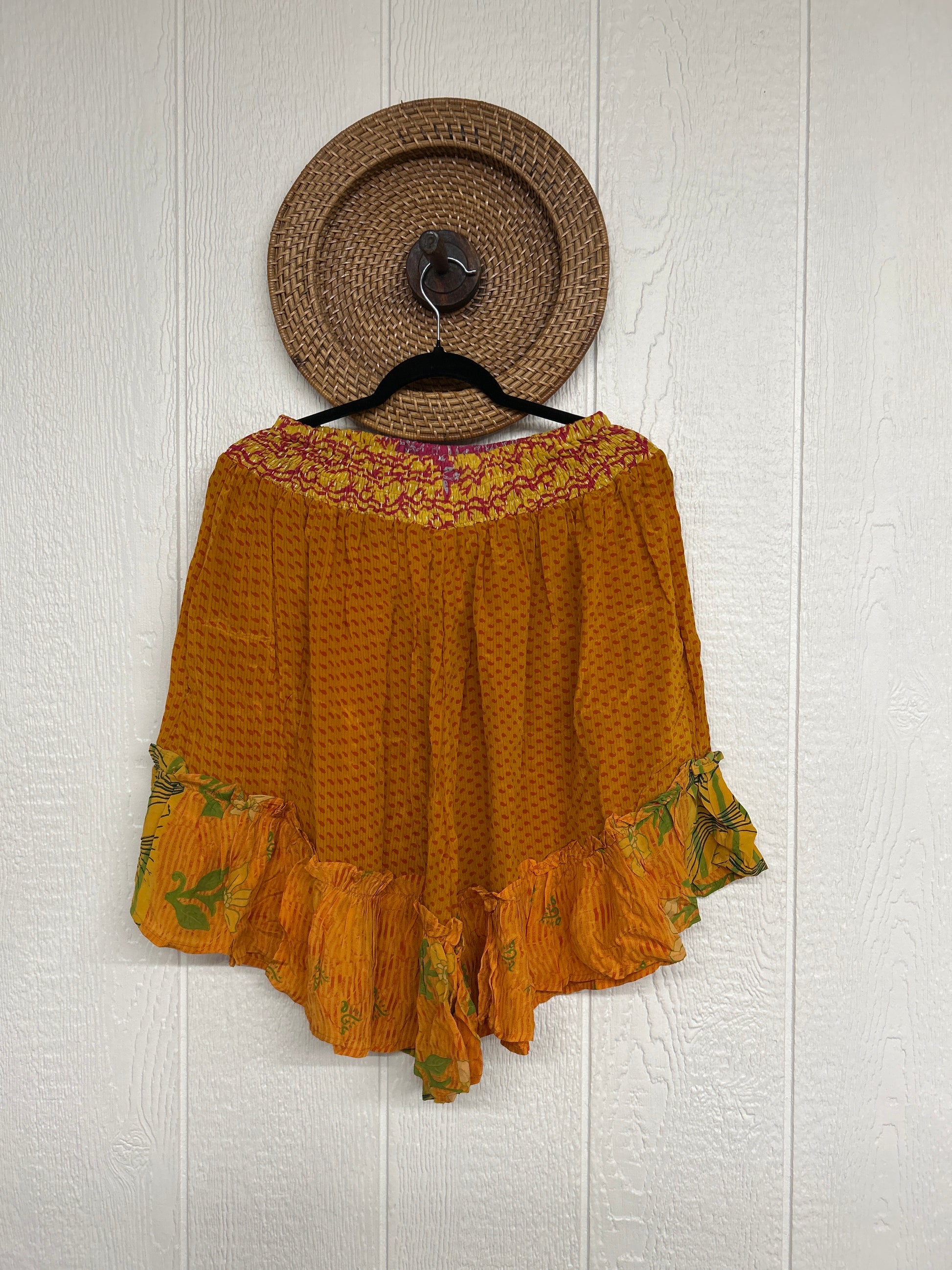 Crafted from vintage crepe sari, our Lover Cropped Culotte features interior pockets, a ruffle hem, stretchy kantha waist and hits at the knee.
