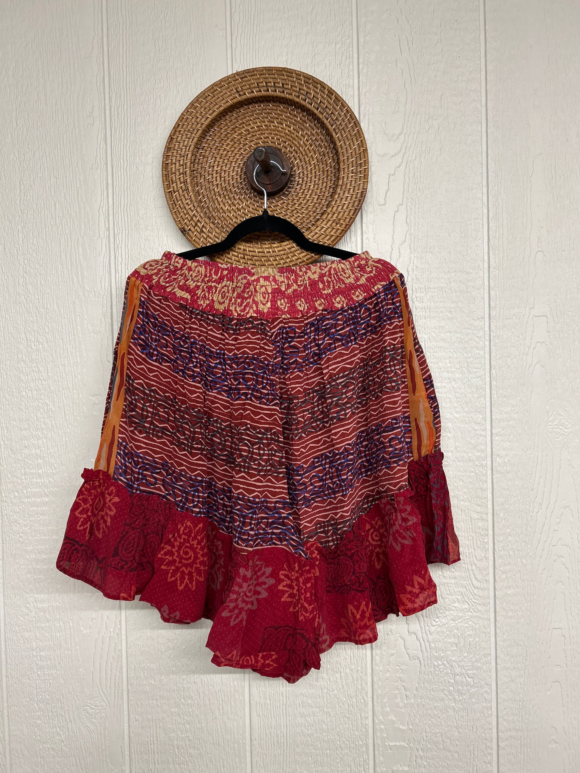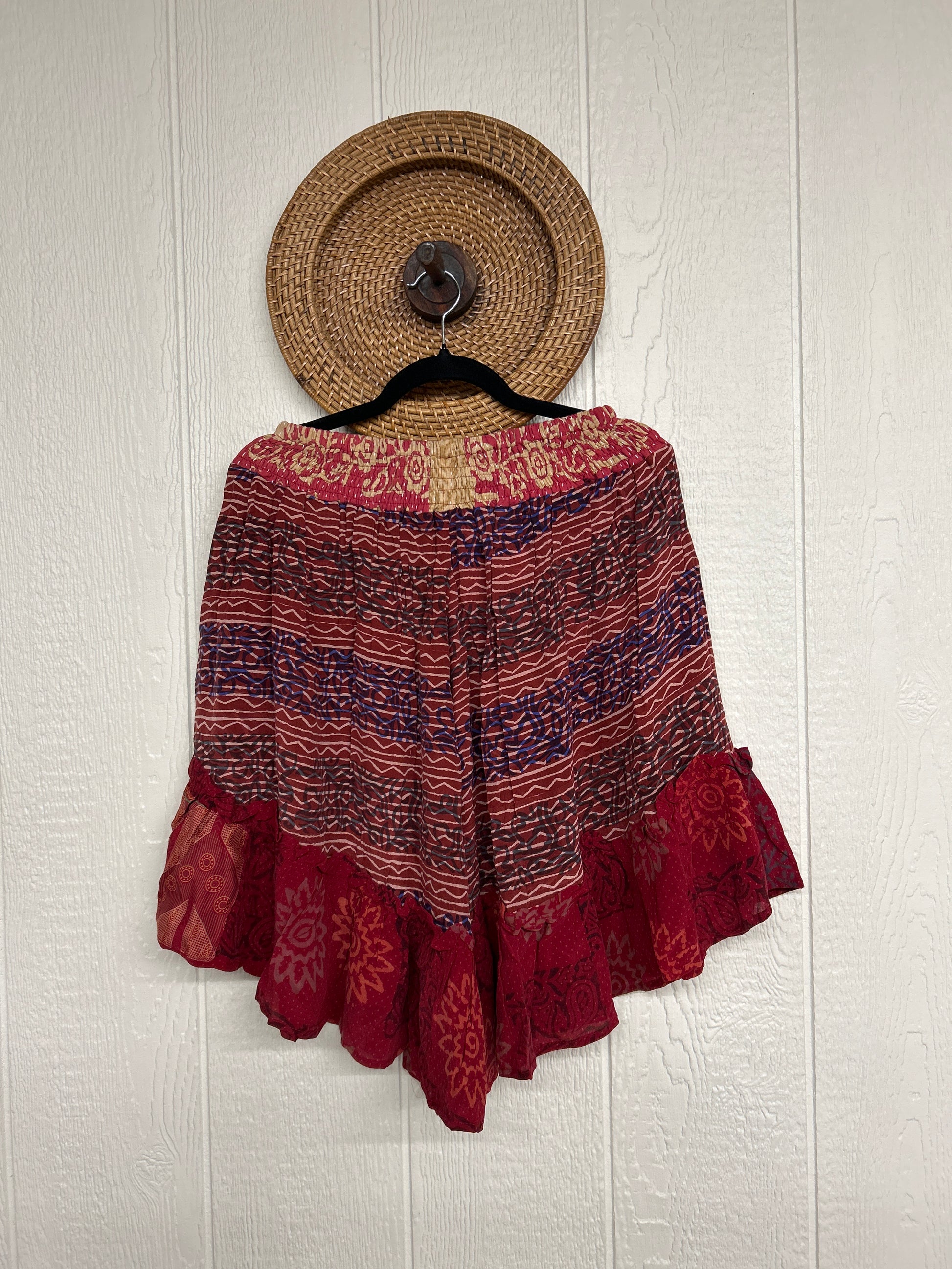 Crafted from vintage crepe sari, our Lover Cropped Culotte features interior pockets, a ruffle hem, stretchy kantha waist and hits at the knee.
