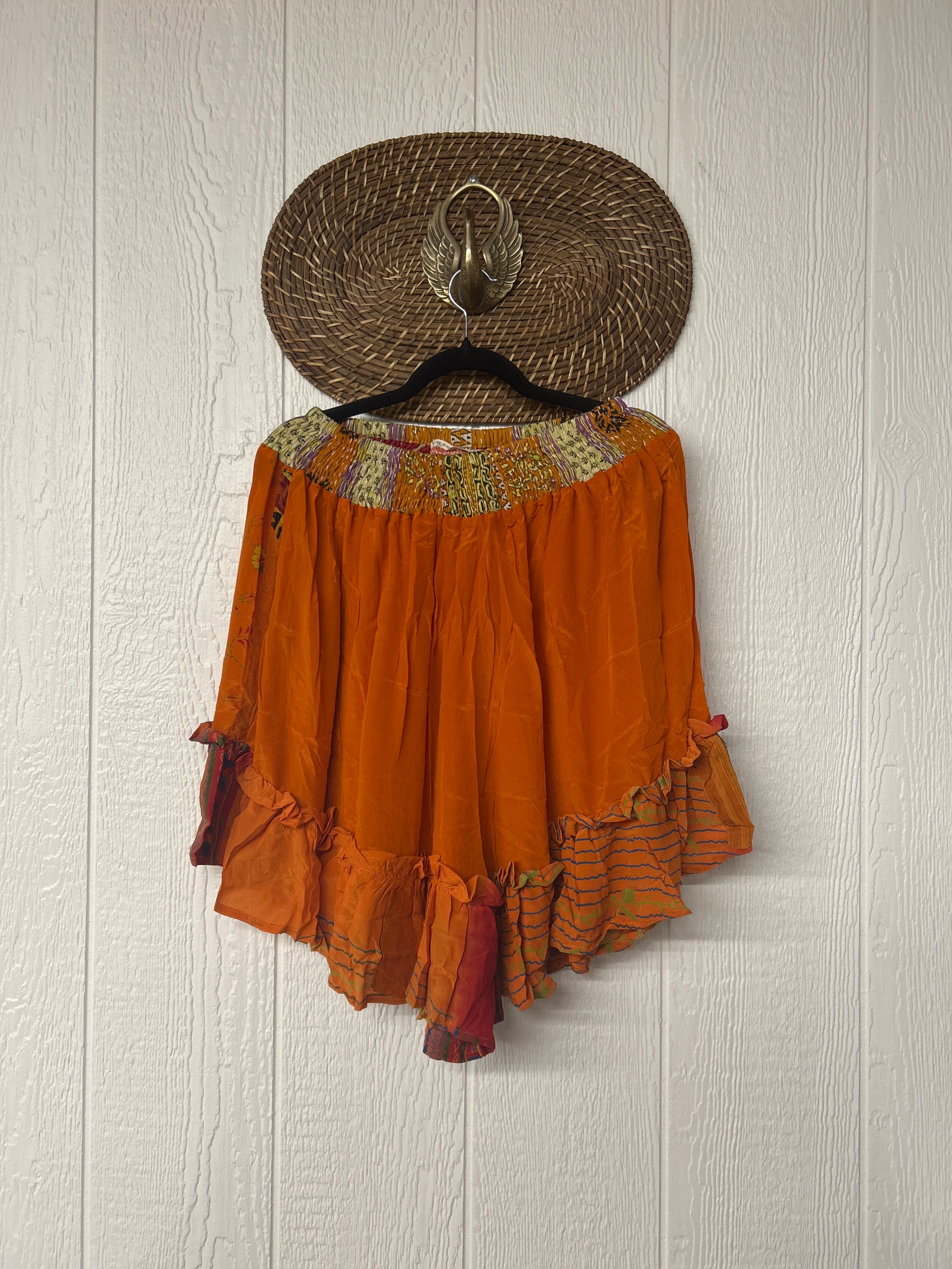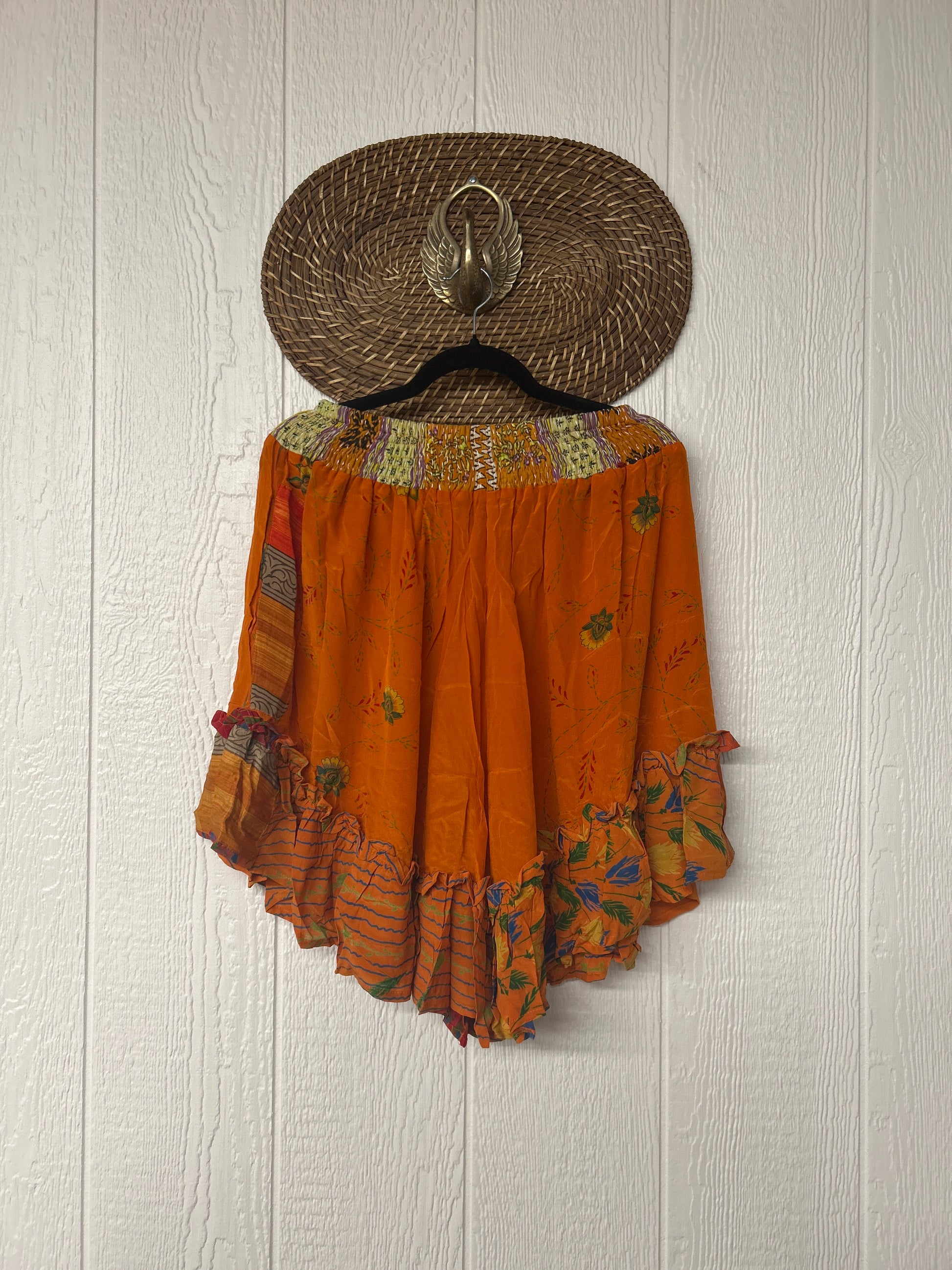 Crafted from vintage crepe sari, our Lover Cropped Culotte features interior pockets, a ruffle hem, stretchy kantha waist and hits at the knee.