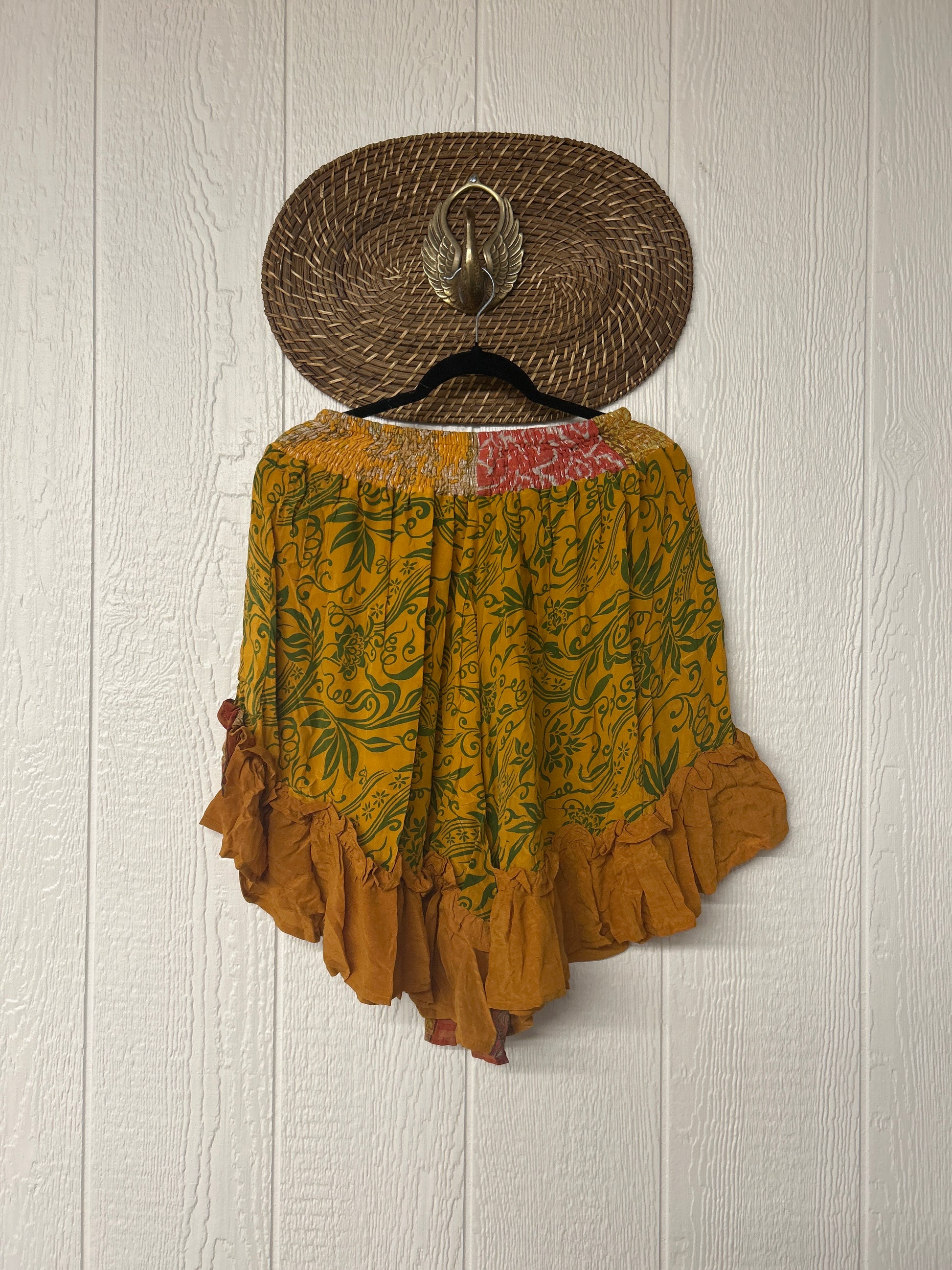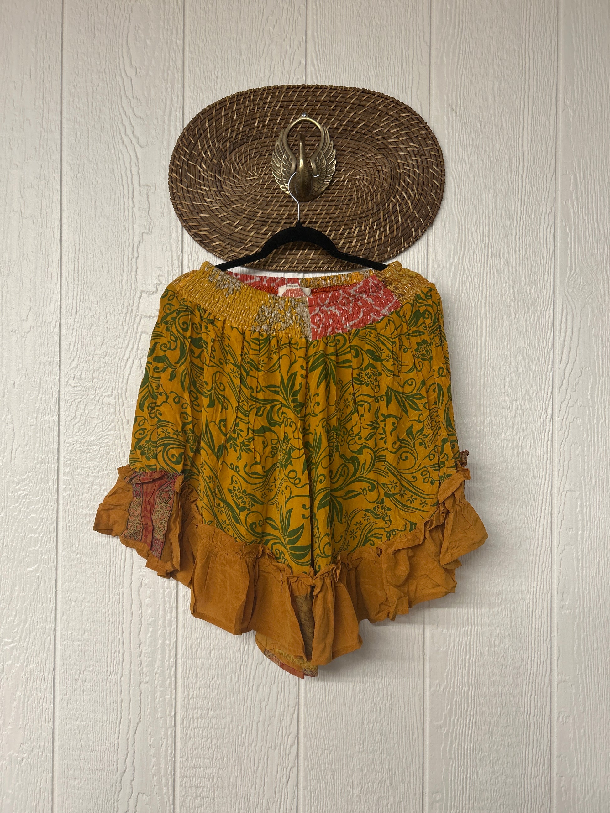Crafted from vintage crepe sari, our Lover Cropped Culotte features interior pockets, a ruffle hem, stretchy kantha waist and hits at the knee.
