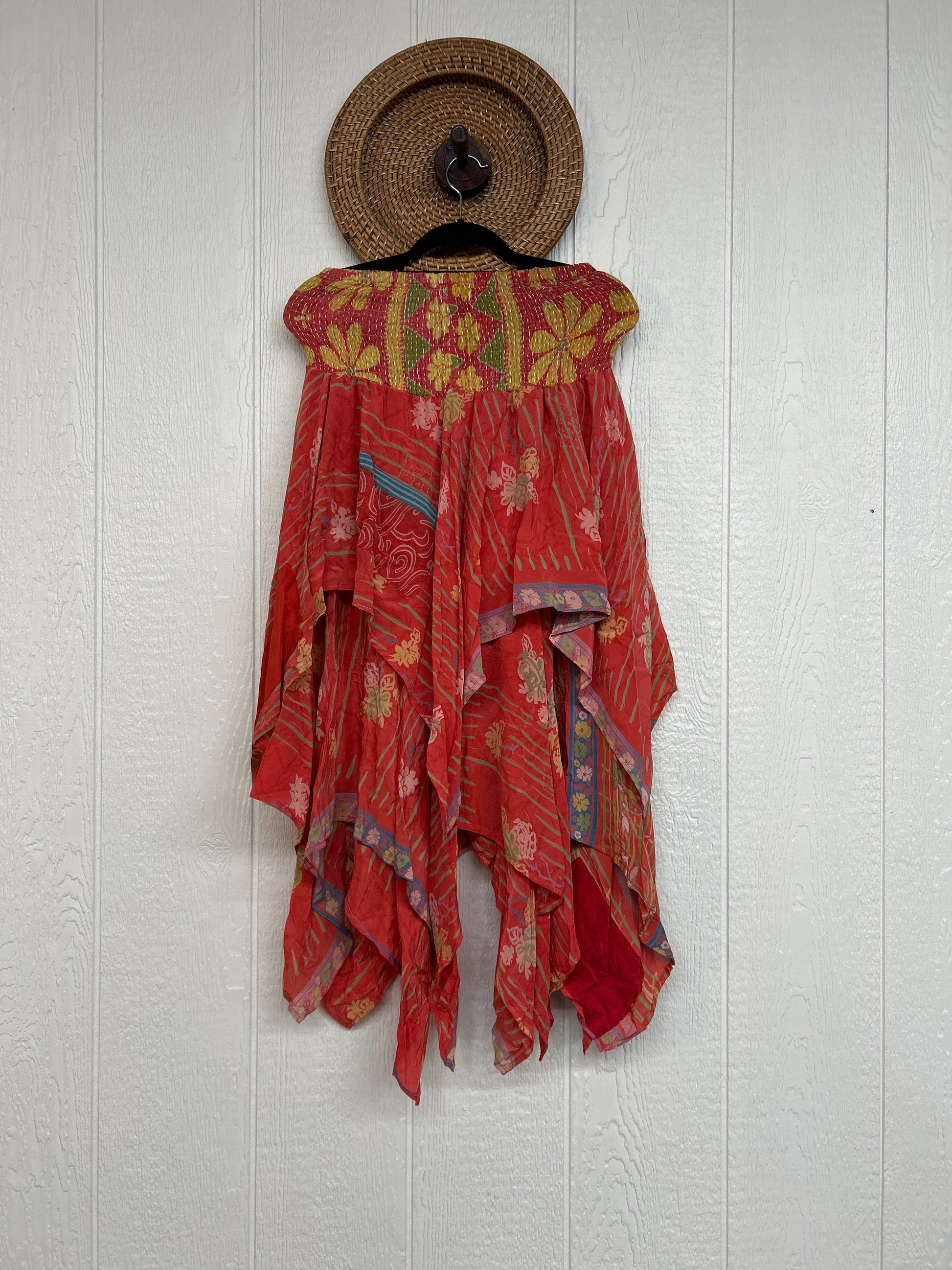 Fabrics may have small threads or holes in the layers. Color inconsistency or small stains may be present. The saris are sewn together and extend the life of each design. Imperfections should be celebrated.