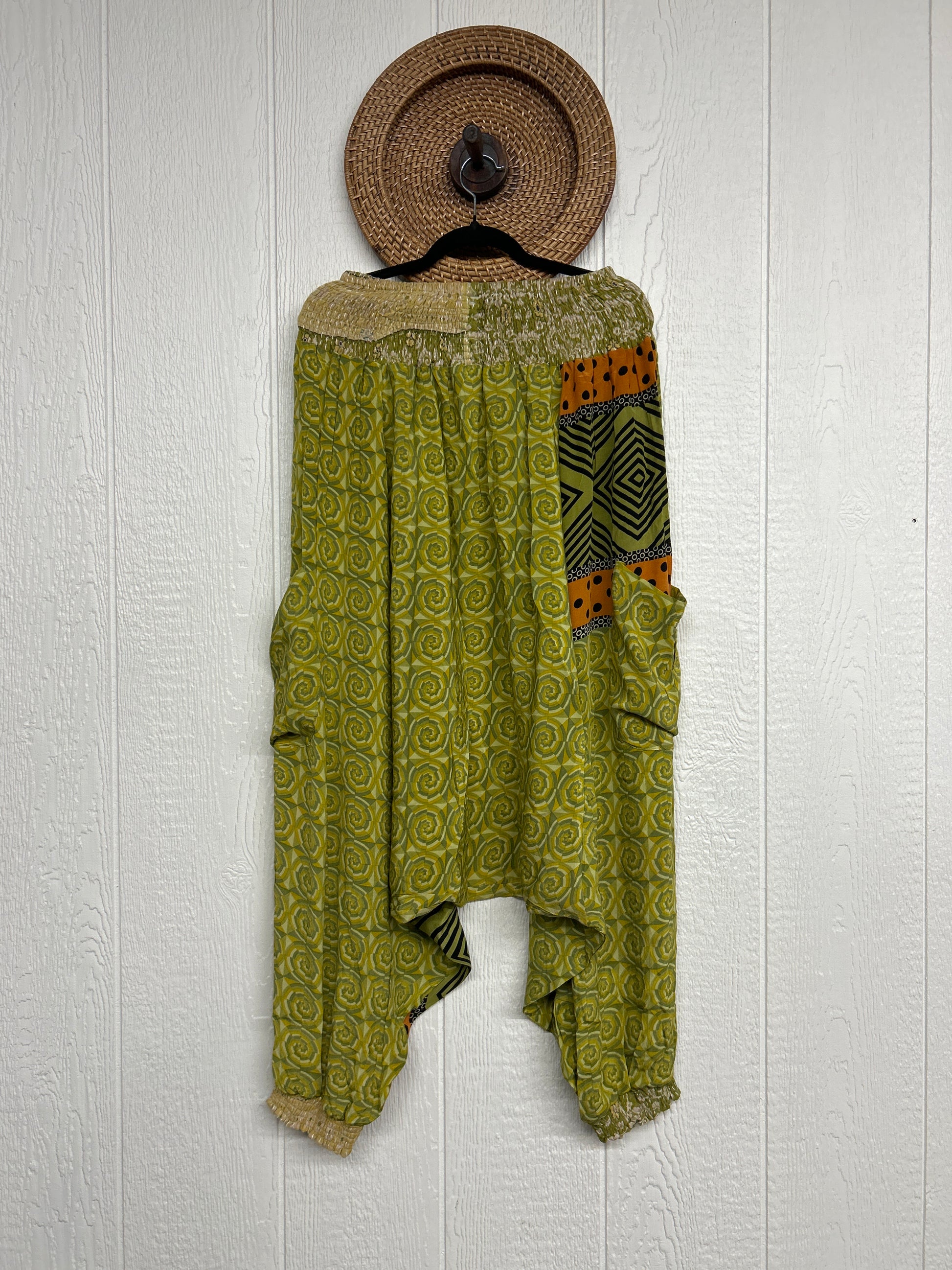 Made from vintage crepe sari, these are perfectly slouchy with a low harem drop for that effortless, flowy feel. Featuring deep side pockets, kantha stretch at the ankles, and a kantha smocked waistband that feels smooth and soft on the skin.