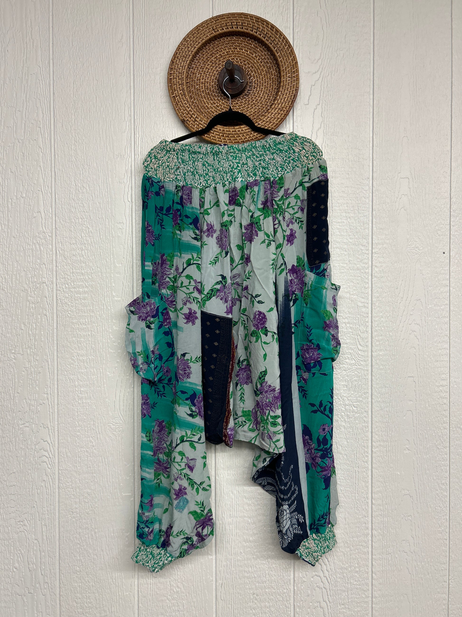 Made from vintage crepe sari, these are perfectly slouchy with a low harem drop for that effortless, flowy feel. Featuring deep side pockets, kantha stretch at the ankles, and a kantha smocked waistband that feels smooth and soft on the skin.