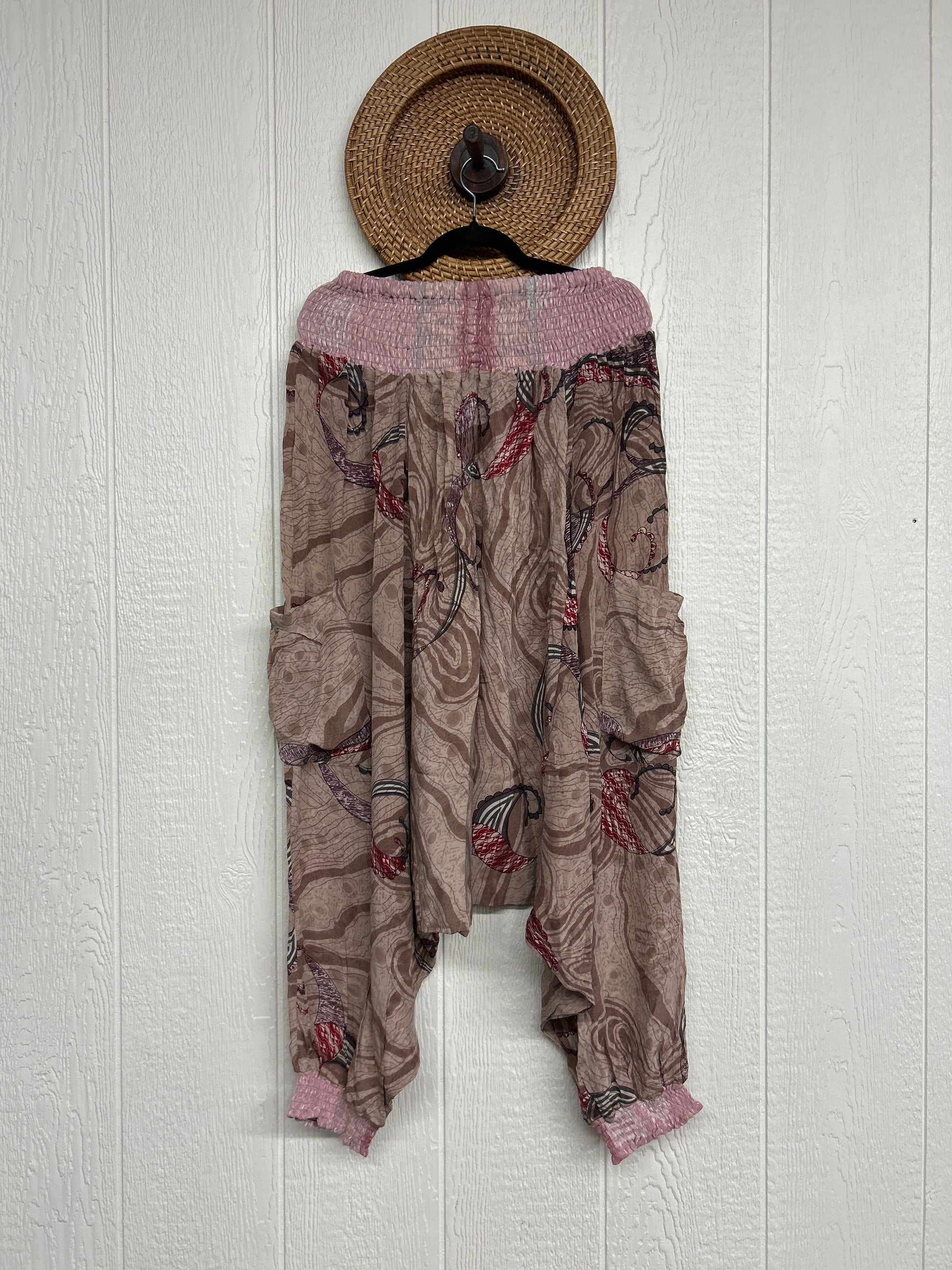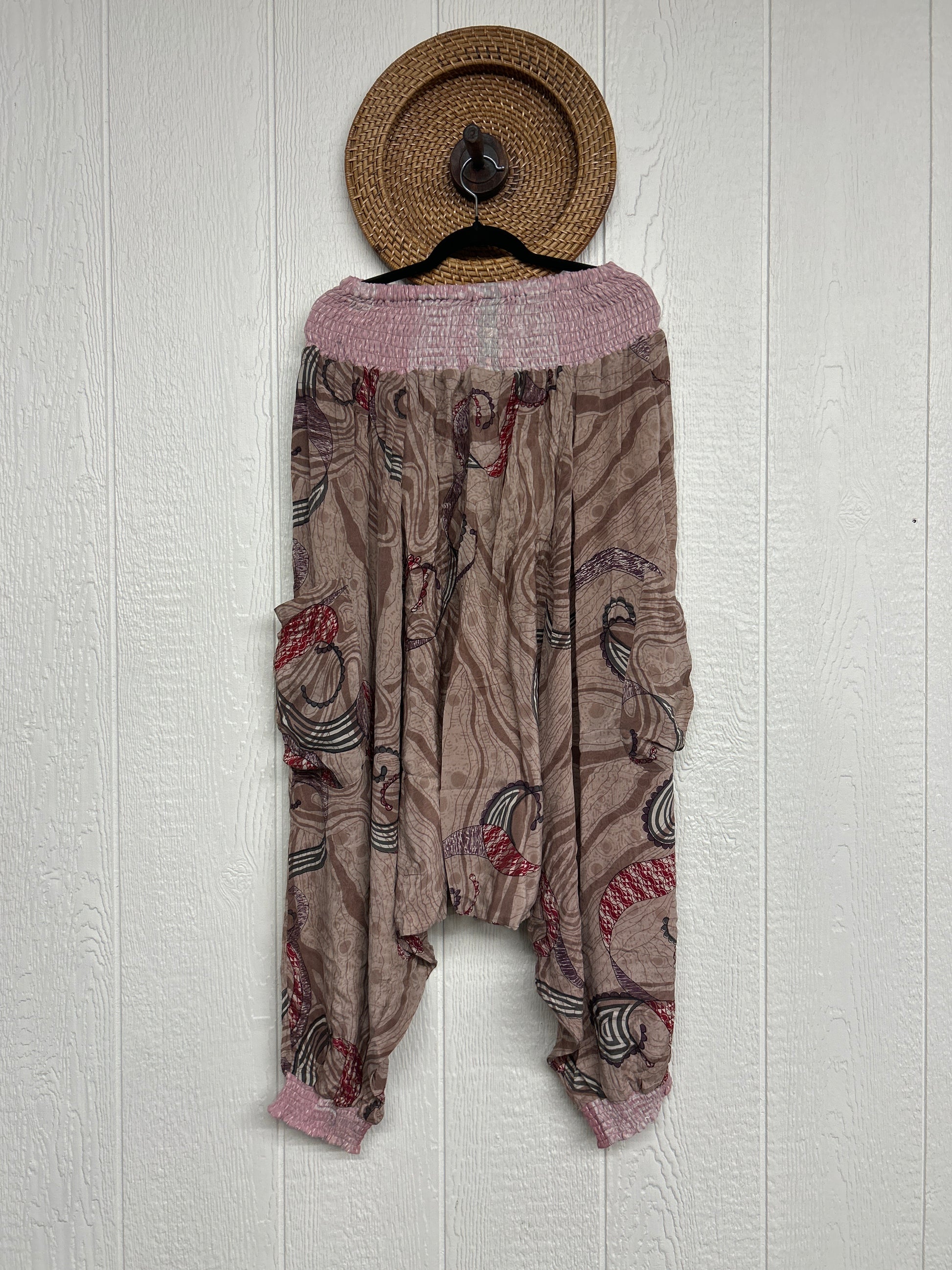 Made from vintage crepe sari, these are perfectly slouchy with a low harem drop for that effortless, flowy feel. Featuring deep side pockets, kantha stretch at the ankles, and a kantha smocked waistband that feels smooth and soft on the skin.