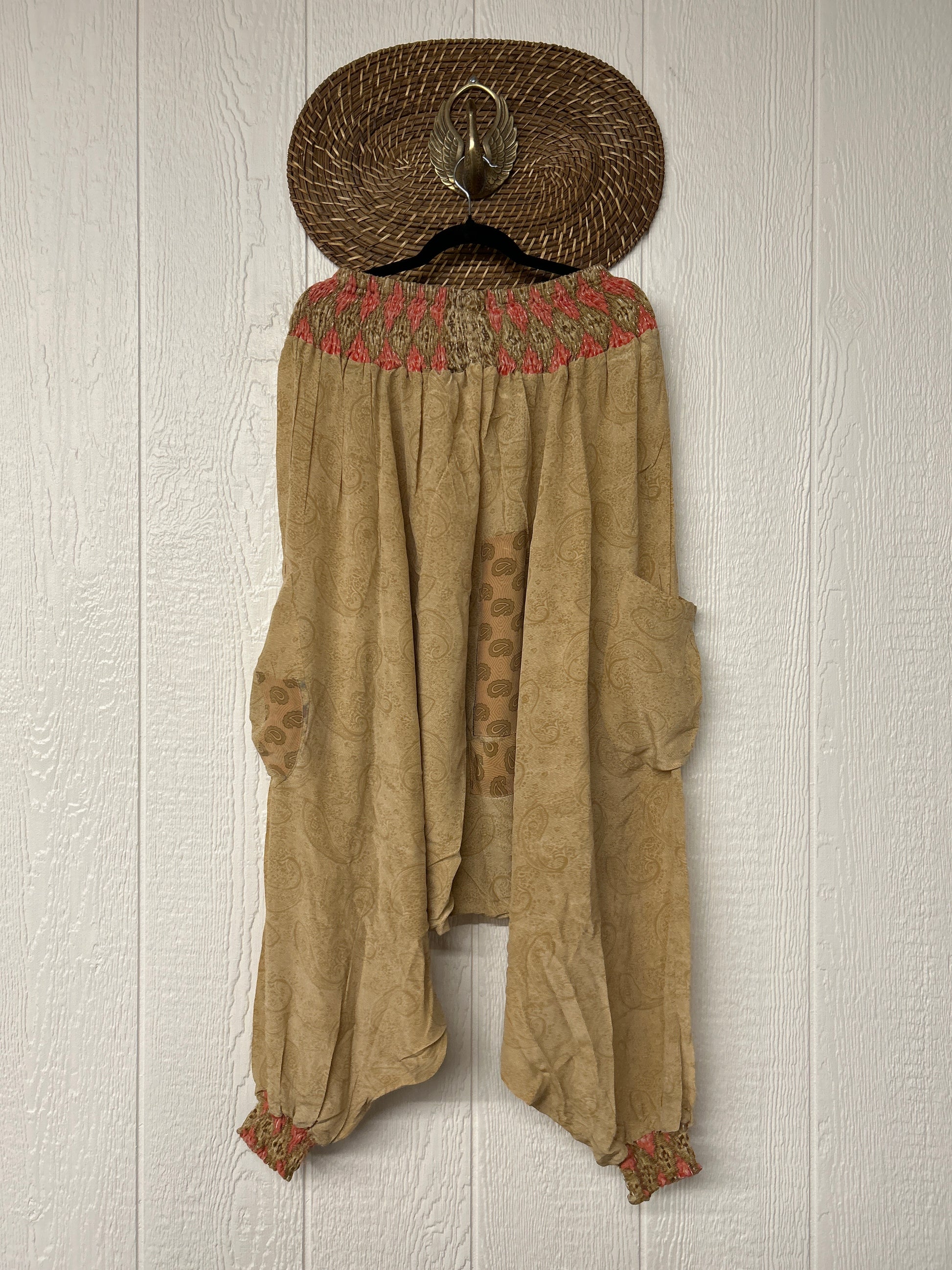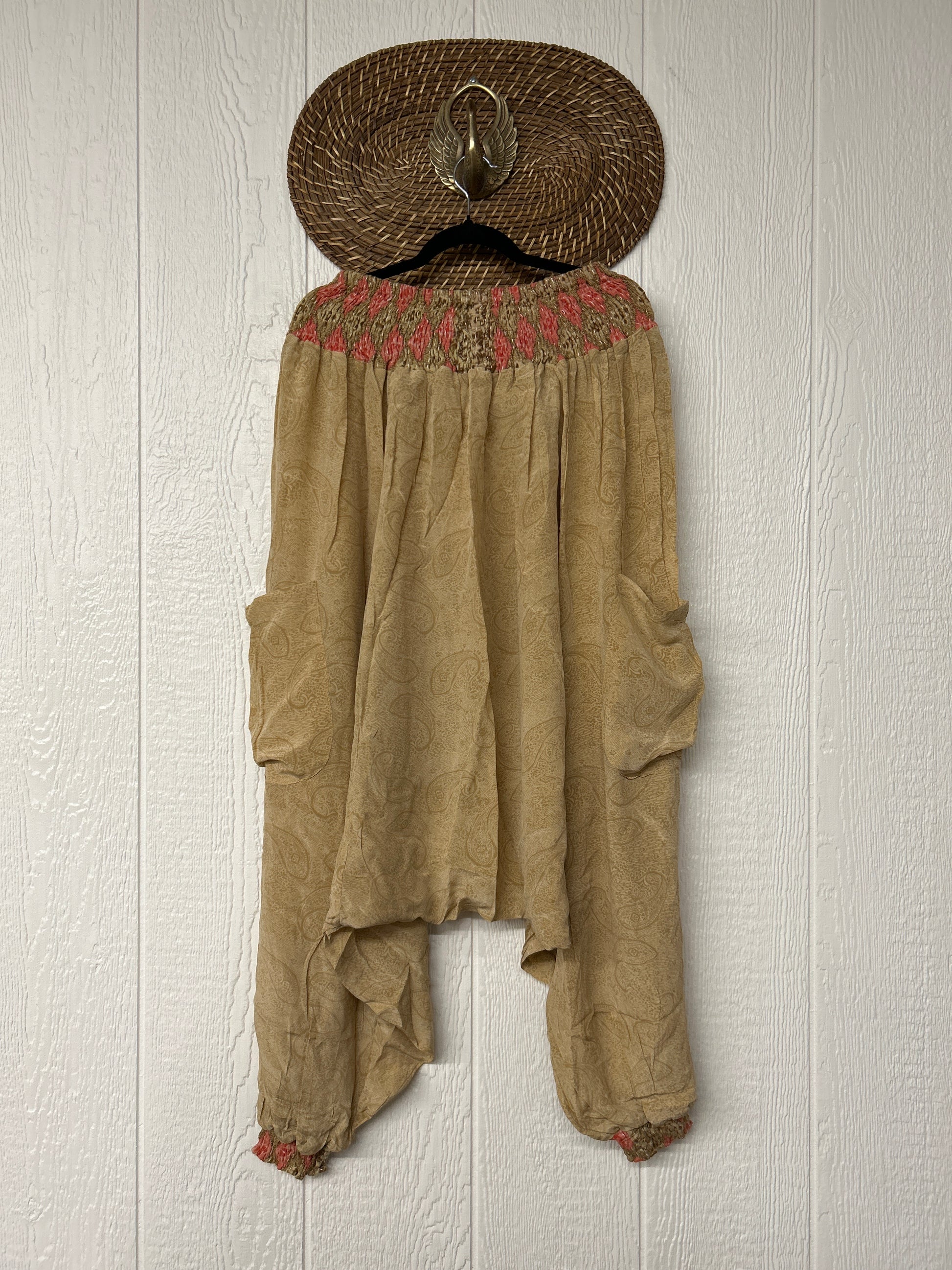 Made from vintage crepe sari, these are perfectly slouchy with a low harem drop for that effortless, flowy feel. Featuring deep side pockets, kantha stretch at the ankles, and a kantha smocked waistband that feels smooth and soft on the skin.