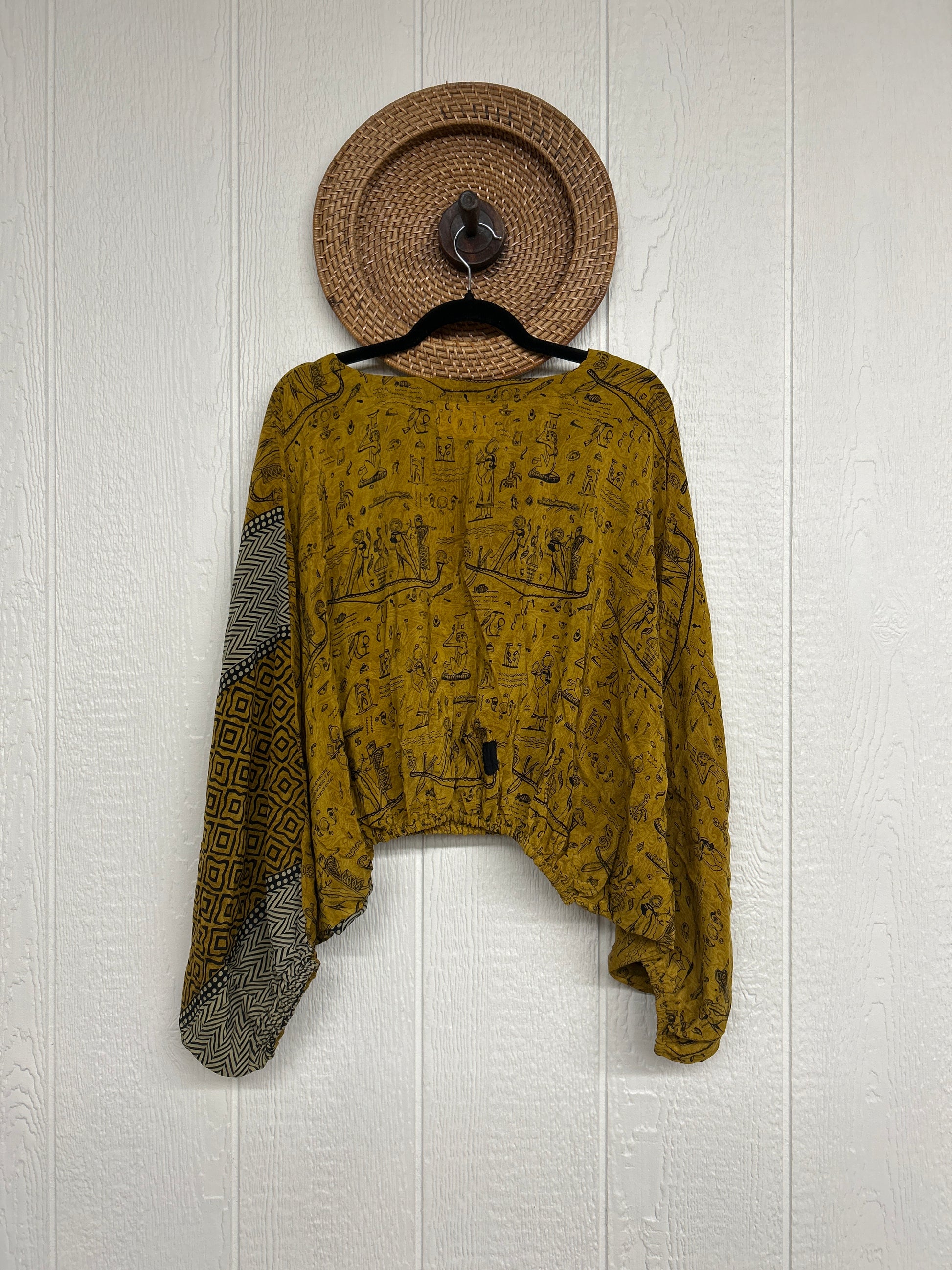 Disclosure: Our vintage styles have lived a full life before becoming the designs in our shop. Fabrics may have small threads or holes in the layers. Color inconsistency or small stains may be present. The saris are sewn together and extend the life of each design.