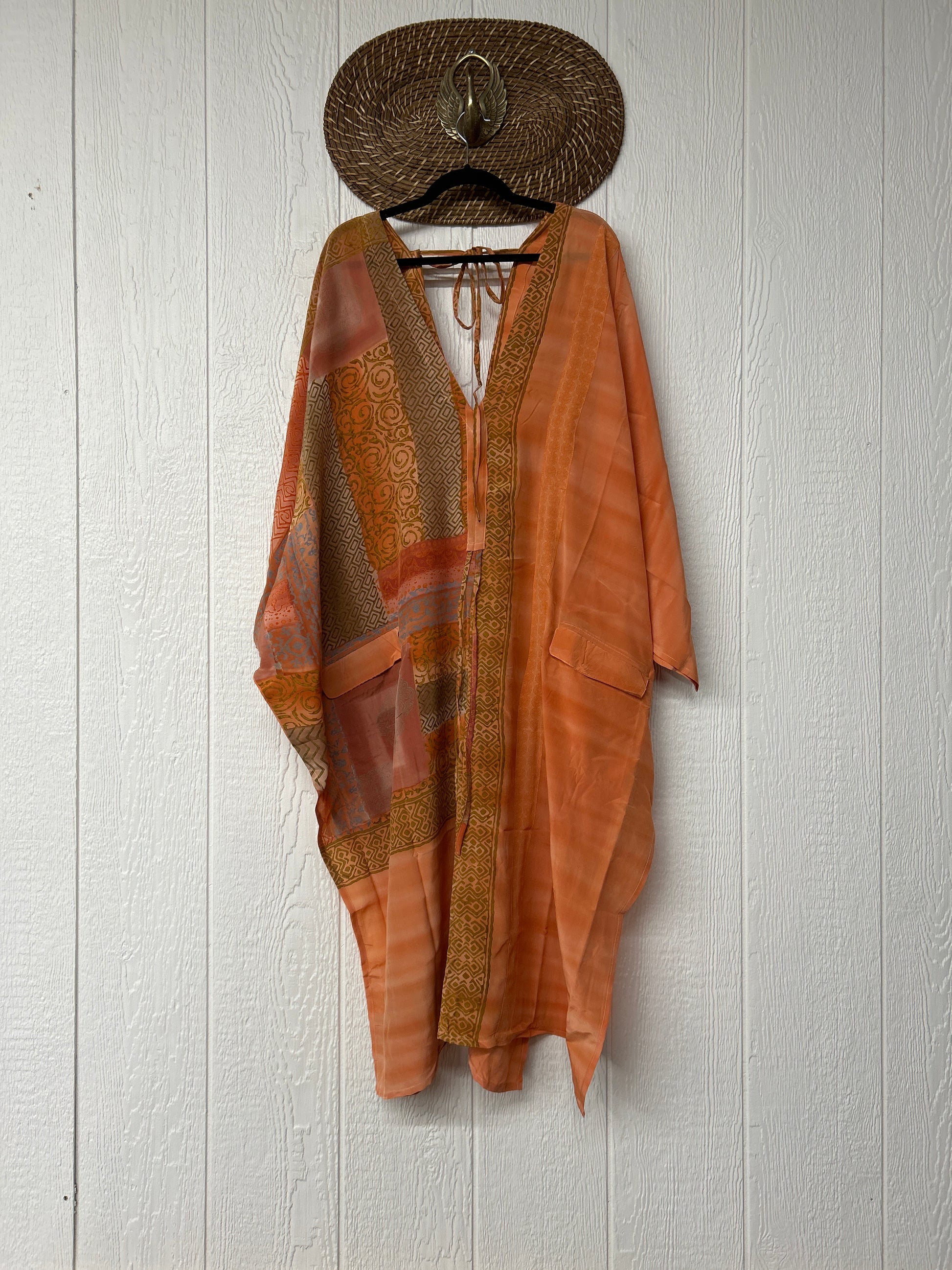 Fabrics may have small threads or holes in the layers. Color inconsistency or small stains may be present. The saris are sewn together and extend the life of each design. Imperfections should be celebrated.