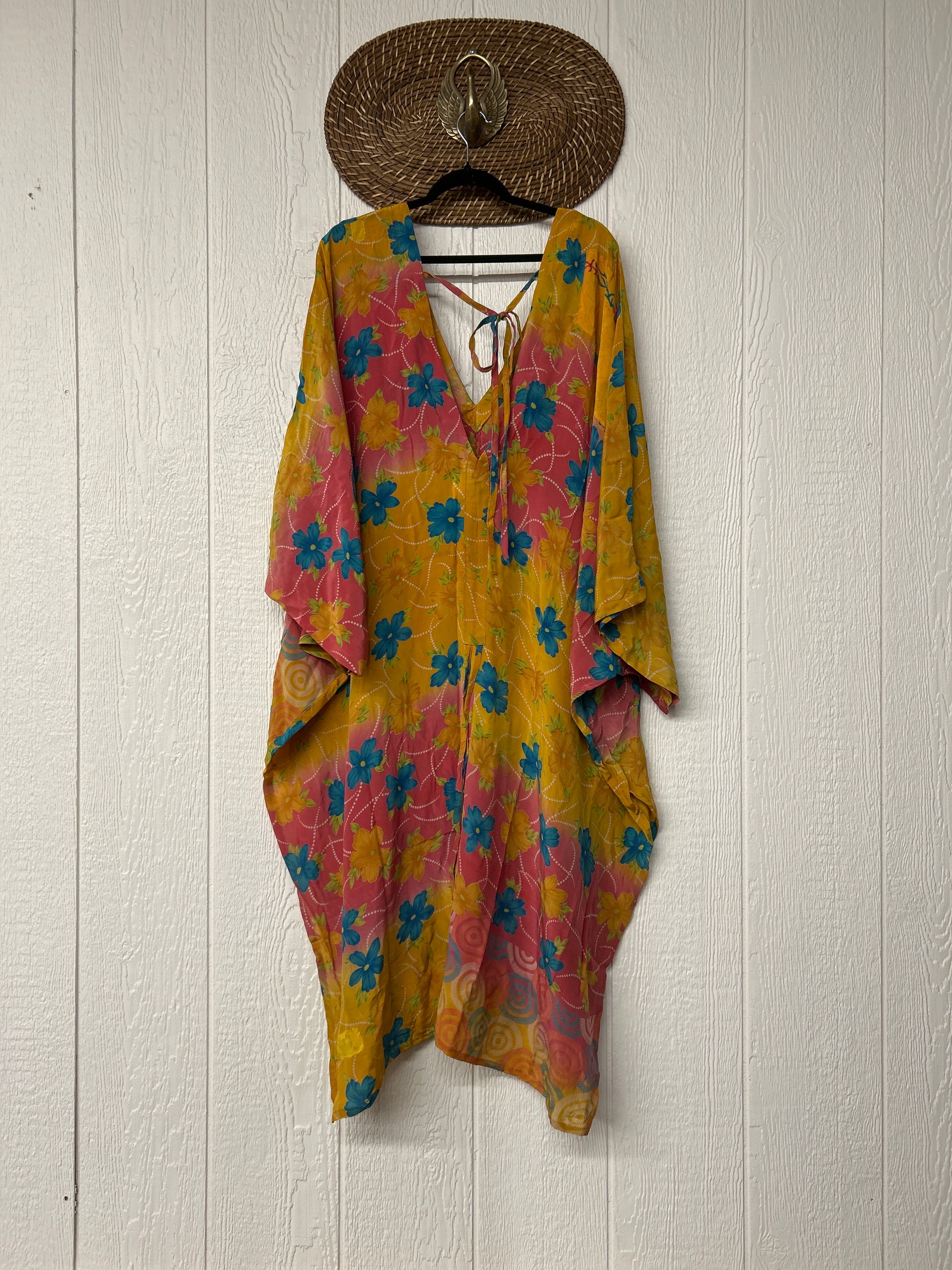 Fabrics may have small threads or holes in the layers. Color inconsistency or small stains may be present. The saris are sewn together and extend the life of each design. Imperfections should be celebrated.