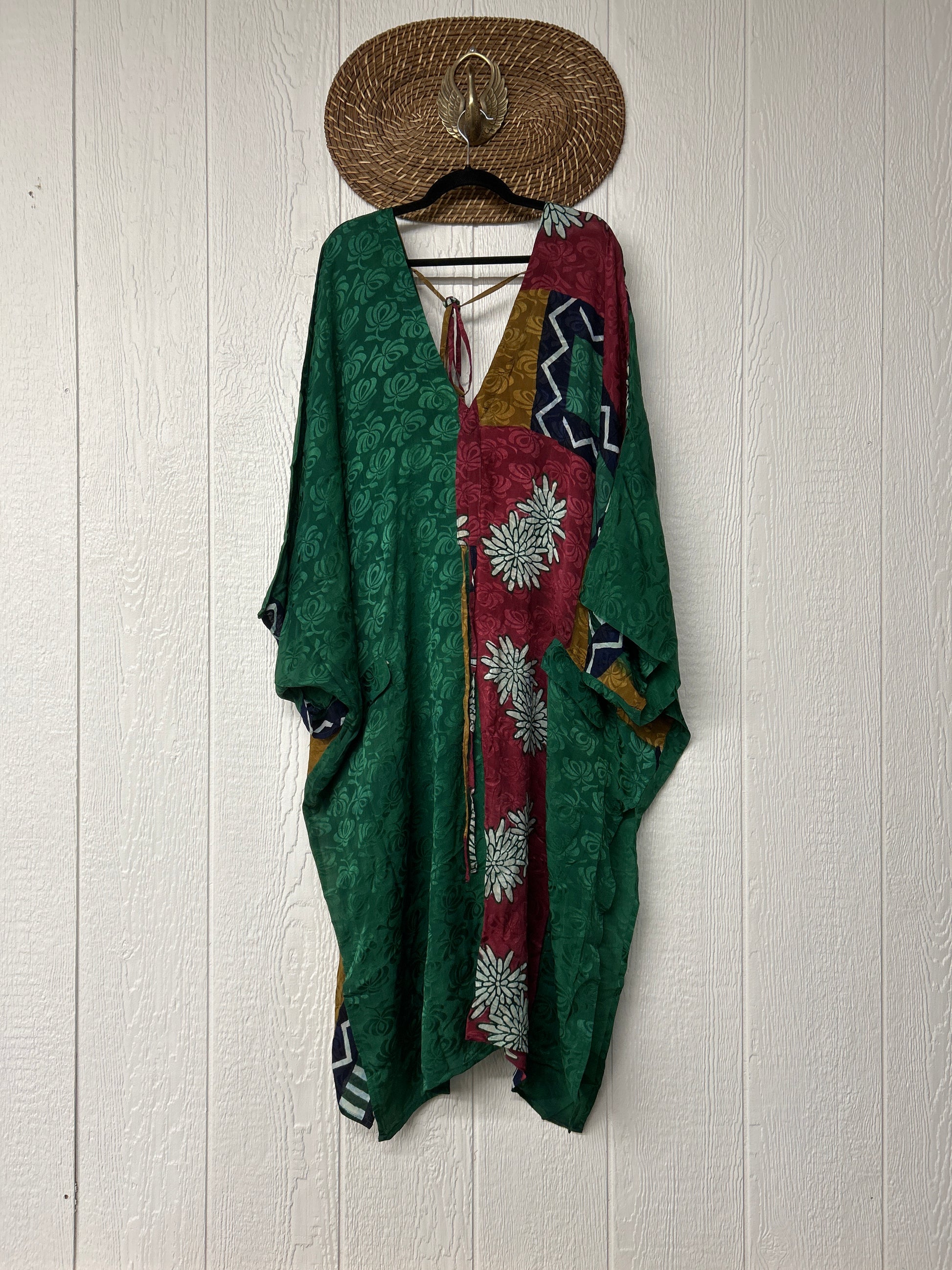 Fabrics may have small threads or holes in the layers. Color inconsistency or small stains may be present. The saris are sewn together and extend the life of each design. Imperfections should be celebrated.