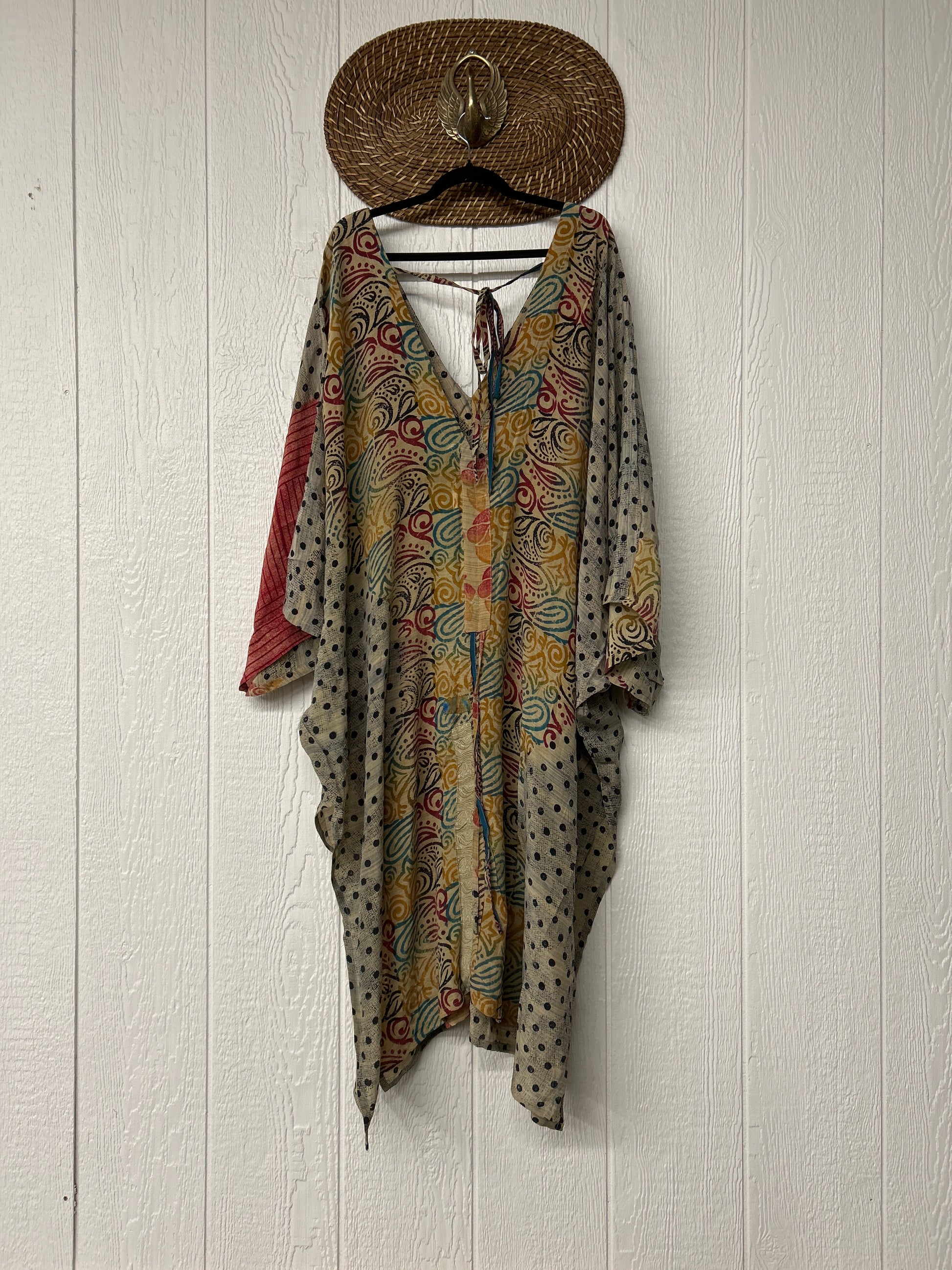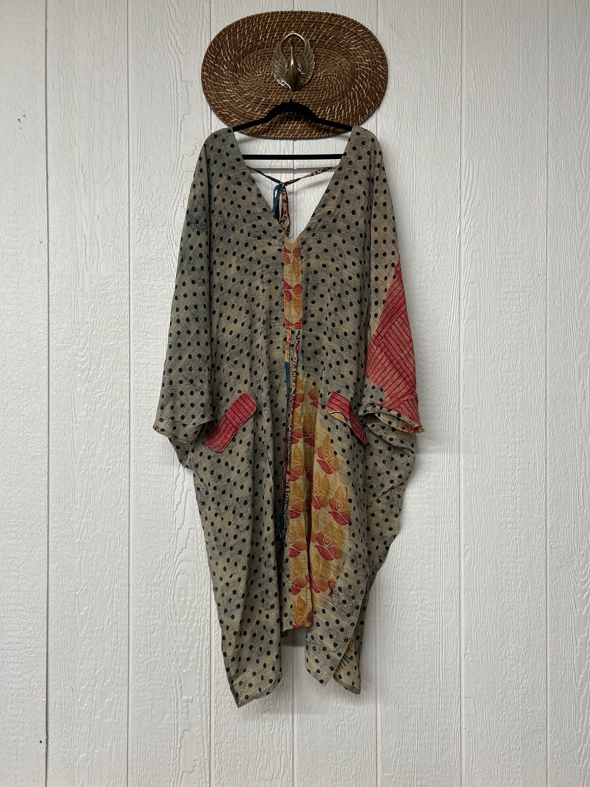 Fabrics may have small threads or holes in the layers. Color inconsistency or small stains may be present. The saris are sewn together and extend the life of each design. Imperfections should be celebrated.