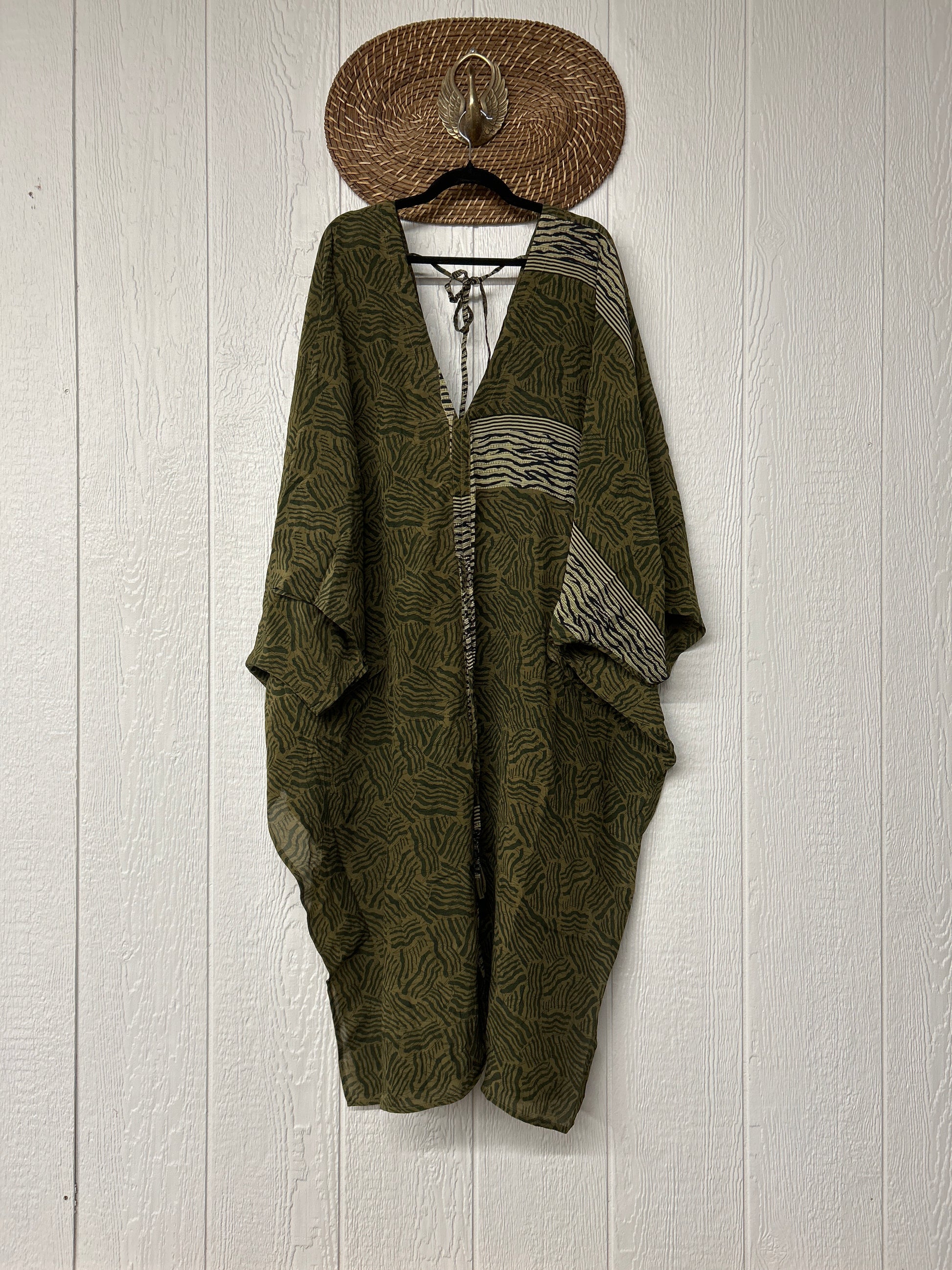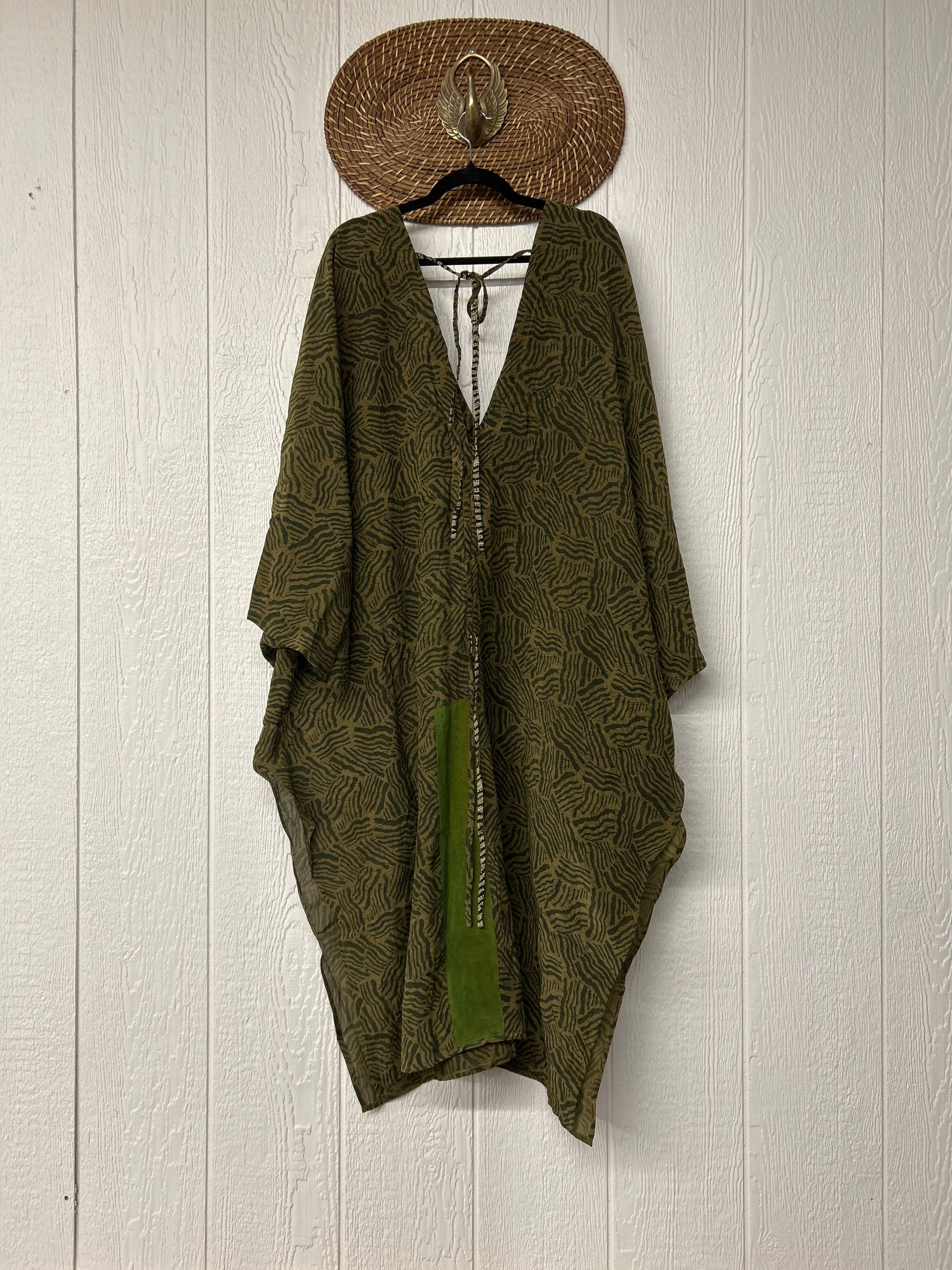 Fabrics may have small threads or holes in the layers. Color inconsistency or small stains may be present. The saris are sewn together and extend the life of each design. Imperfections should be celebrated.
