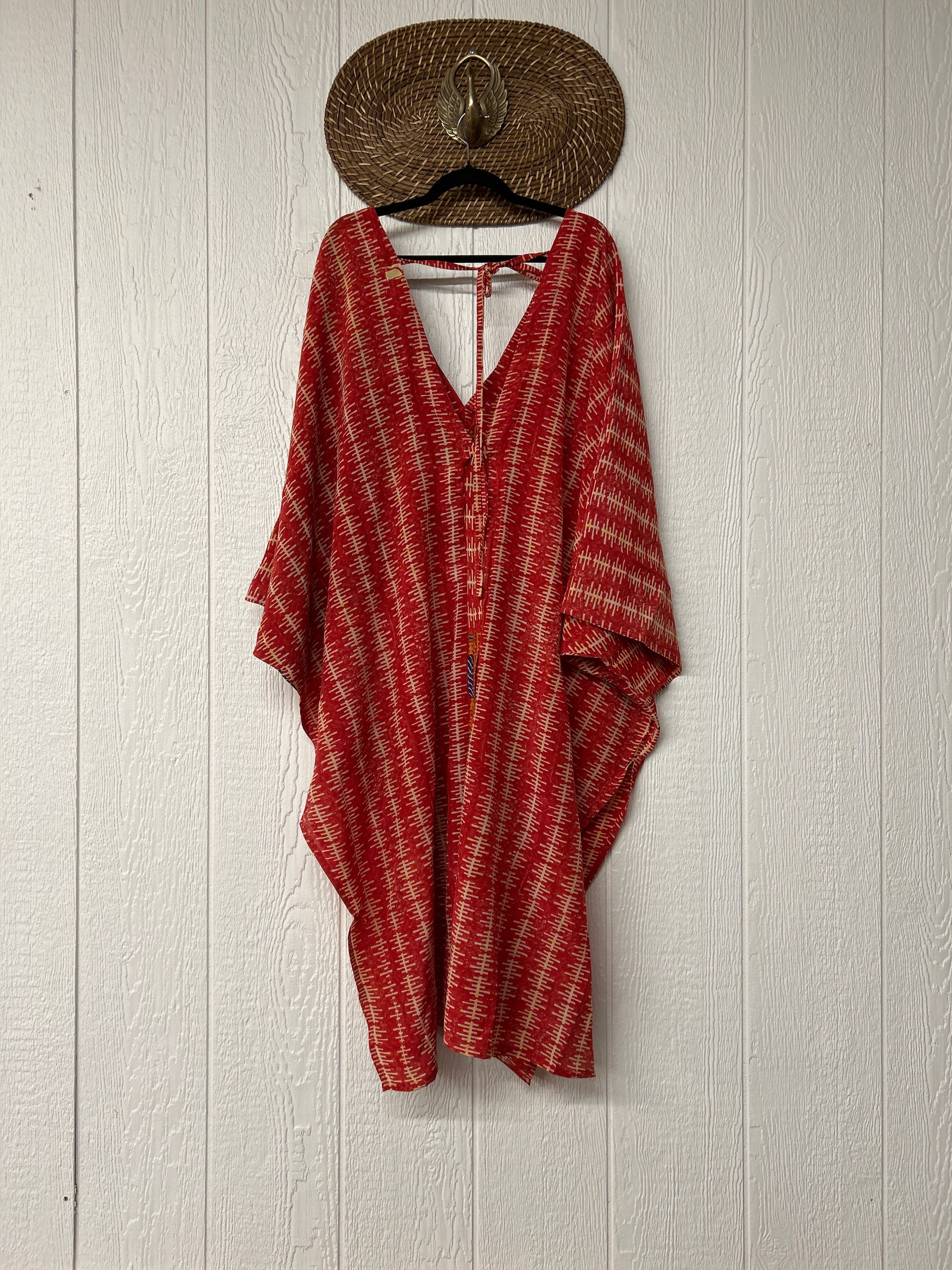 Fabrics may have small threads or holes in the layers. Color inconsistency or small stains may be present. The saris are sewn together and extend the life of each design. Imperfections should be celebrated.