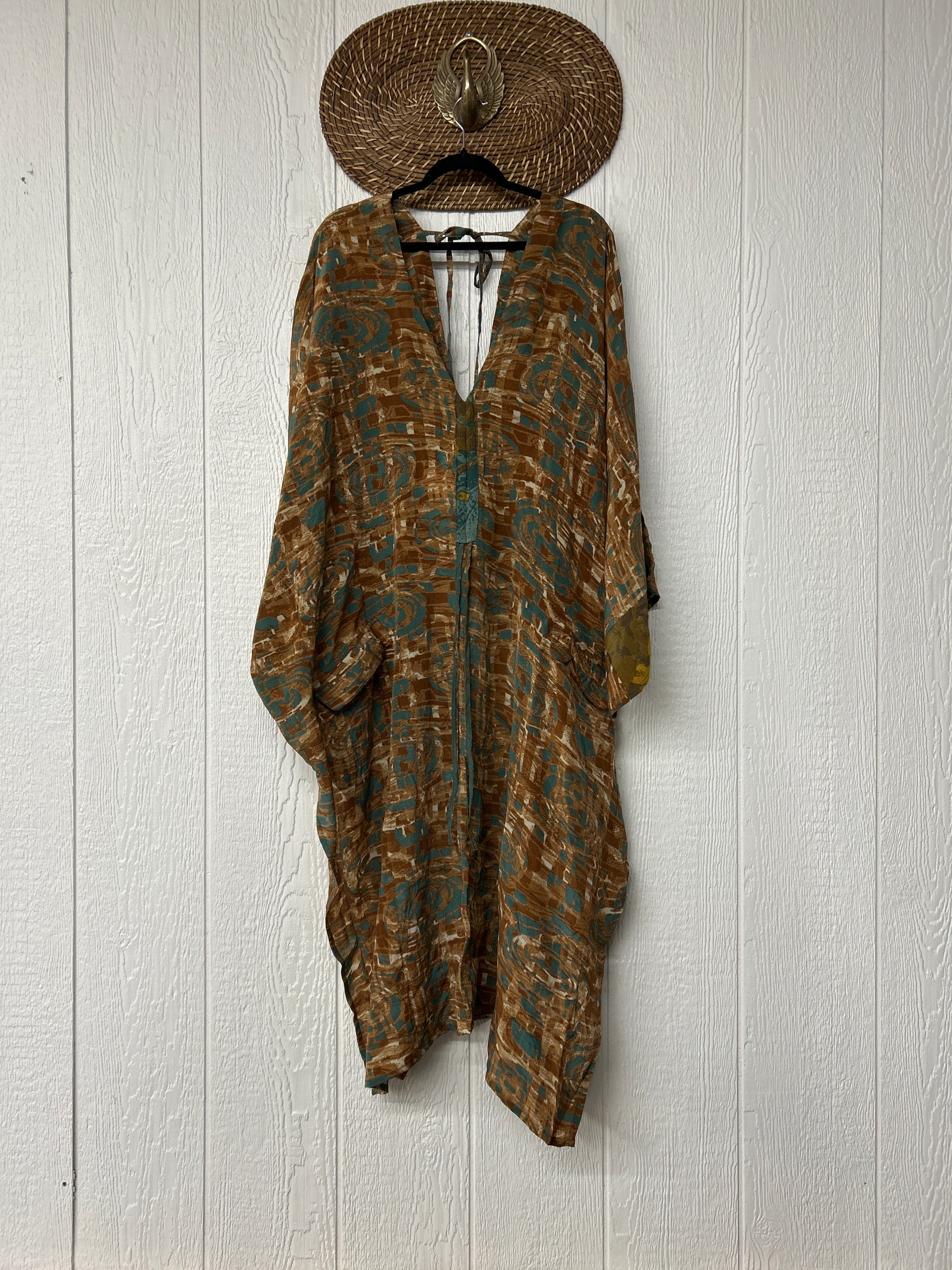 Fabrics may have small threads or holes in the layers. Color inconsistency or small stains may be present. The saris are sewn together and extend the life of each design. Imperfections should be celebrated.