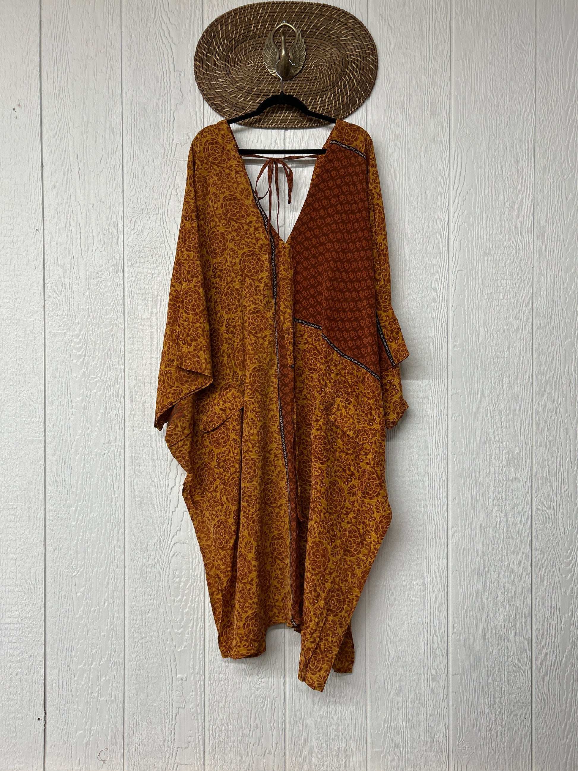 Fabrics may have small threads or holes in the layers. Color inconsistency or small stains may be present. The saris are sewn together and extend the life of each design. Imperfections should be celebrated.