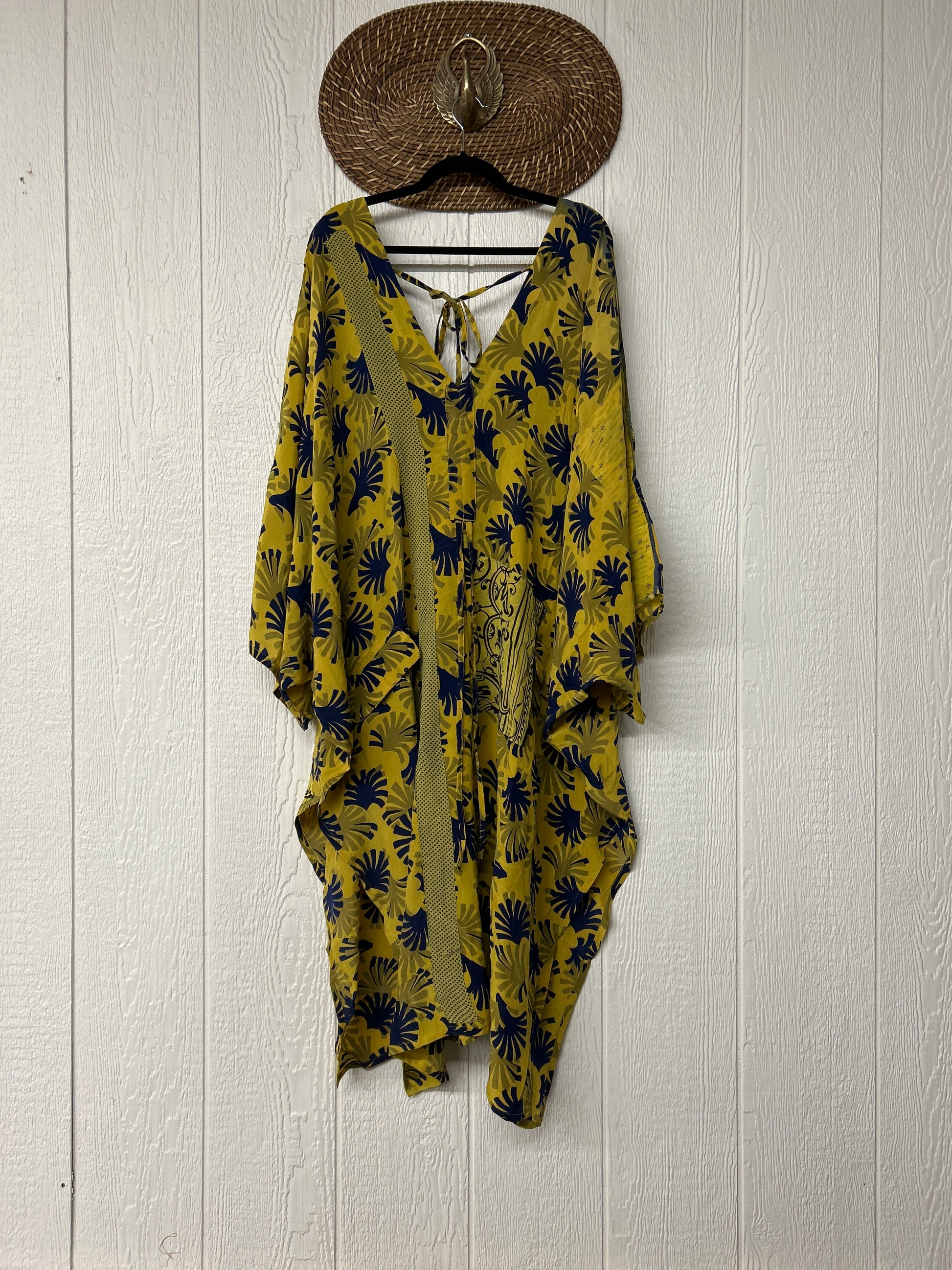 Fabrics may have small threads or holes in the layers. Color inconsistency or small stains may be present. The saris are sewn together and extend the life of each design. Imperfections should be celebrated.