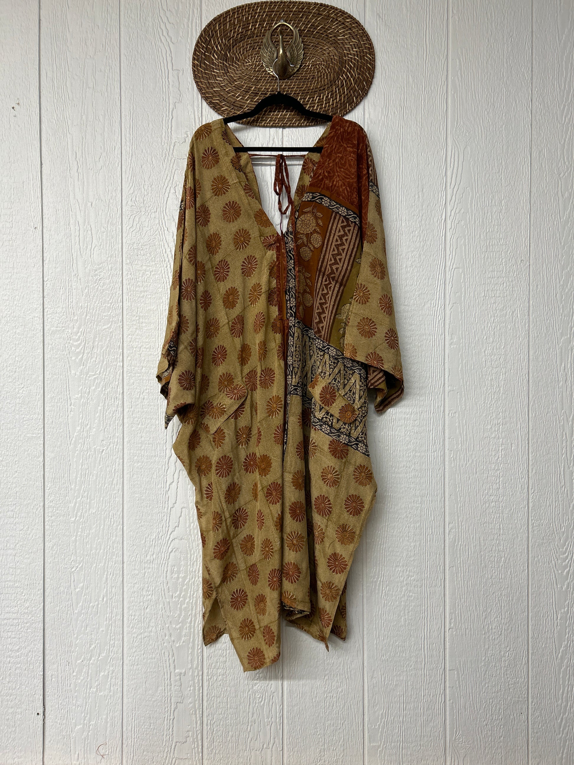 Fabrics may have small threads or holes in the layers. Color inconsistency or small stains may be present. The saris are sewn together and extend the life of each design. Imperfections should be celebrated.