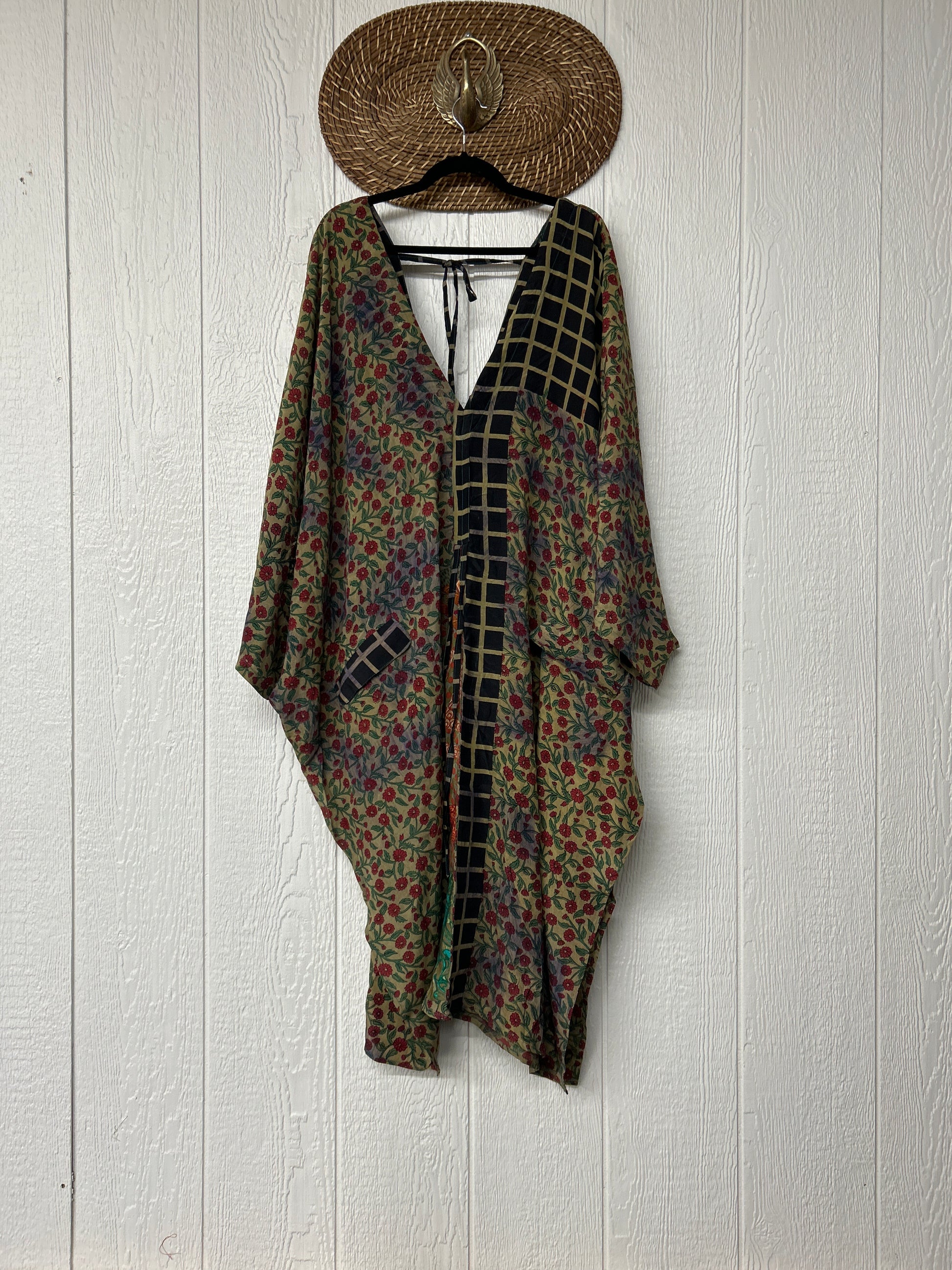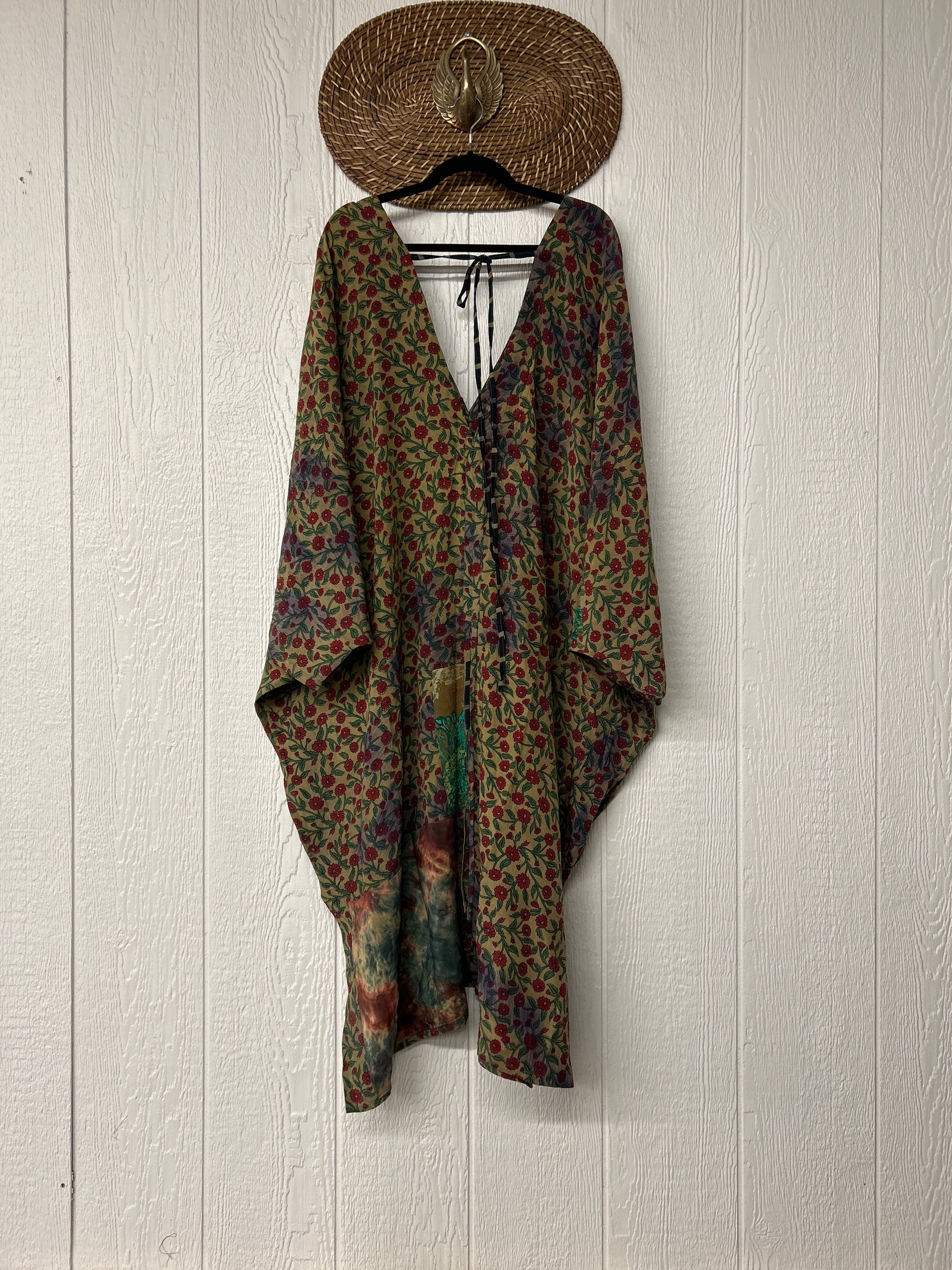 Fabrics may have small threads or holes in the layers. Color inconsistency or small stains may be present. The saris are sewn together and extend the life of each design. Imperfections should be celebrated.